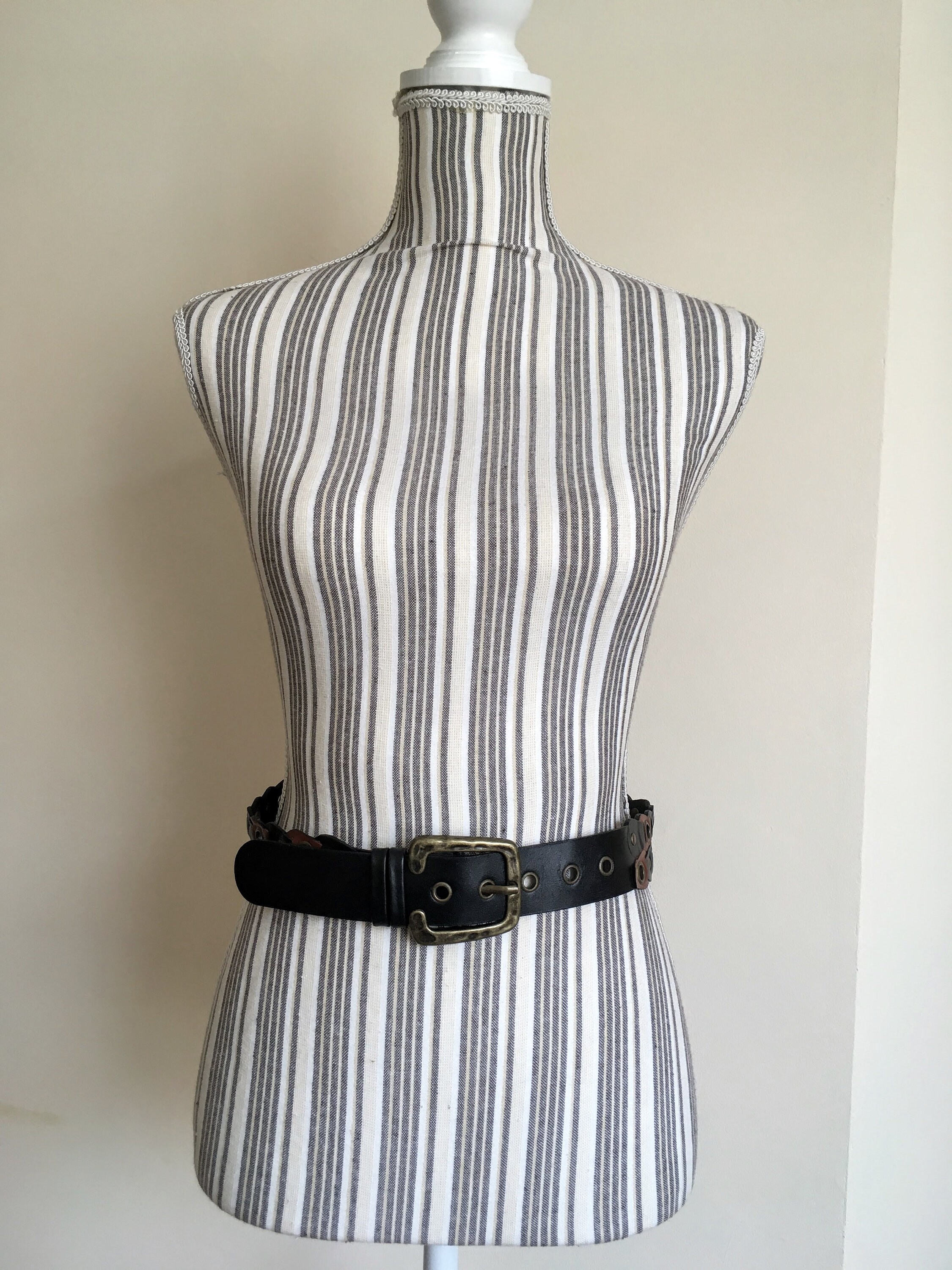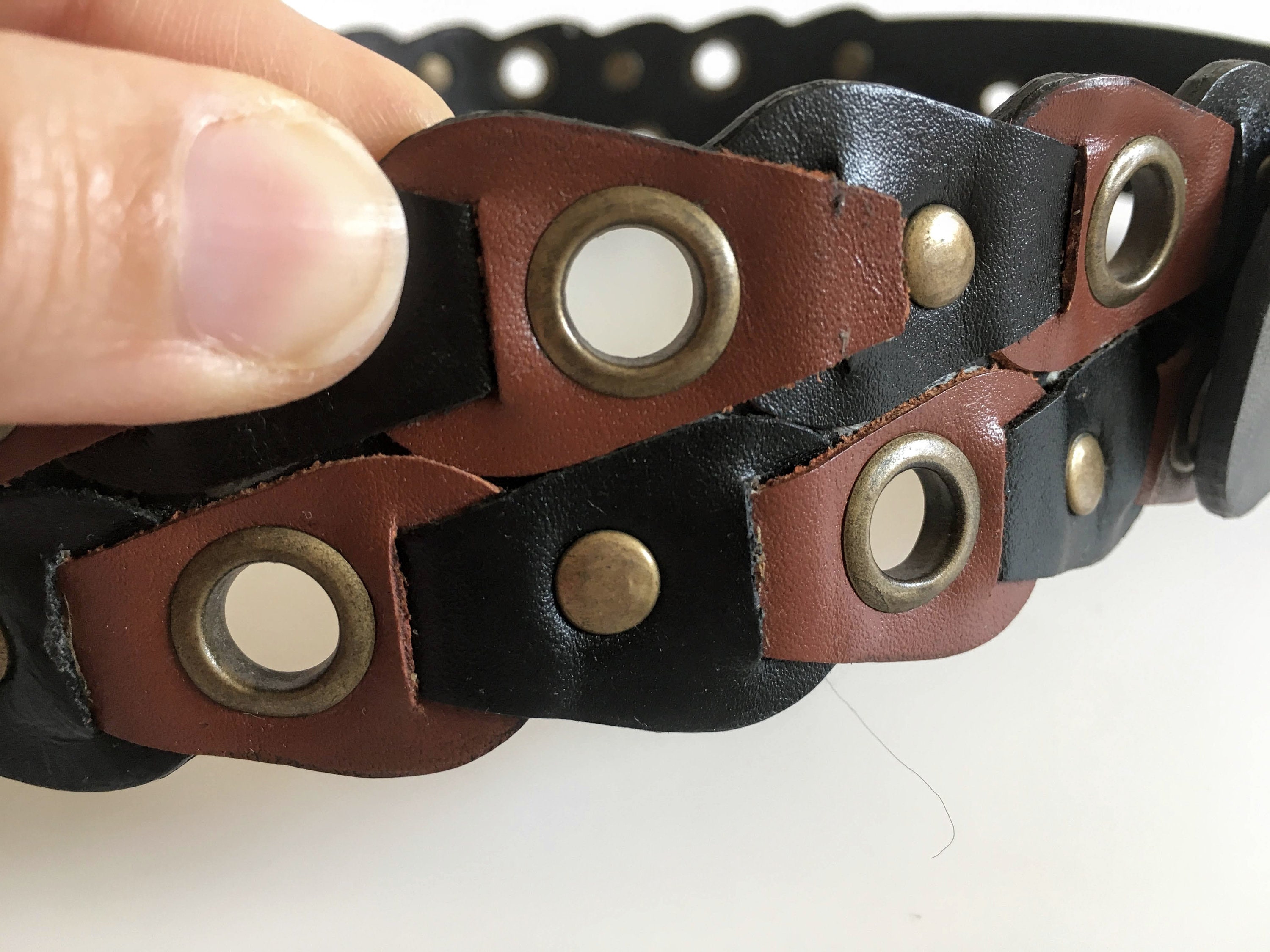 Condition: There are some fine scratches on the brass buckle and on the leather surface, but overall beautifully preserved. A couple of of the tiles could slide out as you bend the belt (I have captured this in the close up photo), but you can easily tuck them back in place.