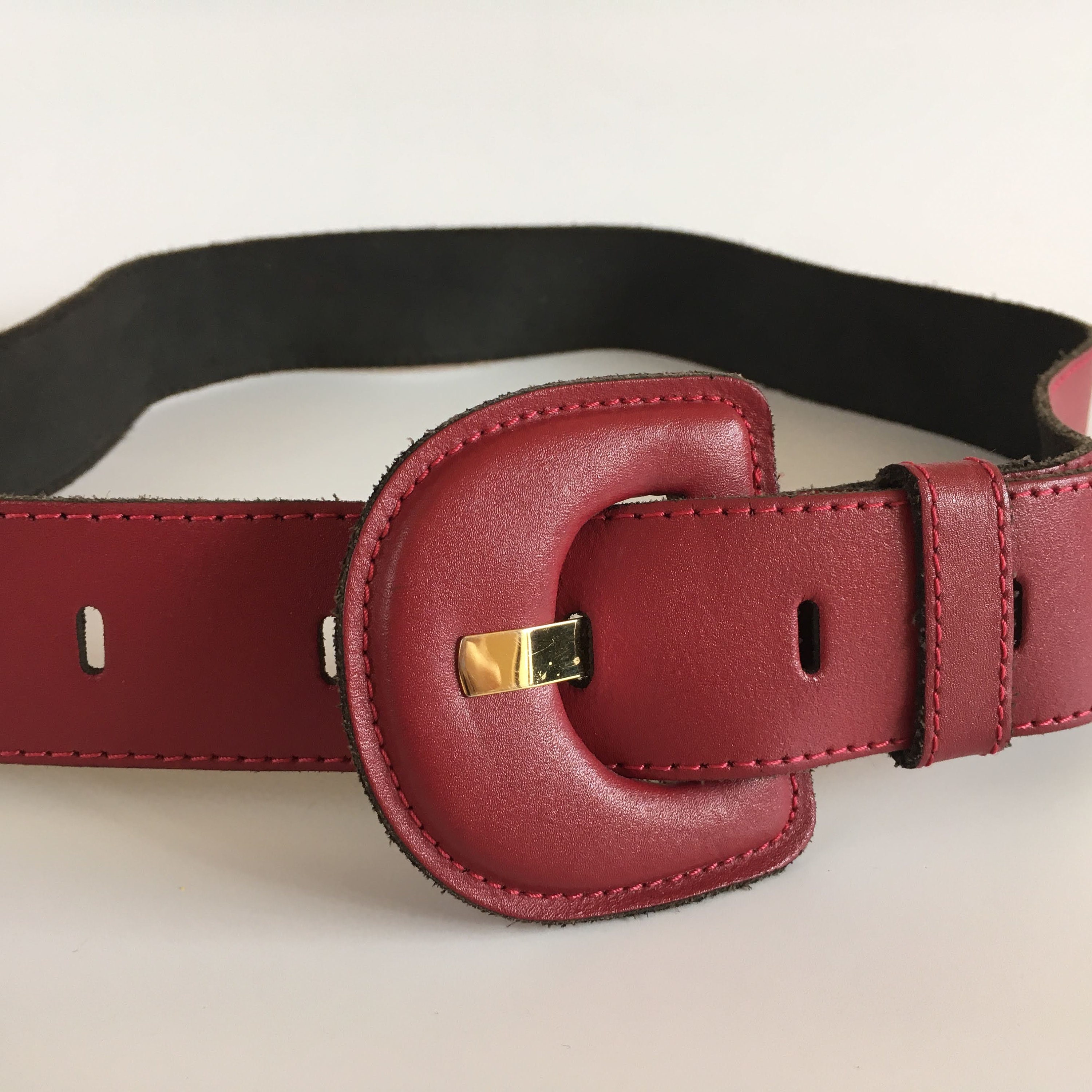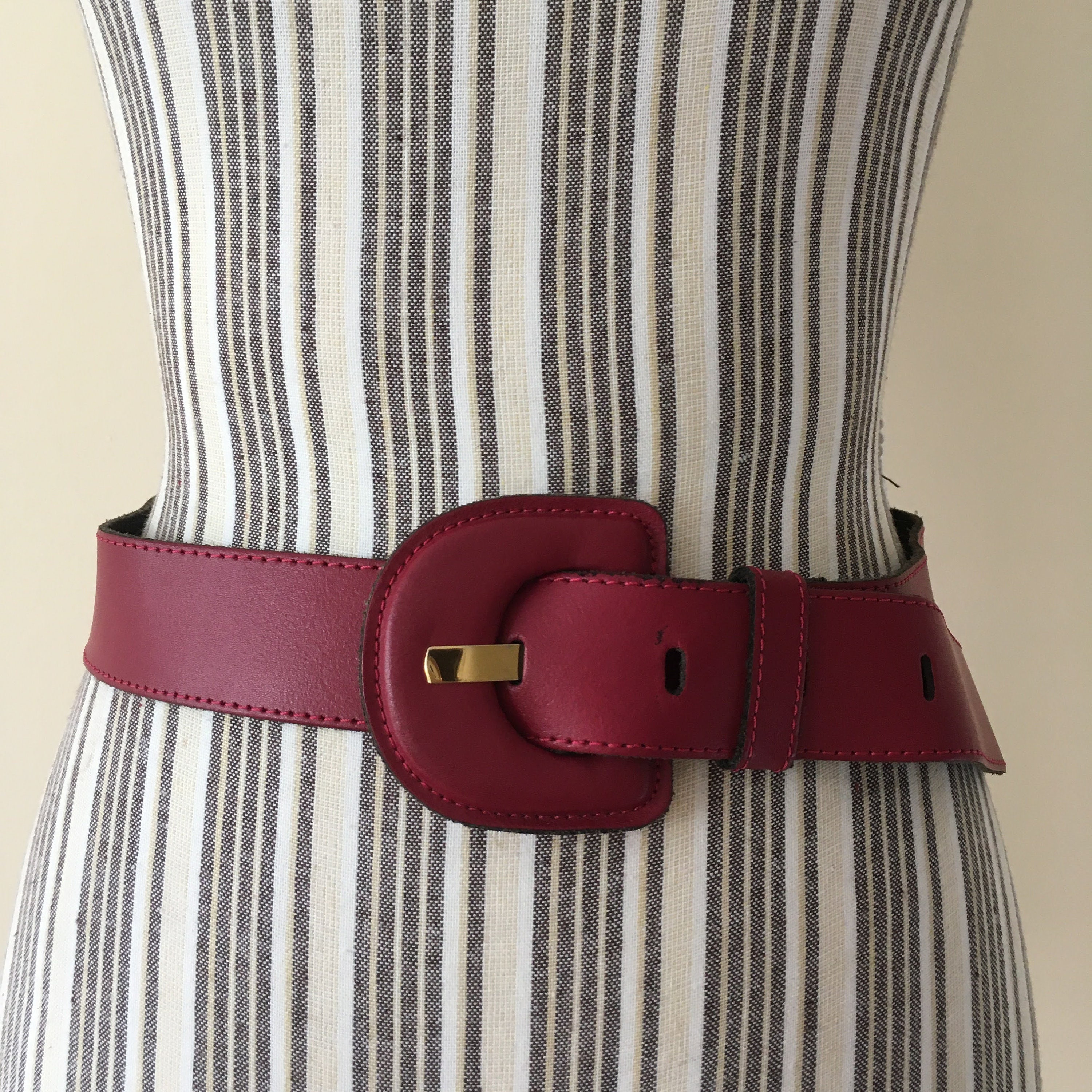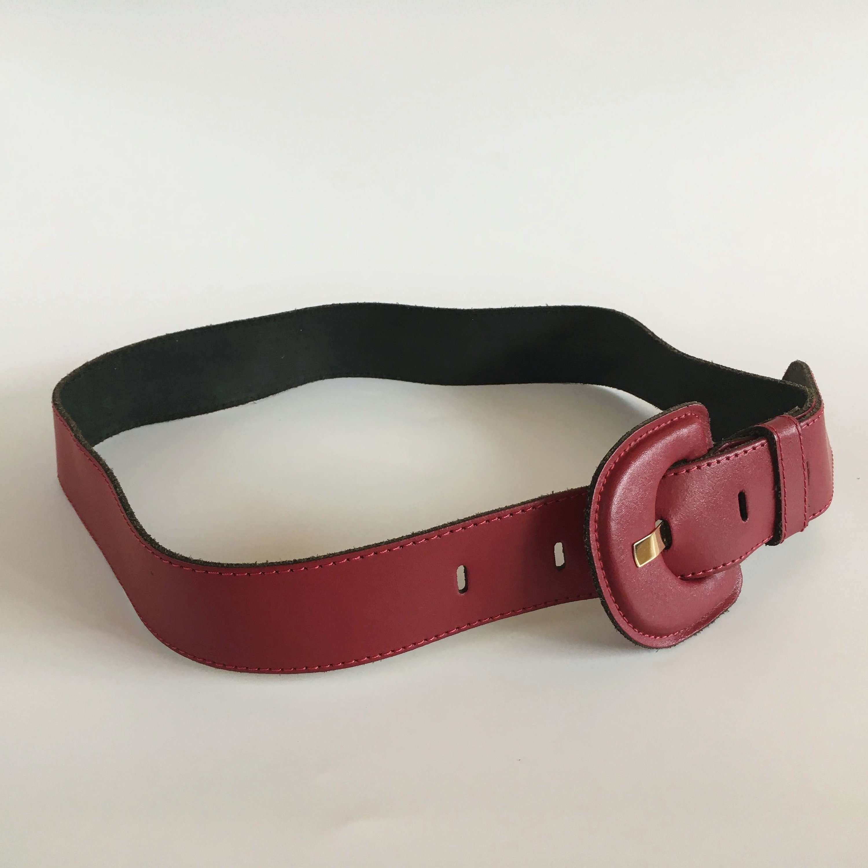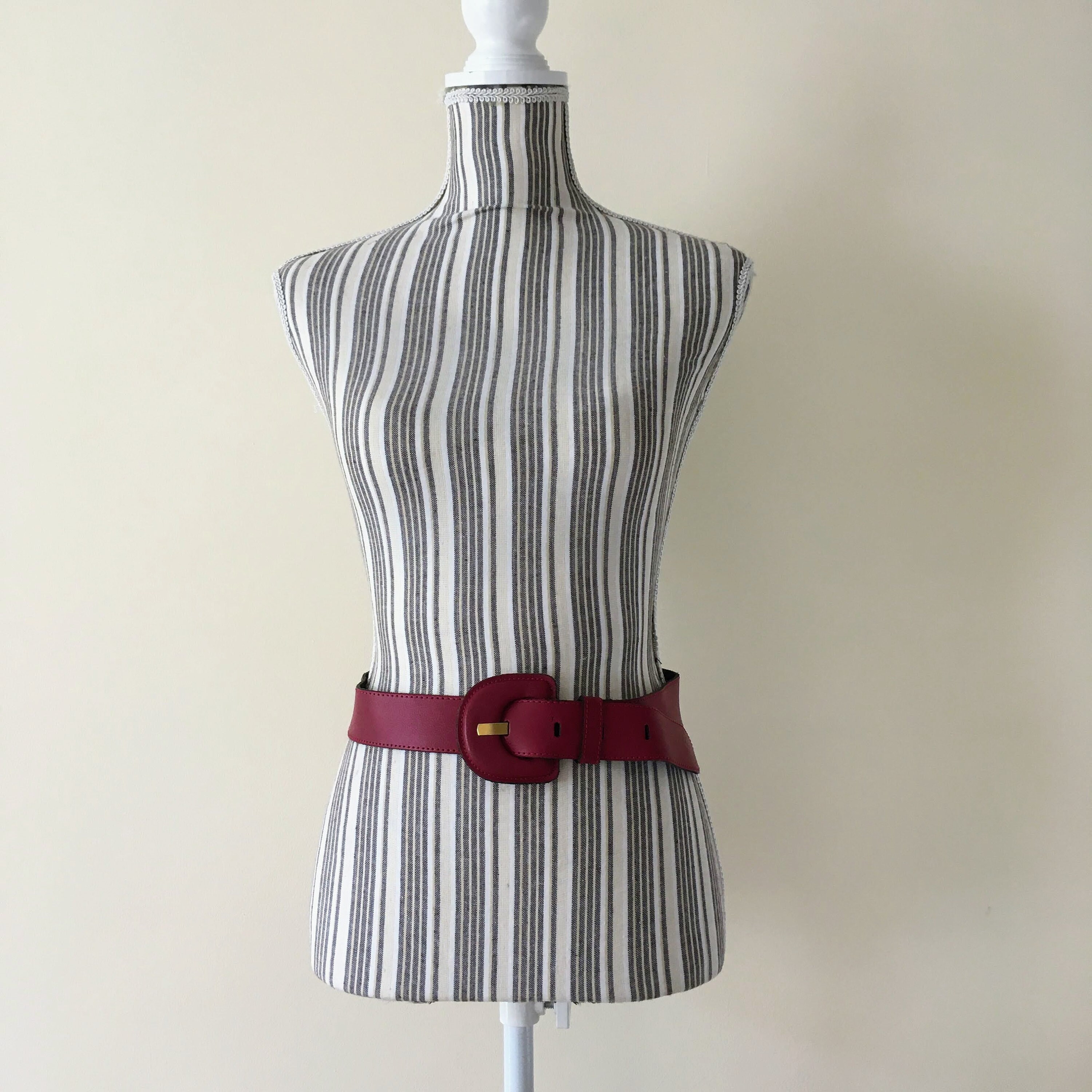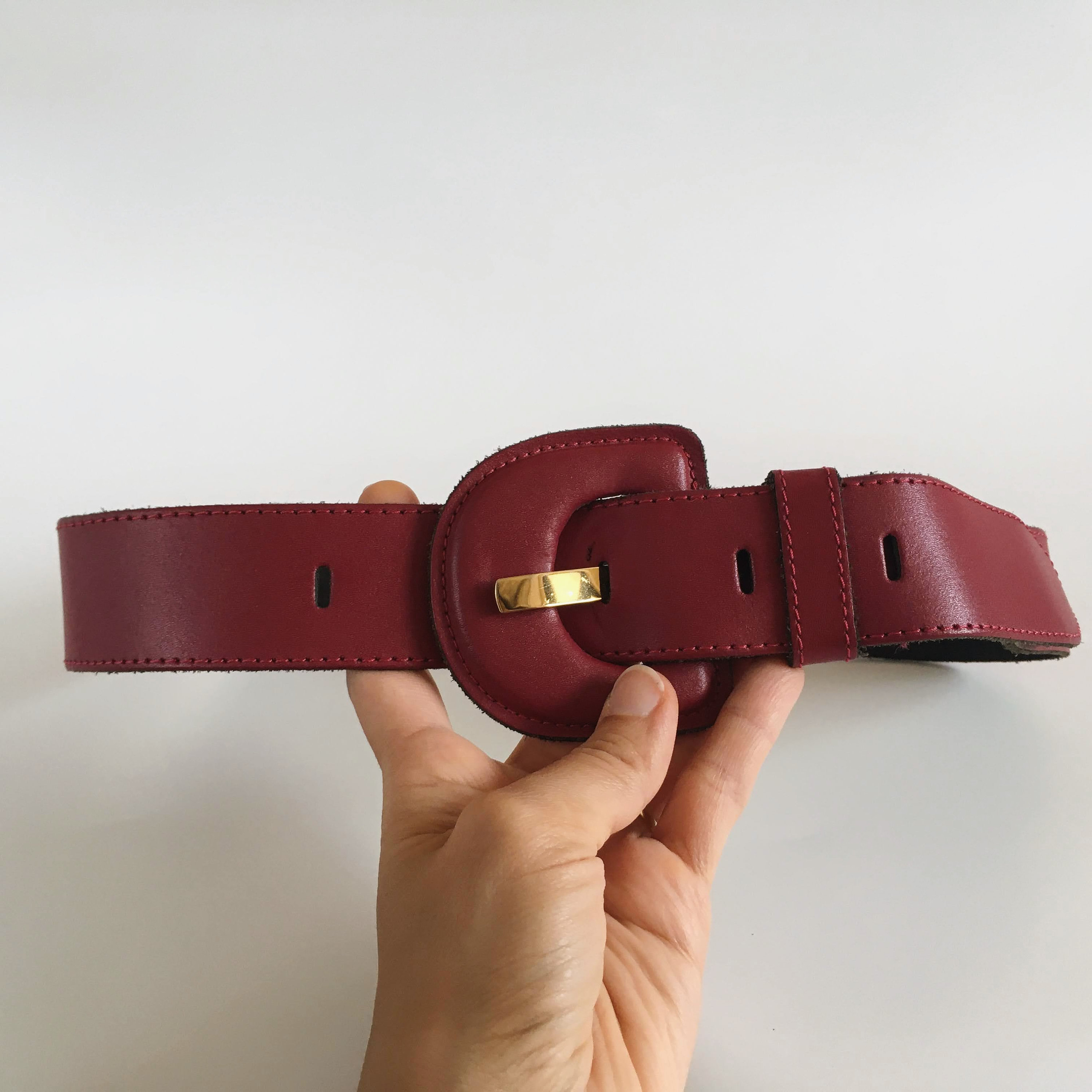 Lovely vintage 80s waist belt for women in oxblood color. This waist cincher is made of genuine leather with leather covered buckle. It can adjust adjust from 27.6"/70 cm to 33"/84 cm and it is 1.6" /4 cm wide
