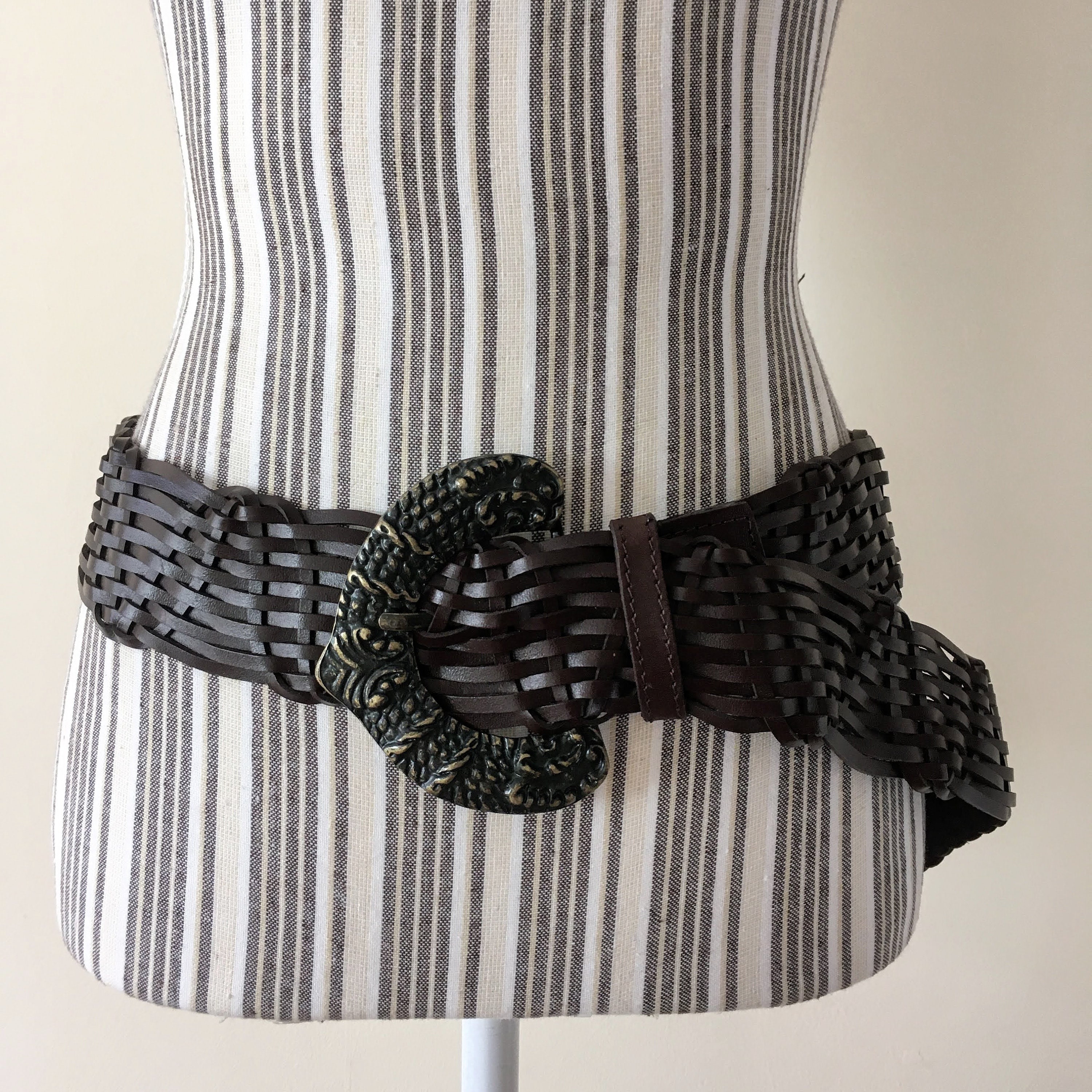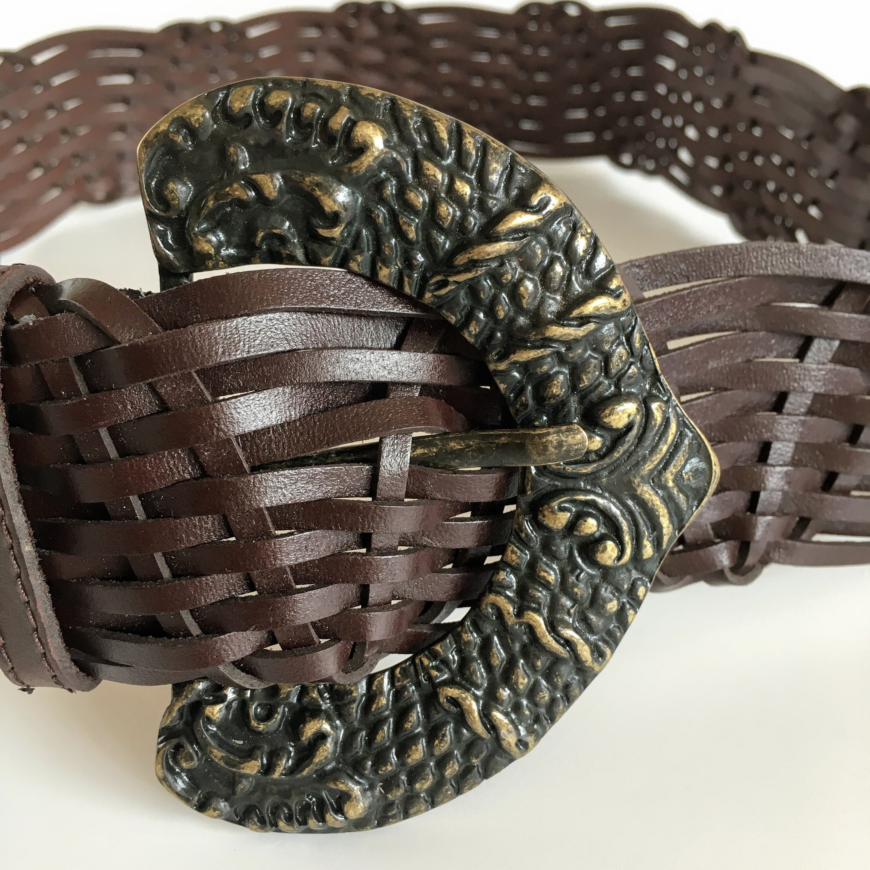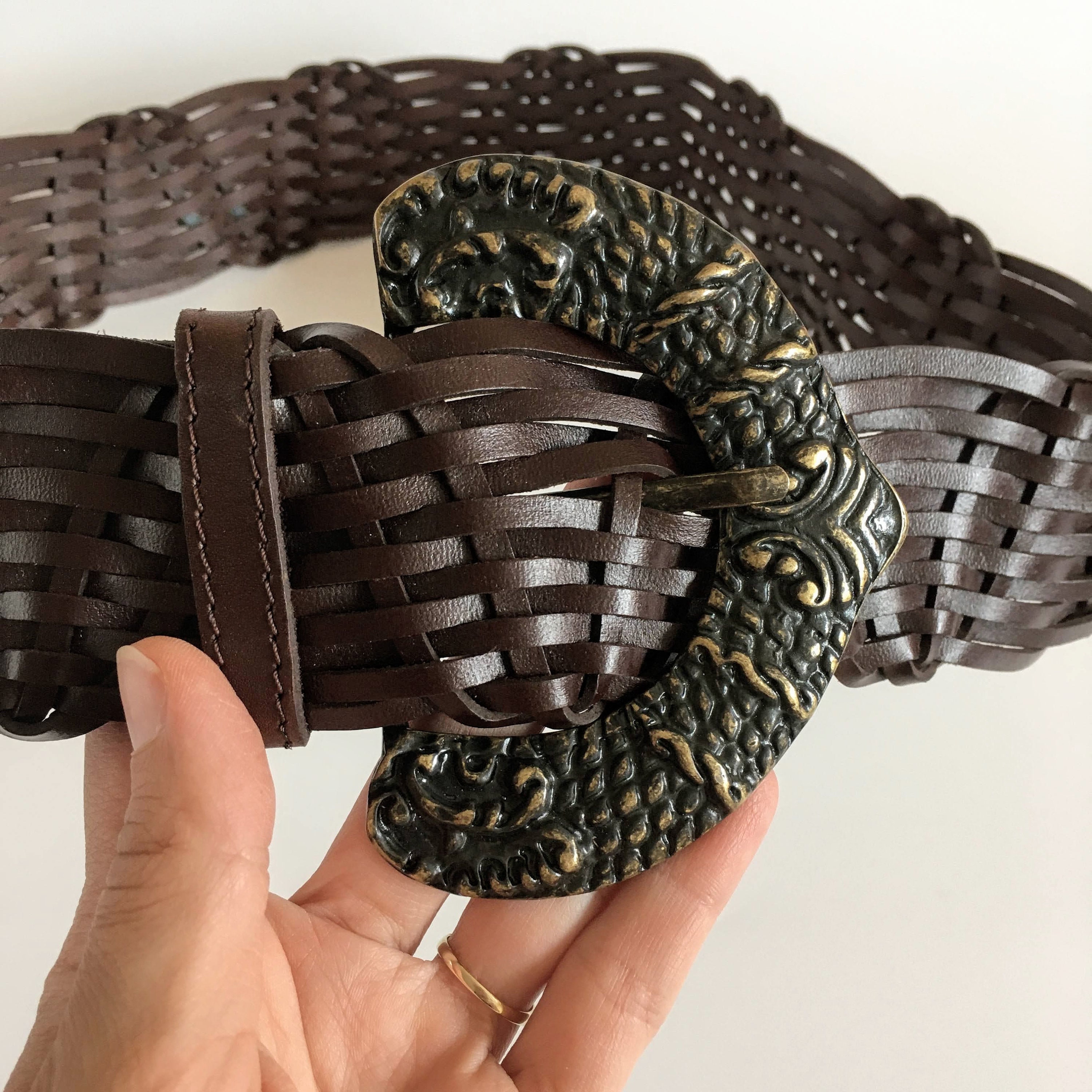 Adorable wide leather belt for women with statement carved buckle. This boho wide waist belt is made of genuine leather with brass metal buckle. It is perfect to wear as a drop waist or hip belt. Ideal boho accessory to your outfit. The size marked on the belt is M. This wide hip belt would fit waists or hips up to 37.4" / 95 cm and it is 2" / 5 cm wide.
