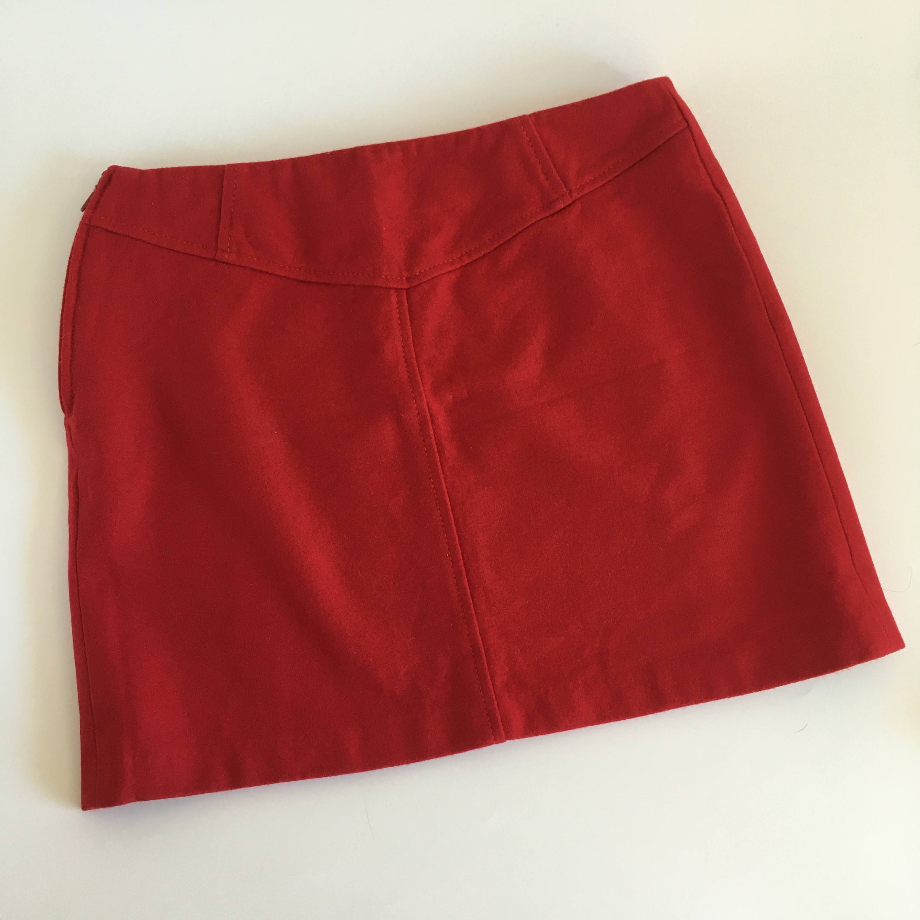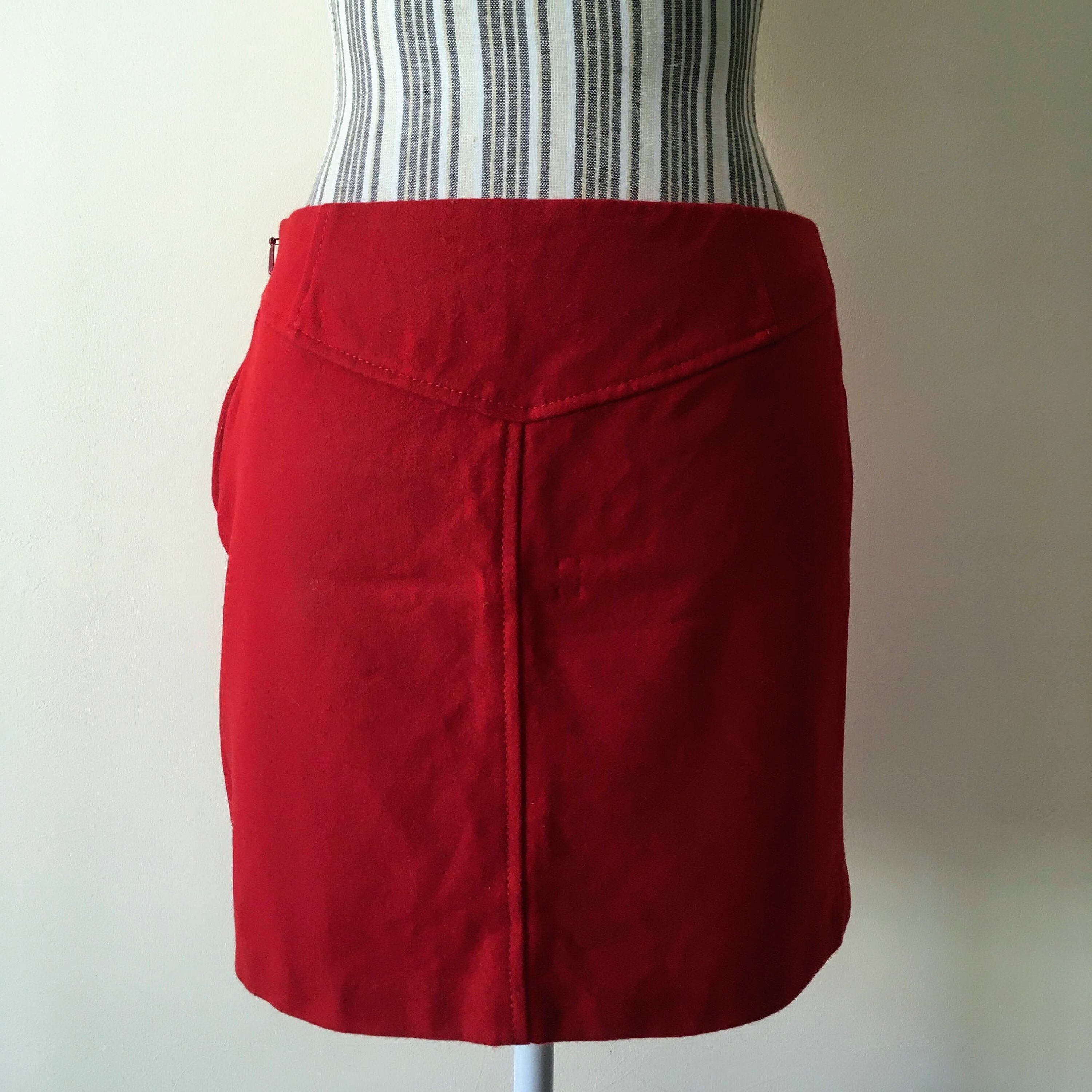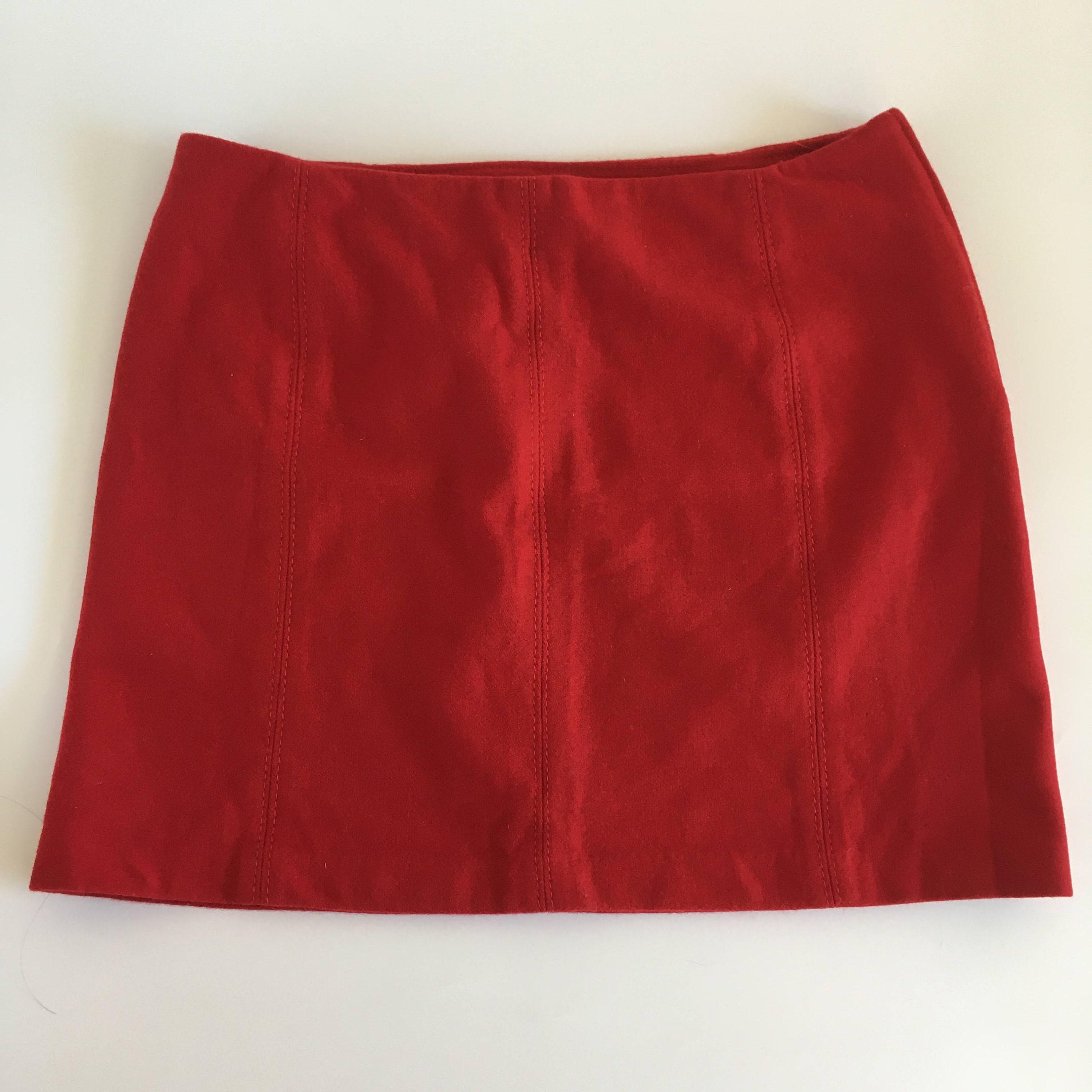 Beautiful red mini skirt by the brand United Colors of Benetton. This short wool skirt is made of wool blend fabric (80%wool, 20% polyamide). This secretary straight skirt is unlined but the fabric is warm enough for the fall season. The size marked on the label is EUR 40 and it fits like size S/M. Please check the measurements below