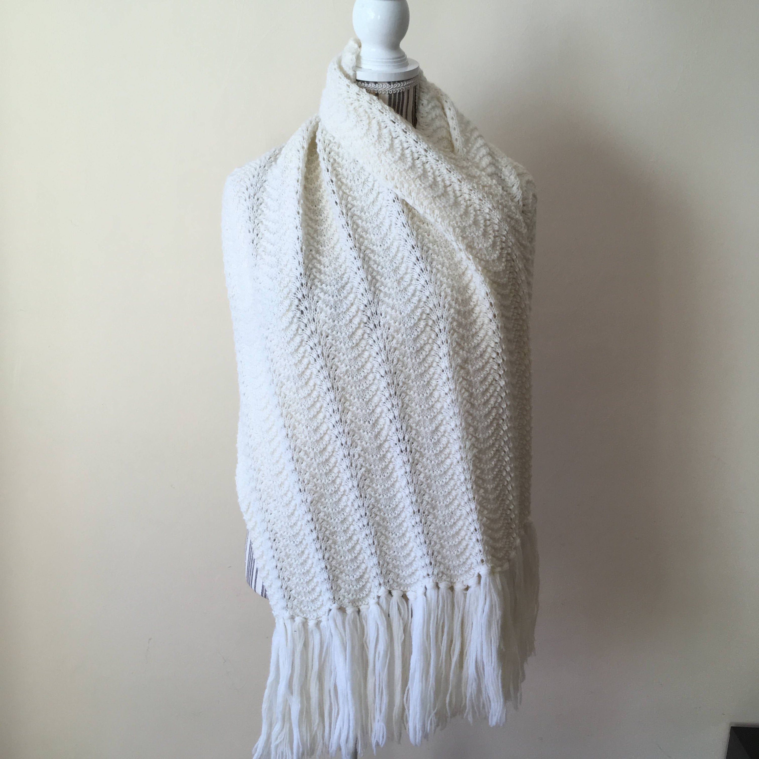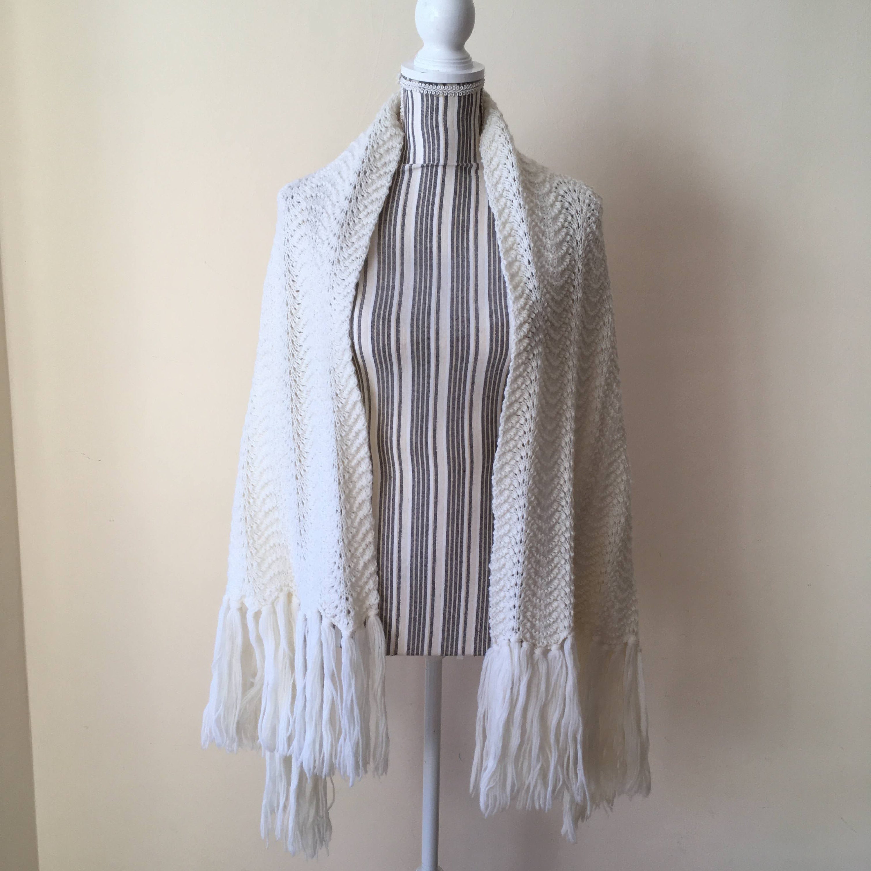 Beautiful off white long chunky scarf with tassels. It is made of soft acrylic wool yarn. This bohemian oversized scarf will keep you warm and help you layer your outfit. Perfect gift for your sister or beast friend.