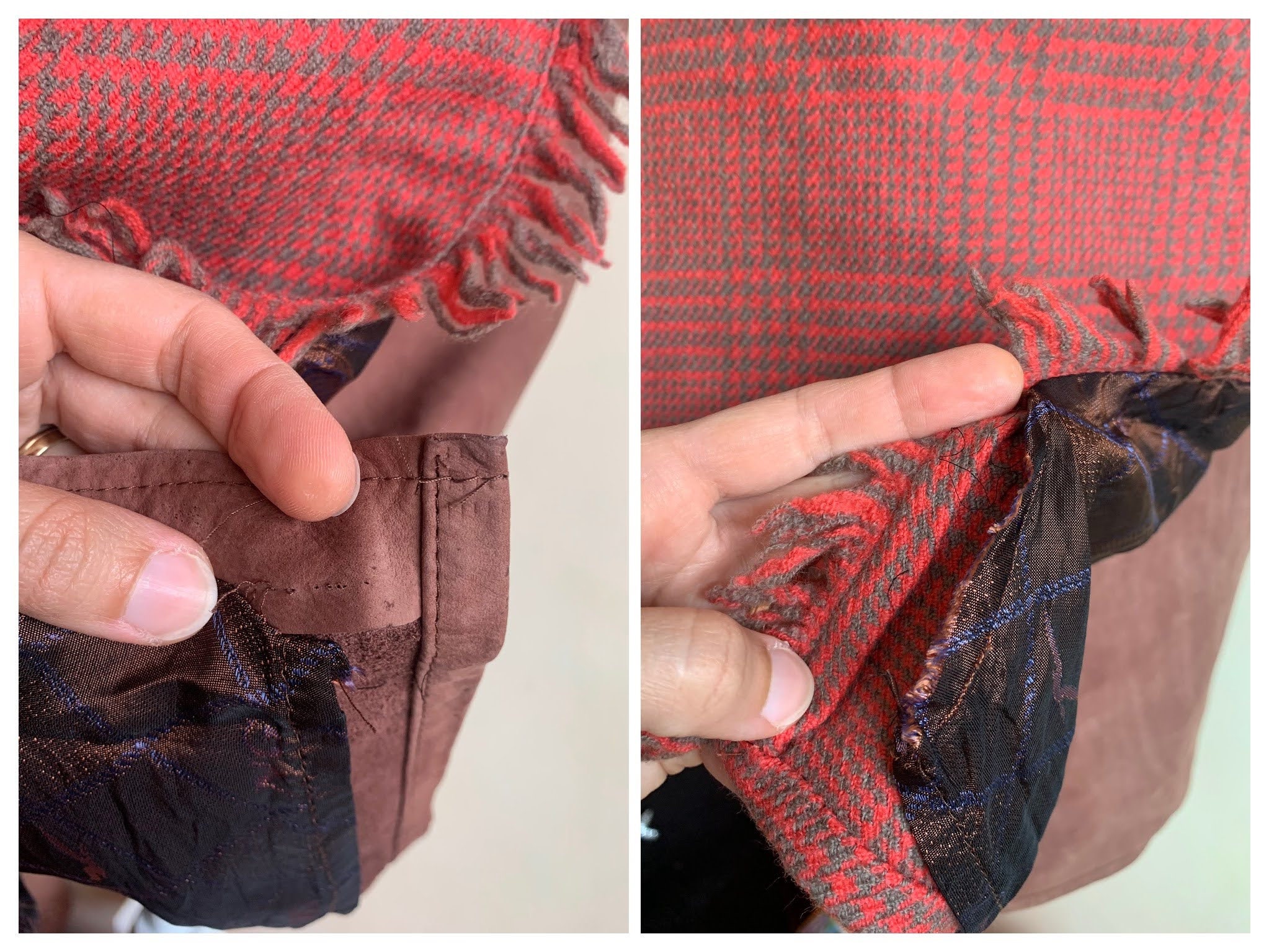 Condition: There are some dark spots and some scratches and wrinkles on the leather surface, which I have tried to capture in the close up photos. There are also a couple of loose stitches where the lining is sawn to the skirt.