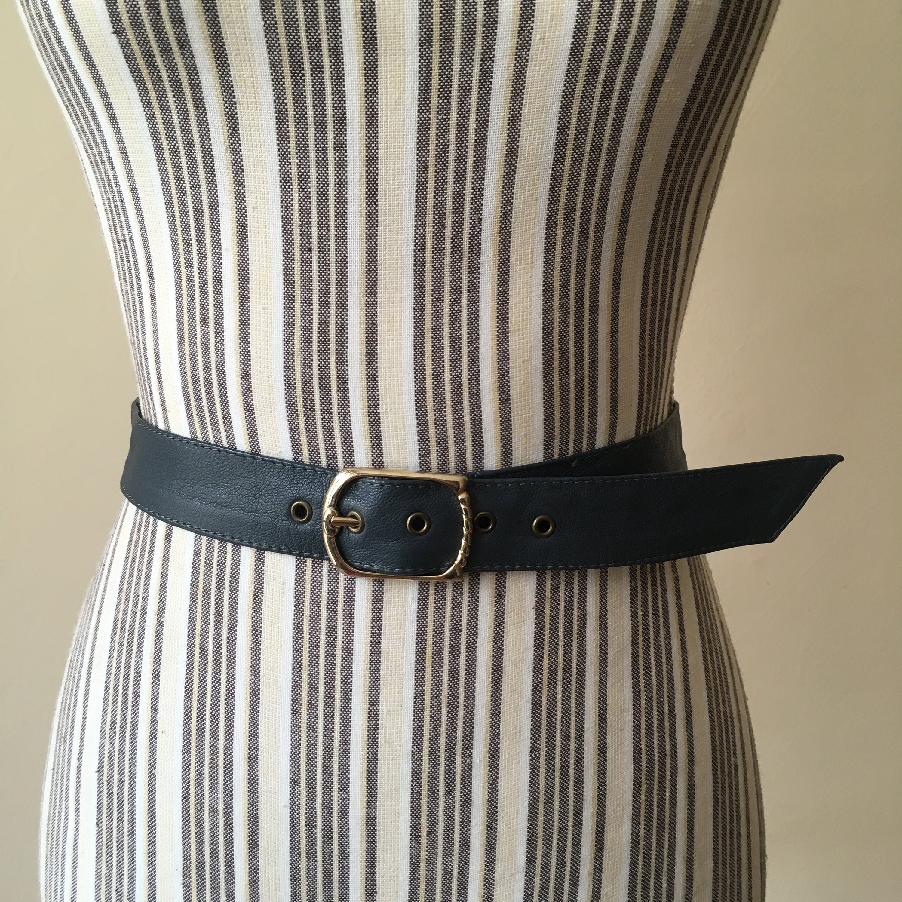 This is a beautiful grey leather belt for women in dark grey color with slim gold tone buckle. This vintage mod waist belt is made of very soft genuine leather. It can adjust from 26.4" / 67 cm to 29.5" / 75 cm. This cute vintage belt is 1.2" / 3 cm wide.