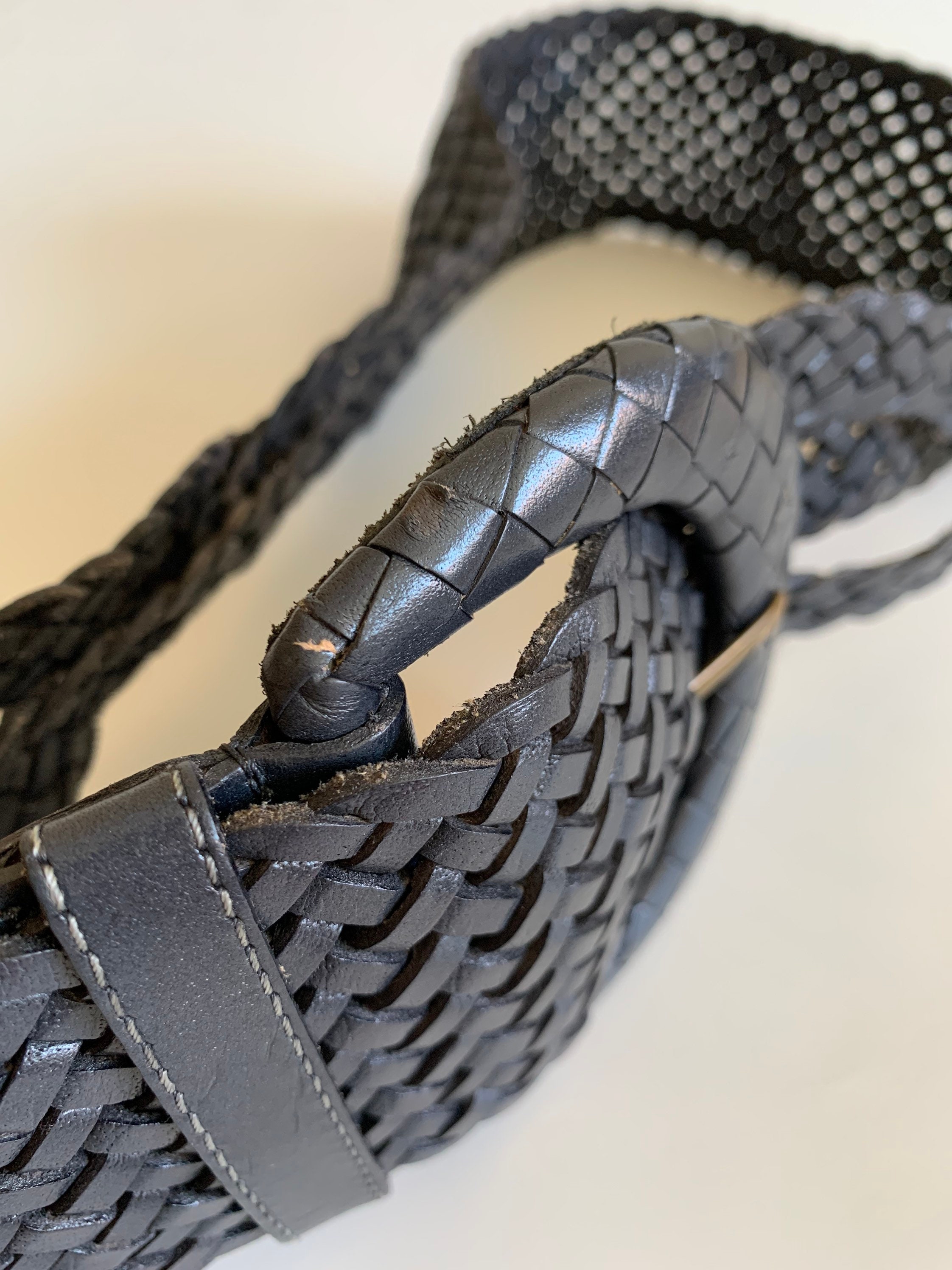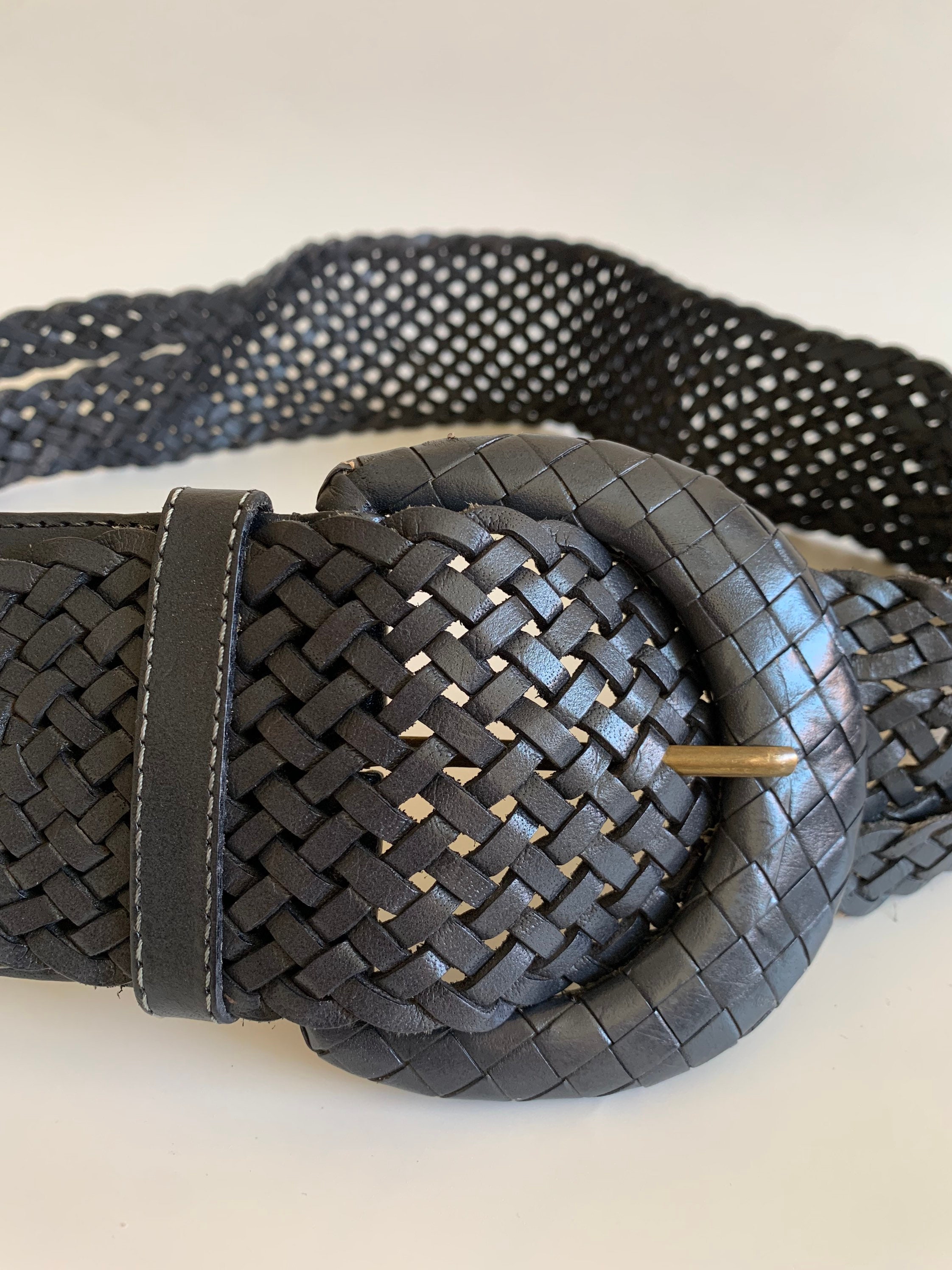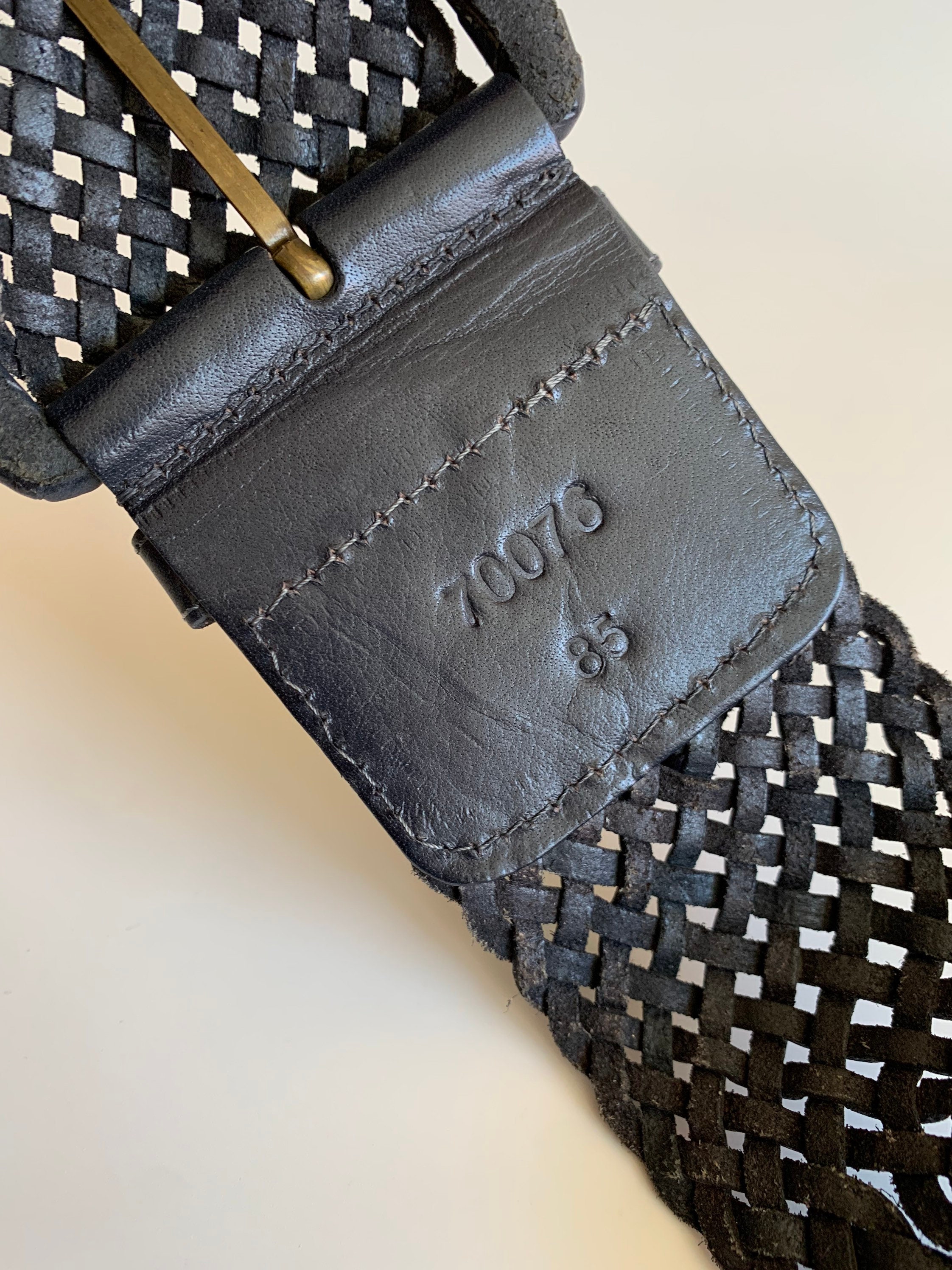 This is a stunning vintage woven belt with an oversized buckle. This wide waist belt is made of genuine leather I deep dark grey color. The real leather is beautifully braided to form the shape of the belt. The large leather covered buckle is in harmony with the belt - the leather is woven even on the buckle. This boho chic belt was made with the highest attention to detail. This hippie belt will add a pop of free spirit to your outfits. Perfect leather accessory for your spring or summer dresses. The size marked on the belt is 85 cm ( 33.5”). Please check the measurements below.