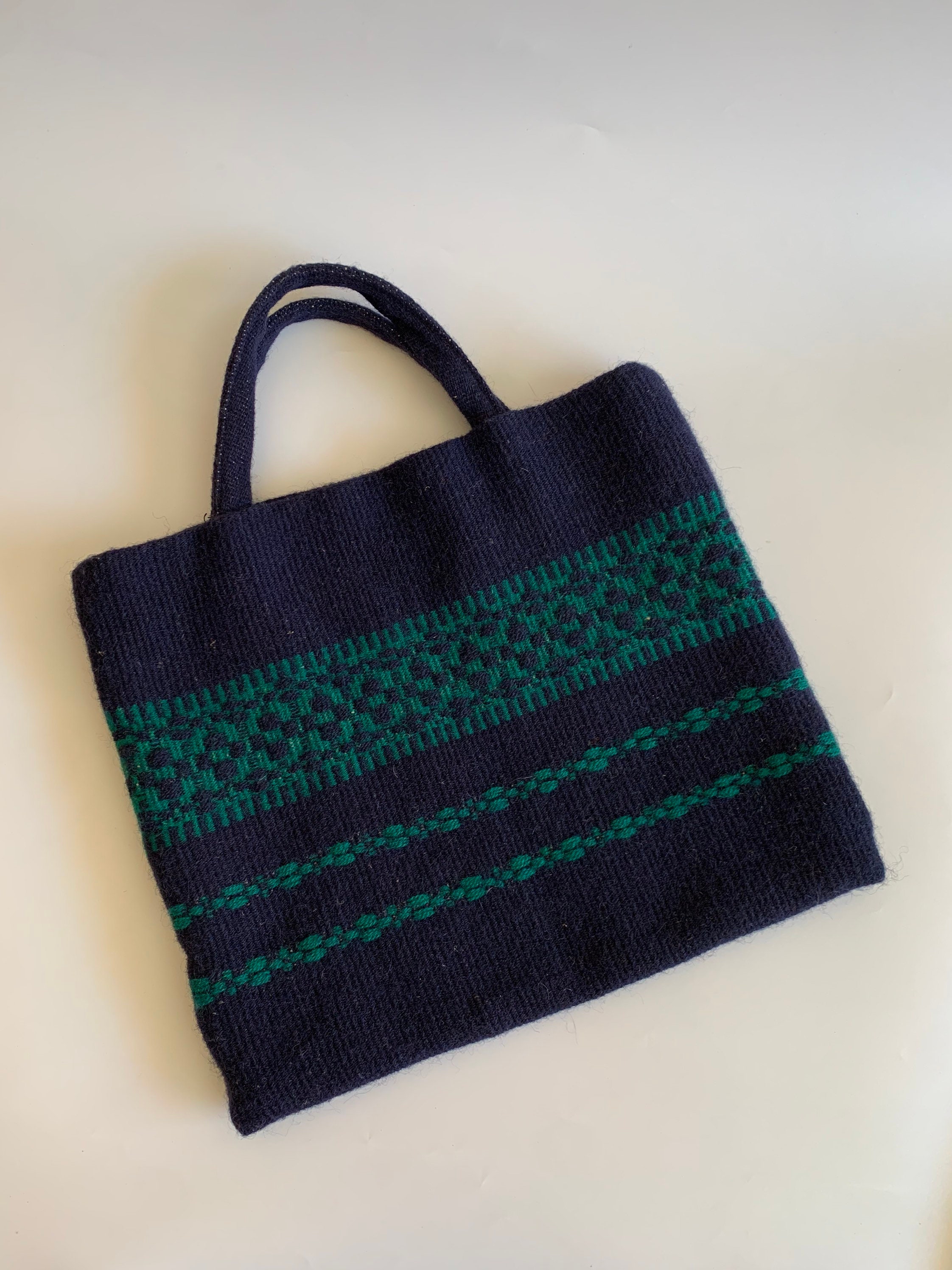 Condition: This woven handbag is beautifully preserved. It does have some minor flaws, due to the texture of the wool fabric - it has caught some fine fibers and tiny straws, which I have tried to capture in the close up photos.