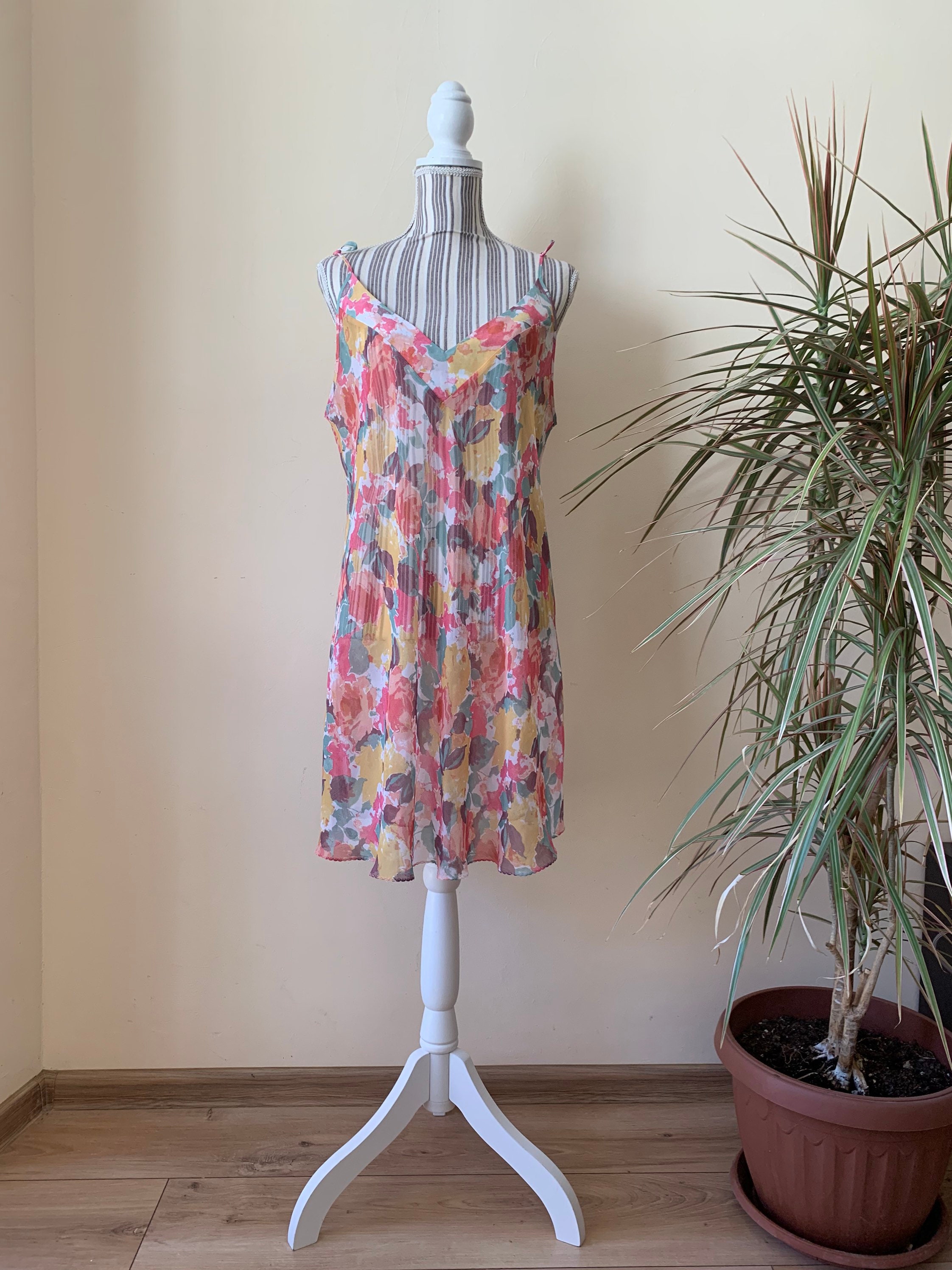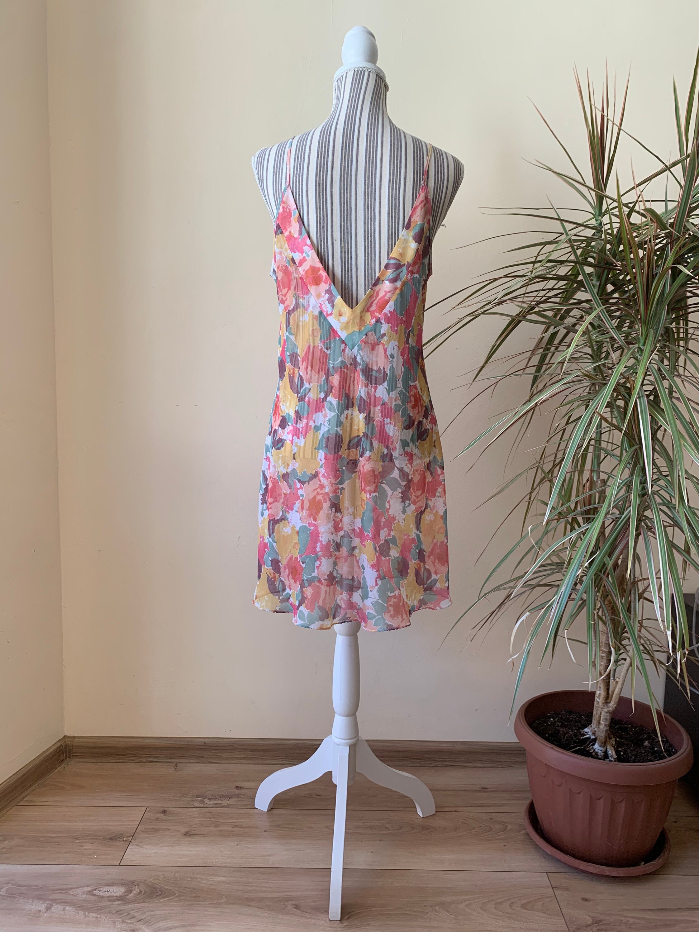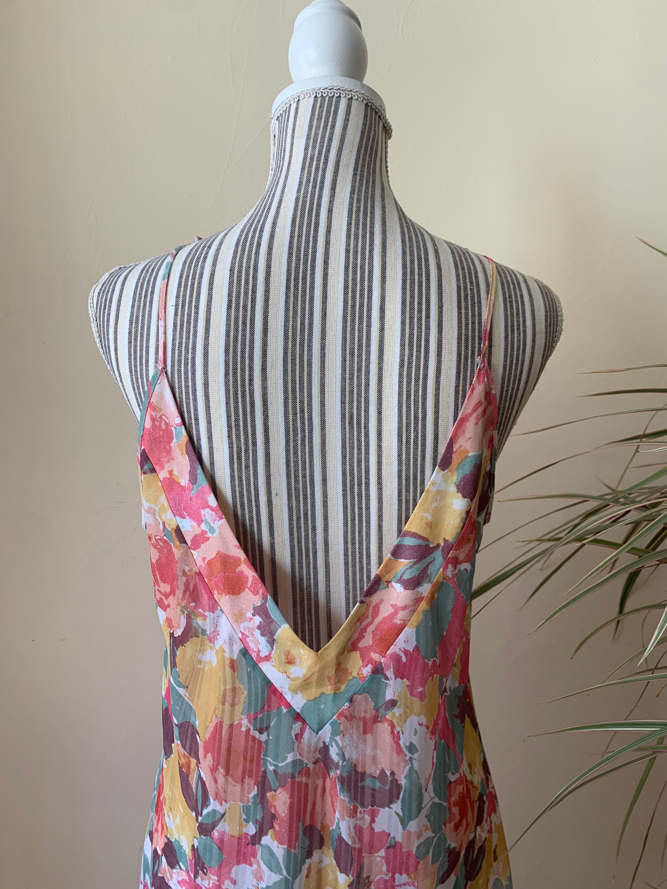 This is a vintage 90s colorful pastel nightdress. This knee length nightgown is made of sheer super thin see through fabric, I believe it is polyester. This retro nightdress has no label. This sexy slip dress has a V neck at the front side and deep v neck at the back. This see through night gown fits like M/L. Please check the measurements below.