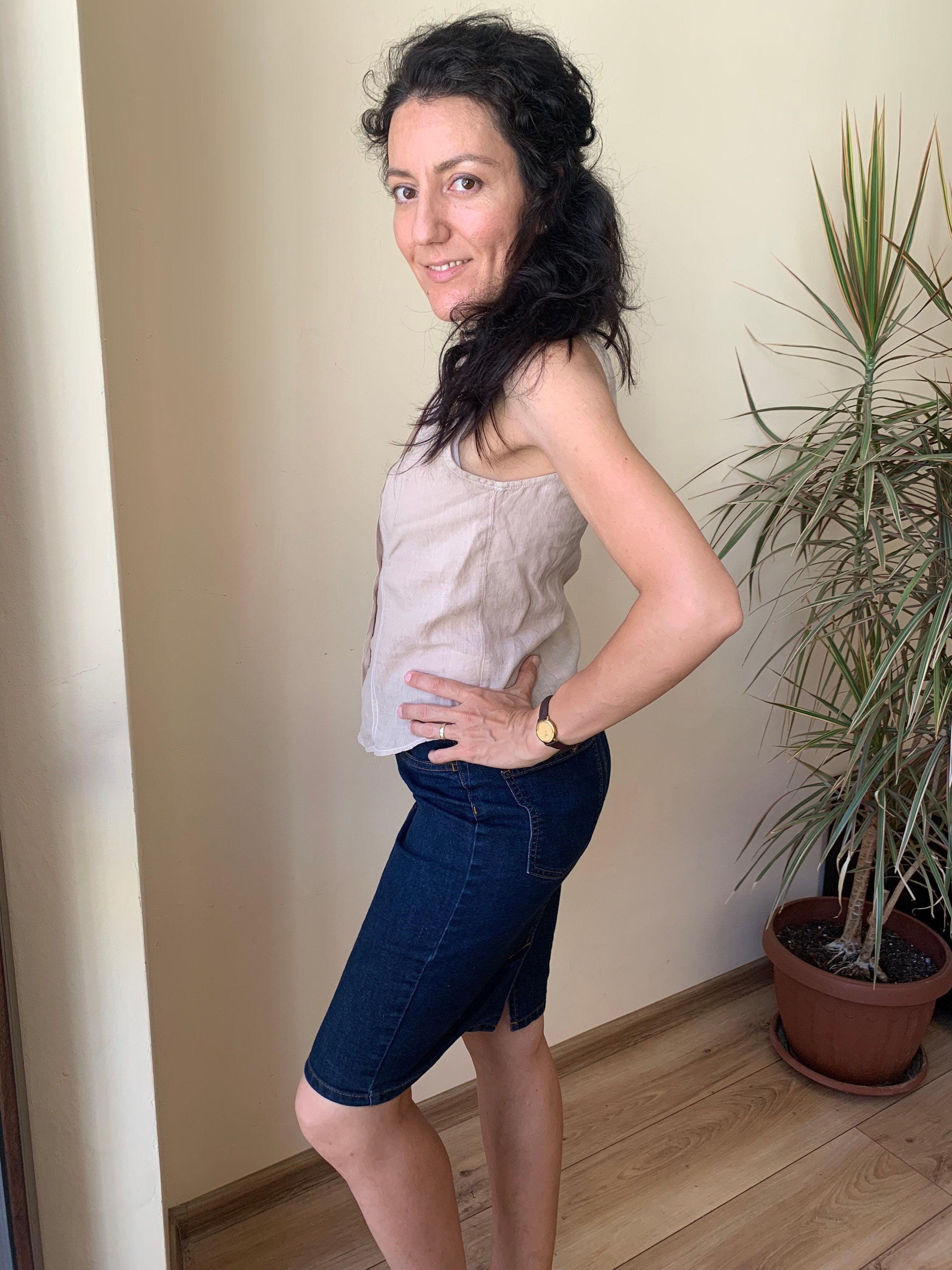 I am modelling the garment and I wear size S, USA 6, EUR 36, UK 10, 5' 3" tall