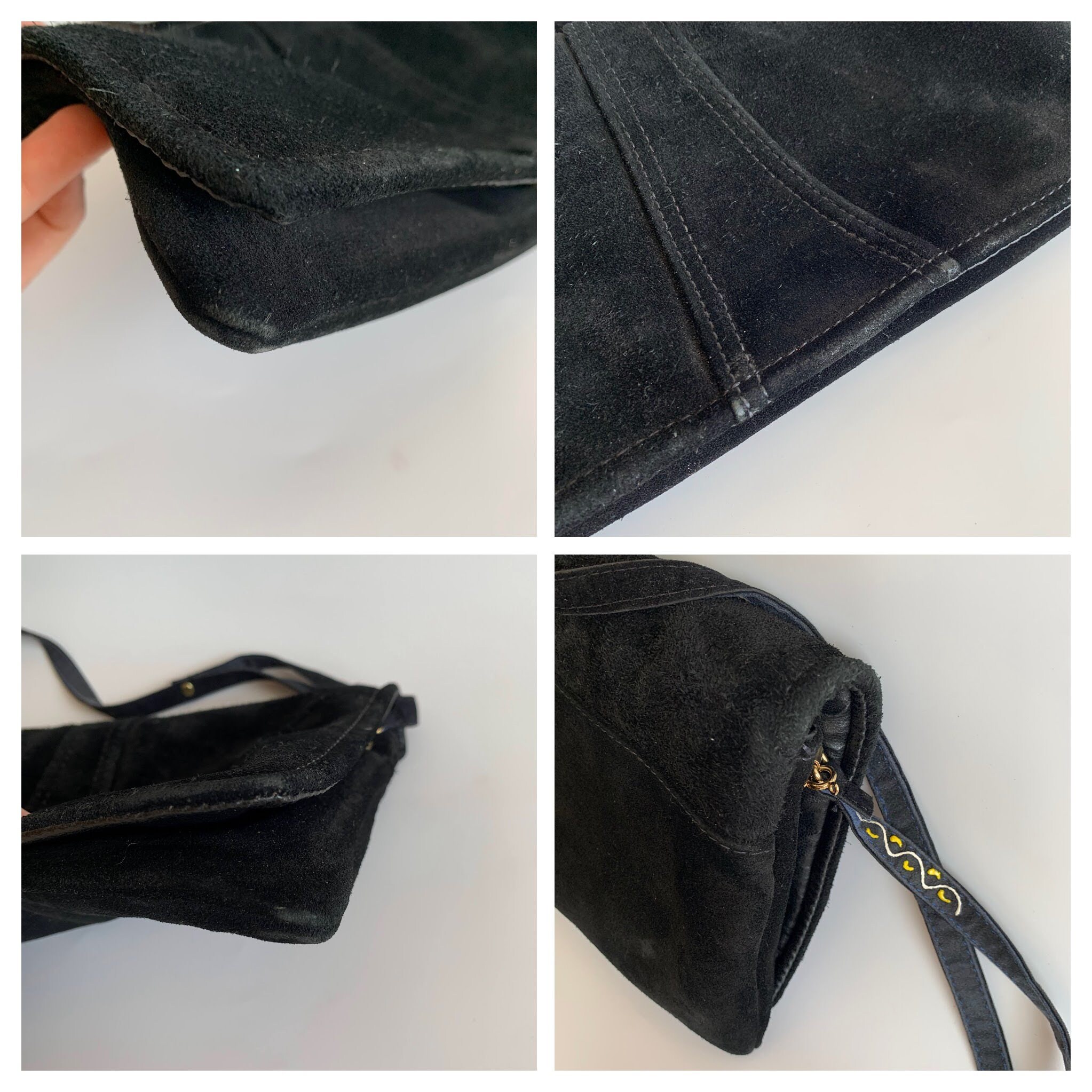 Condition: This envelope purse was much loved and the suede leather has a distressed look. There is some fading around the edges which I have tried to capture in the close up photos.