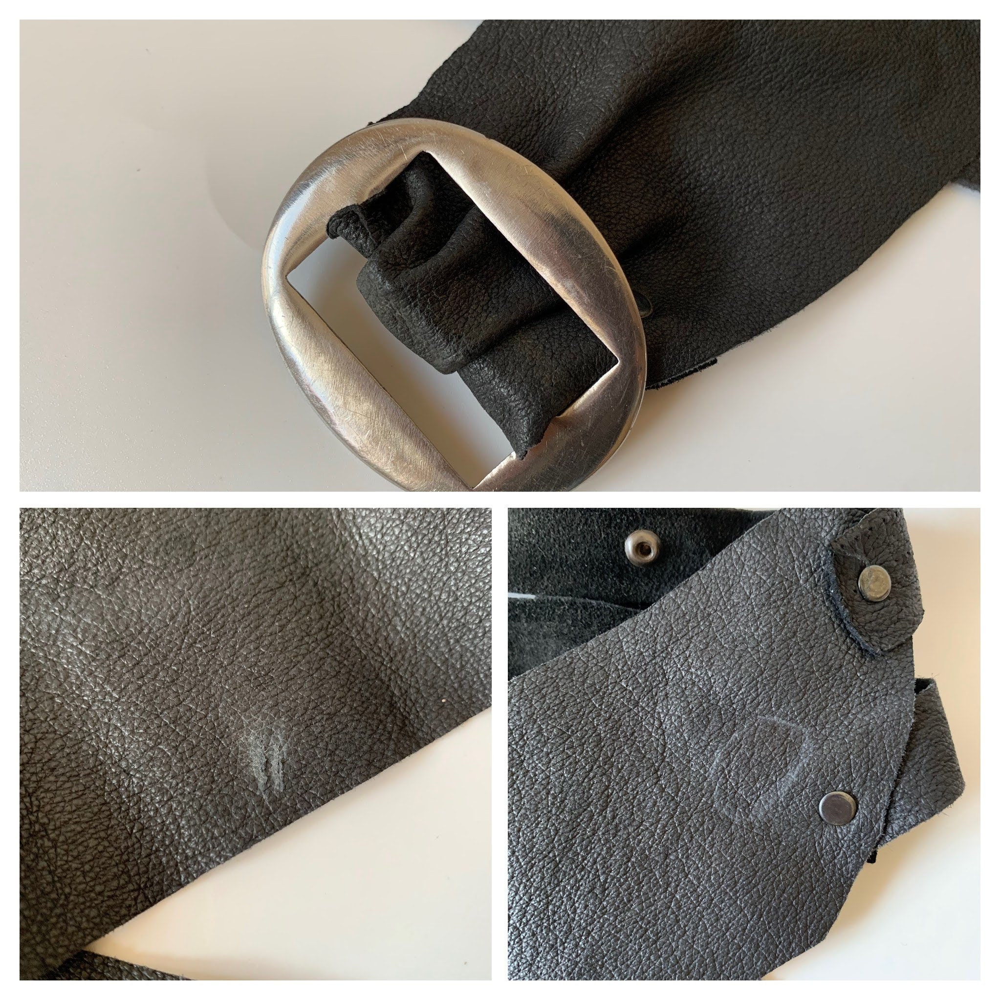 Condition: There are some scratches and marks on the leather surface which I have tried to capture in the close up photos. There are some sine scratches on the silver tone buckle too.
