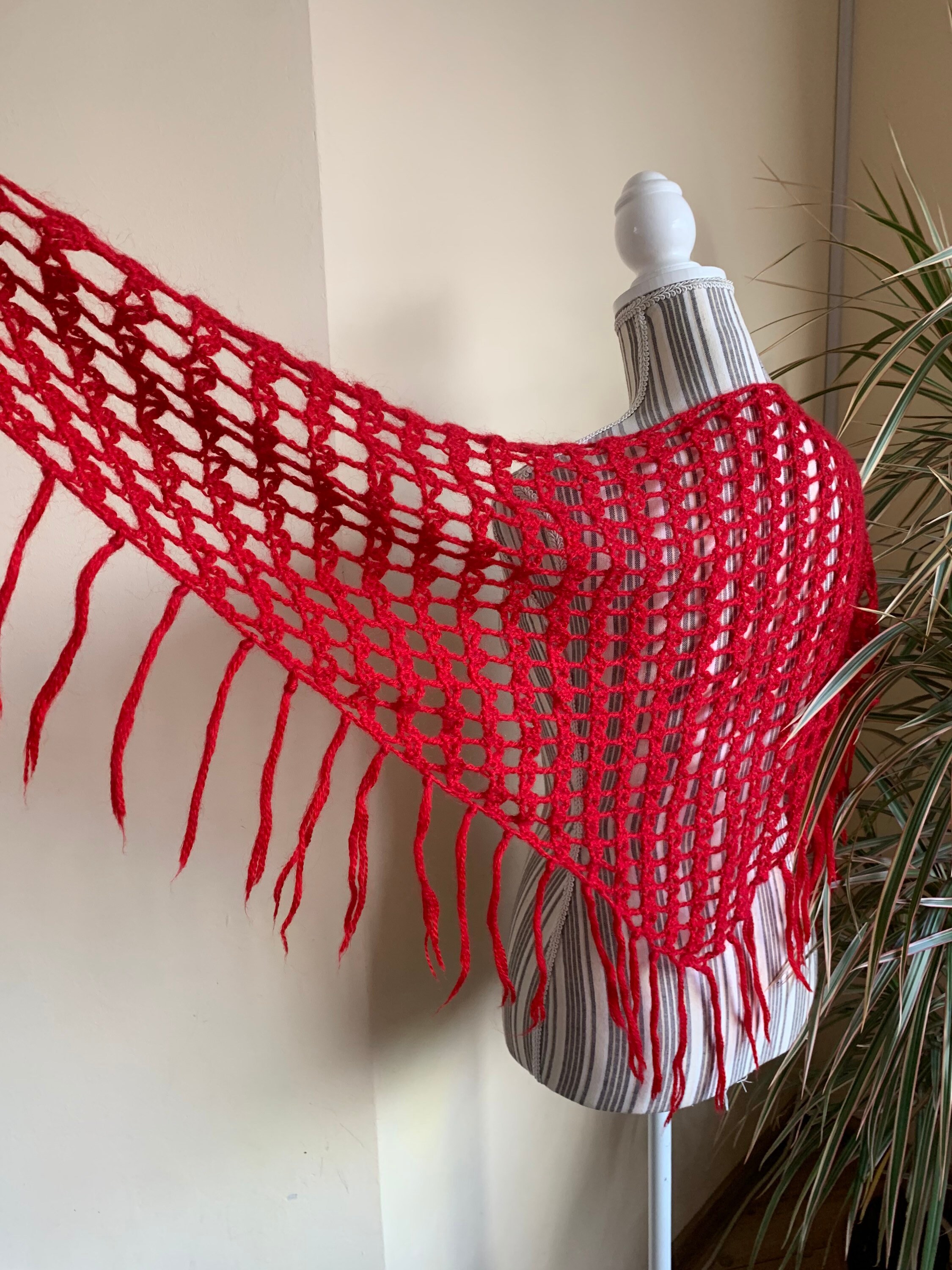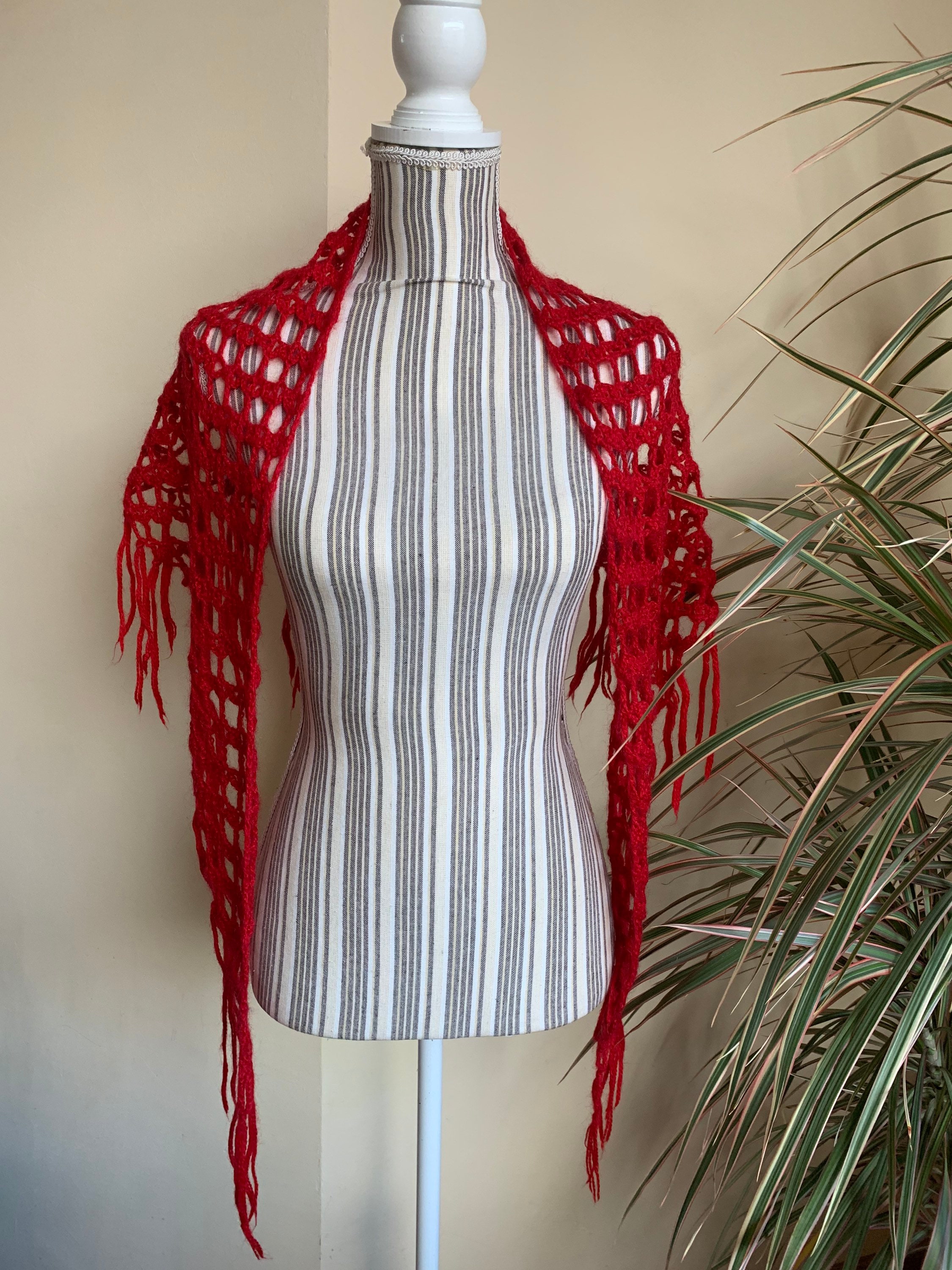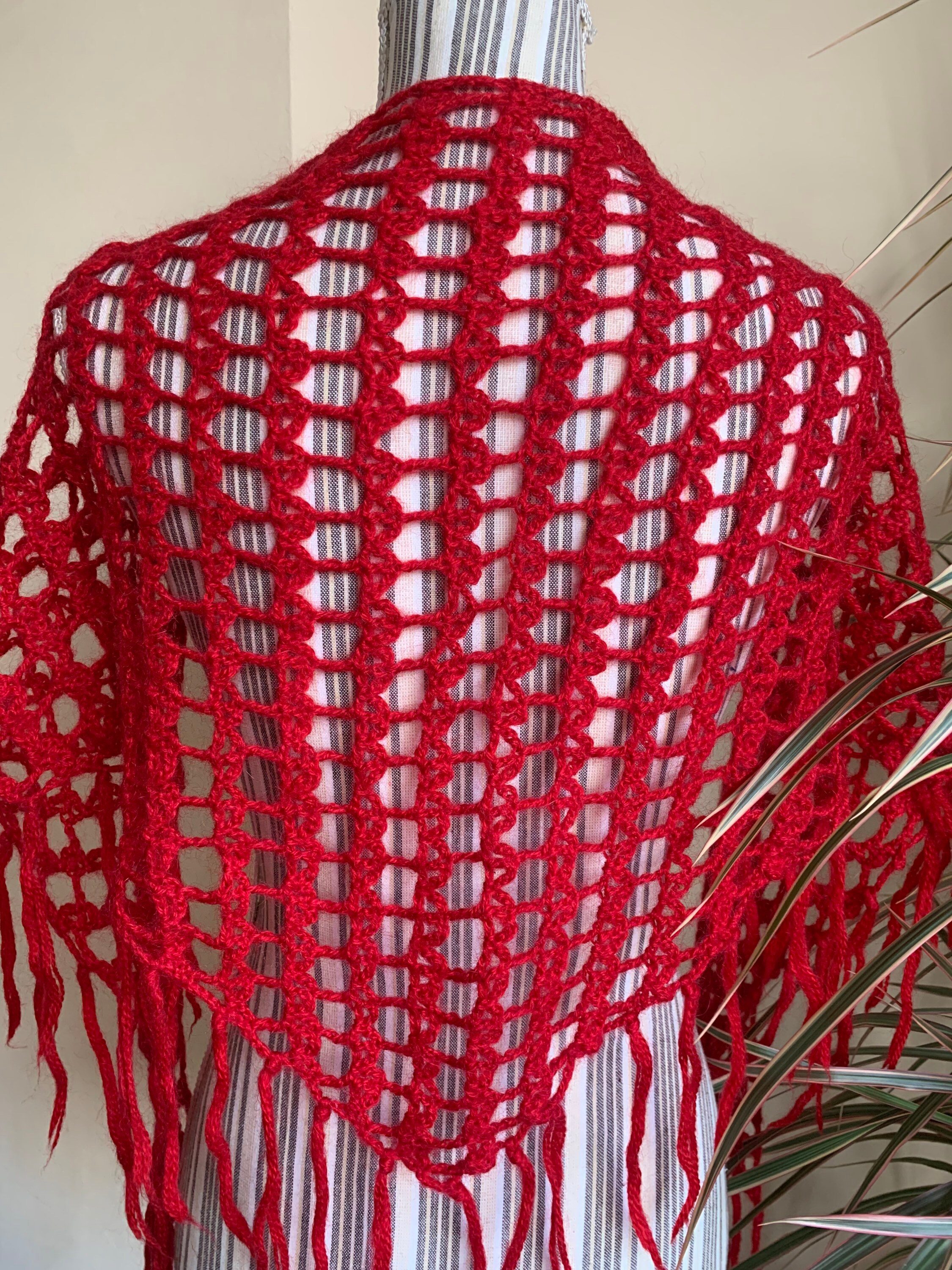 This is a vintage red soft mohair wool crochet shawl. This bohemian shawl will get all eyes on you with its vibrant color. Adorable statement to your plain outfits. This small women triangle shawl is perfect for the autumn and winter season. Perfect gift for your mother or grandmother.