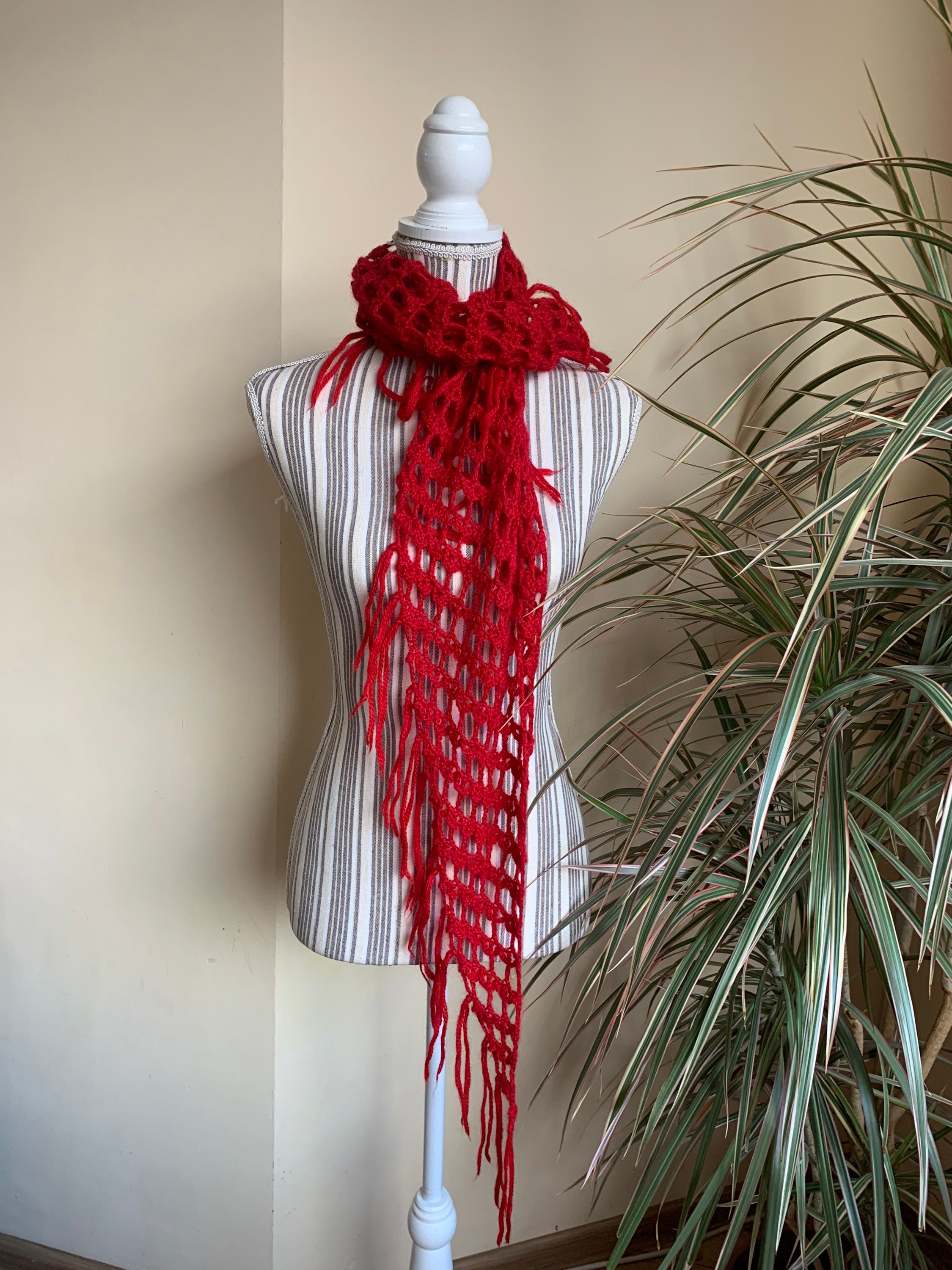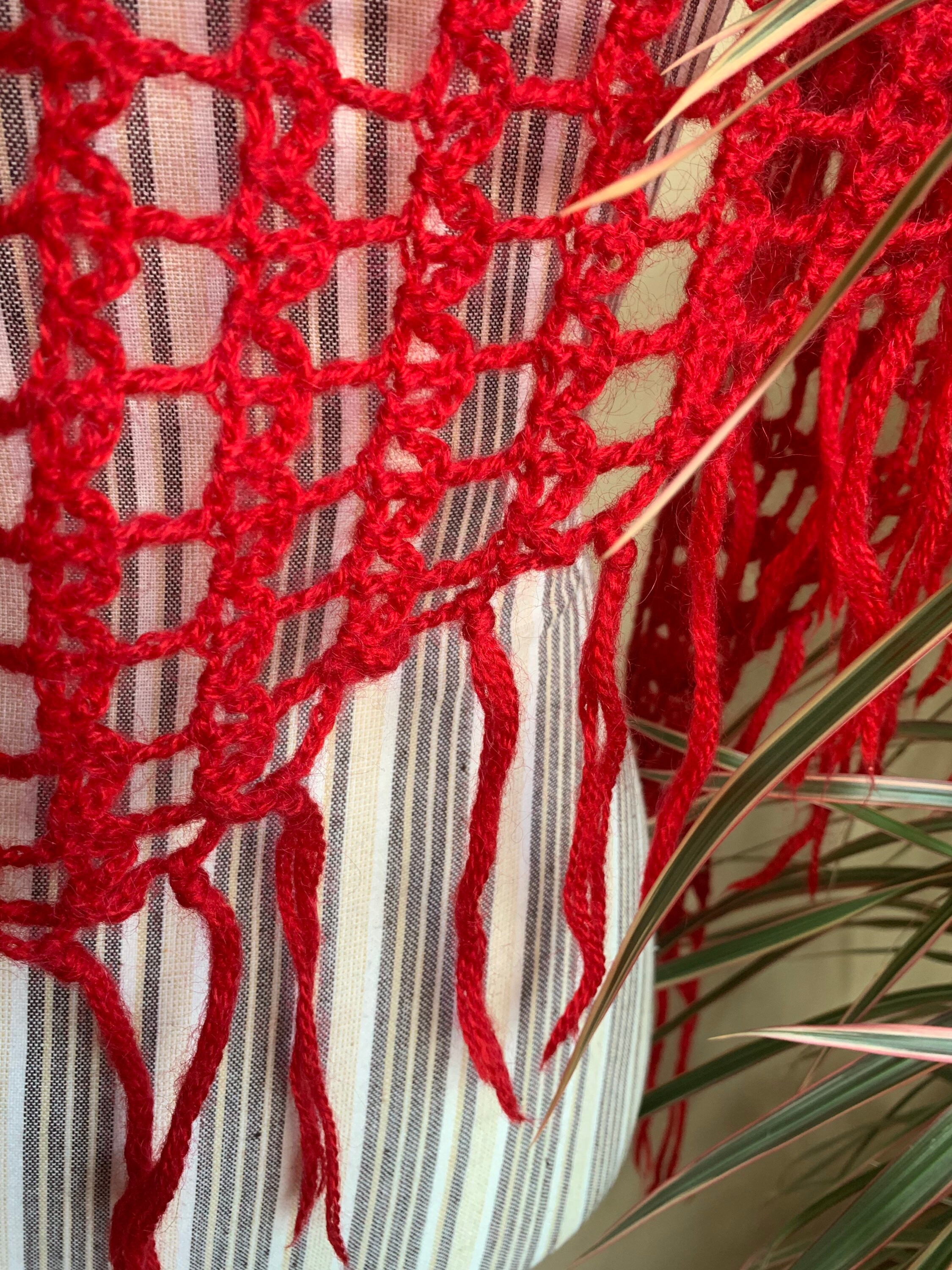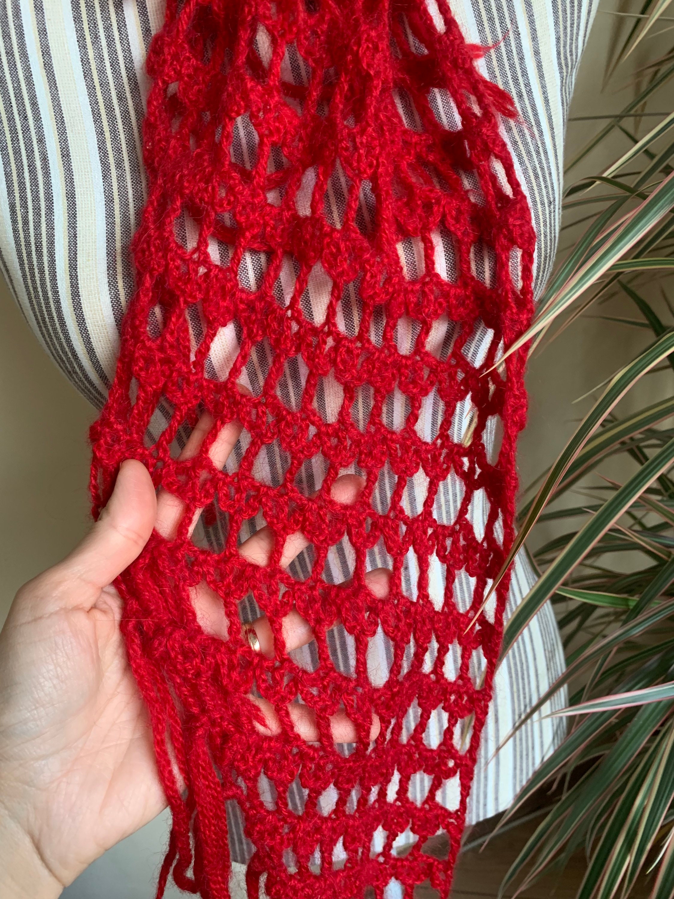 This is a vintage red soft mohair wool crochet shawl. This bohemian shawl will get all eyes on you with its vibrant color. Adorable statement to your plain outfits. This small women triangle shawl is perfect for the autumn and winter season. Perfect gift for your mother or grandmother.