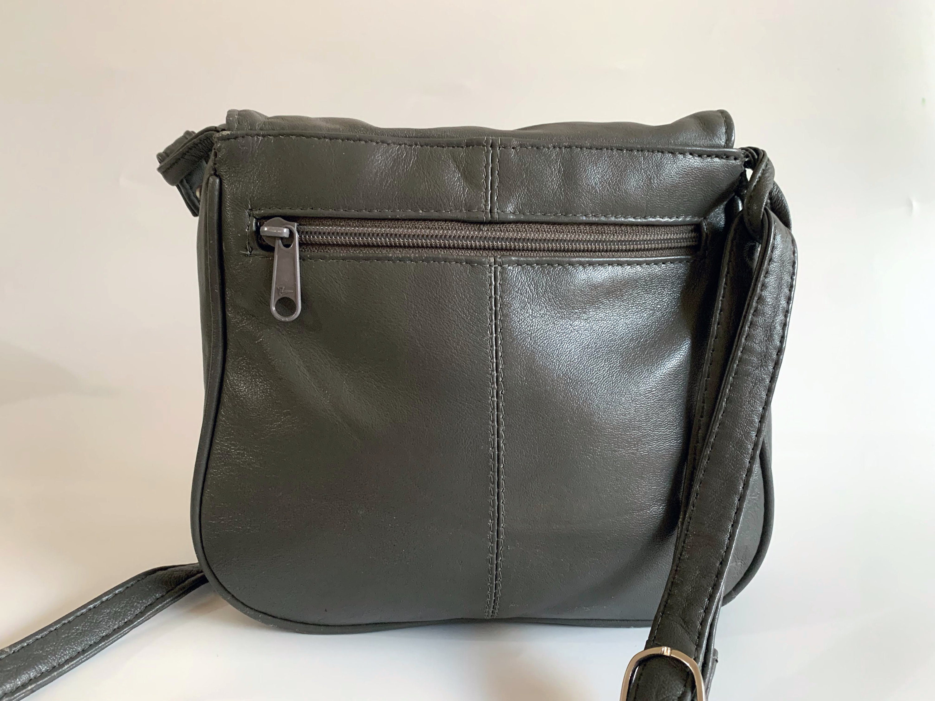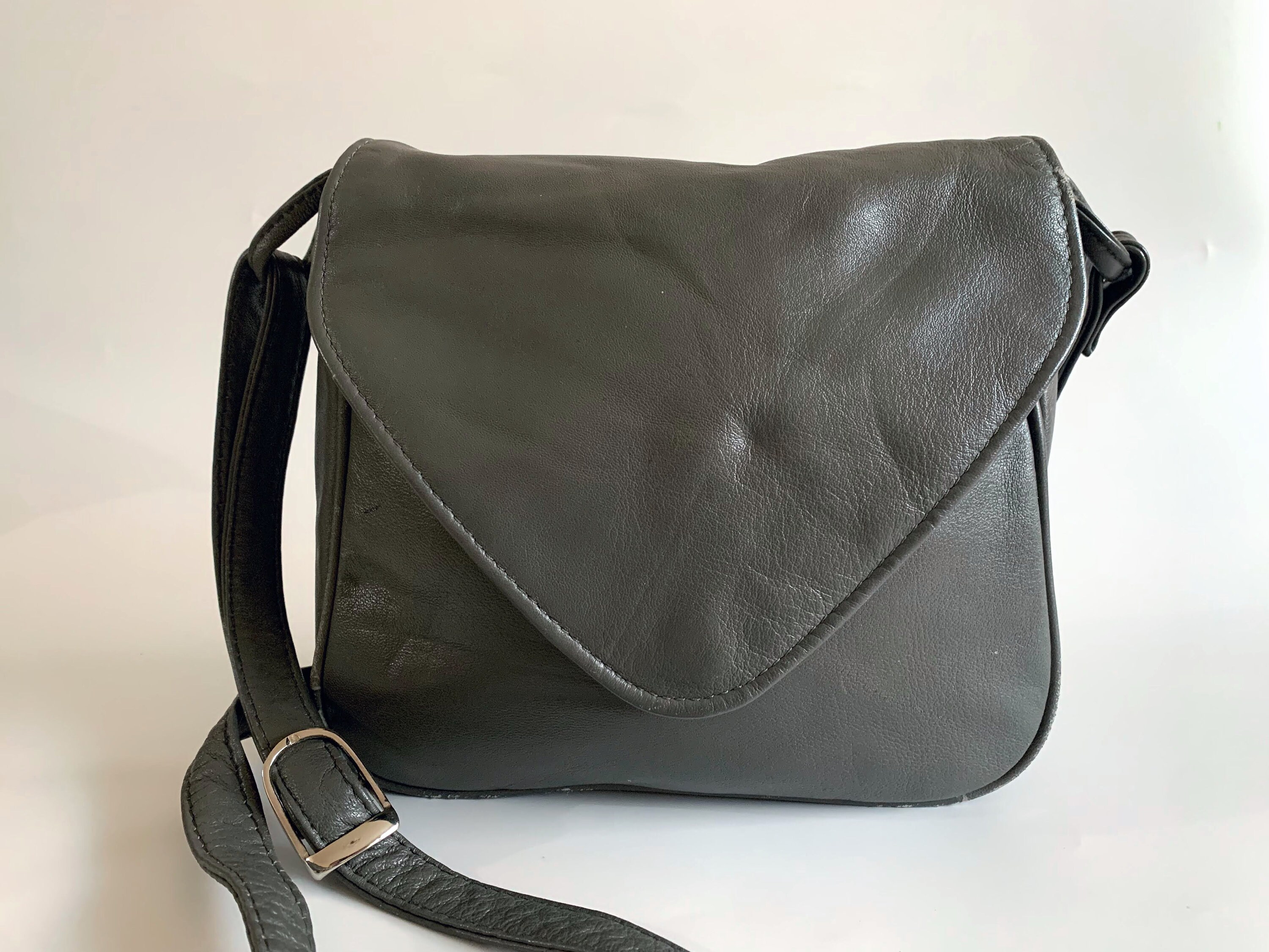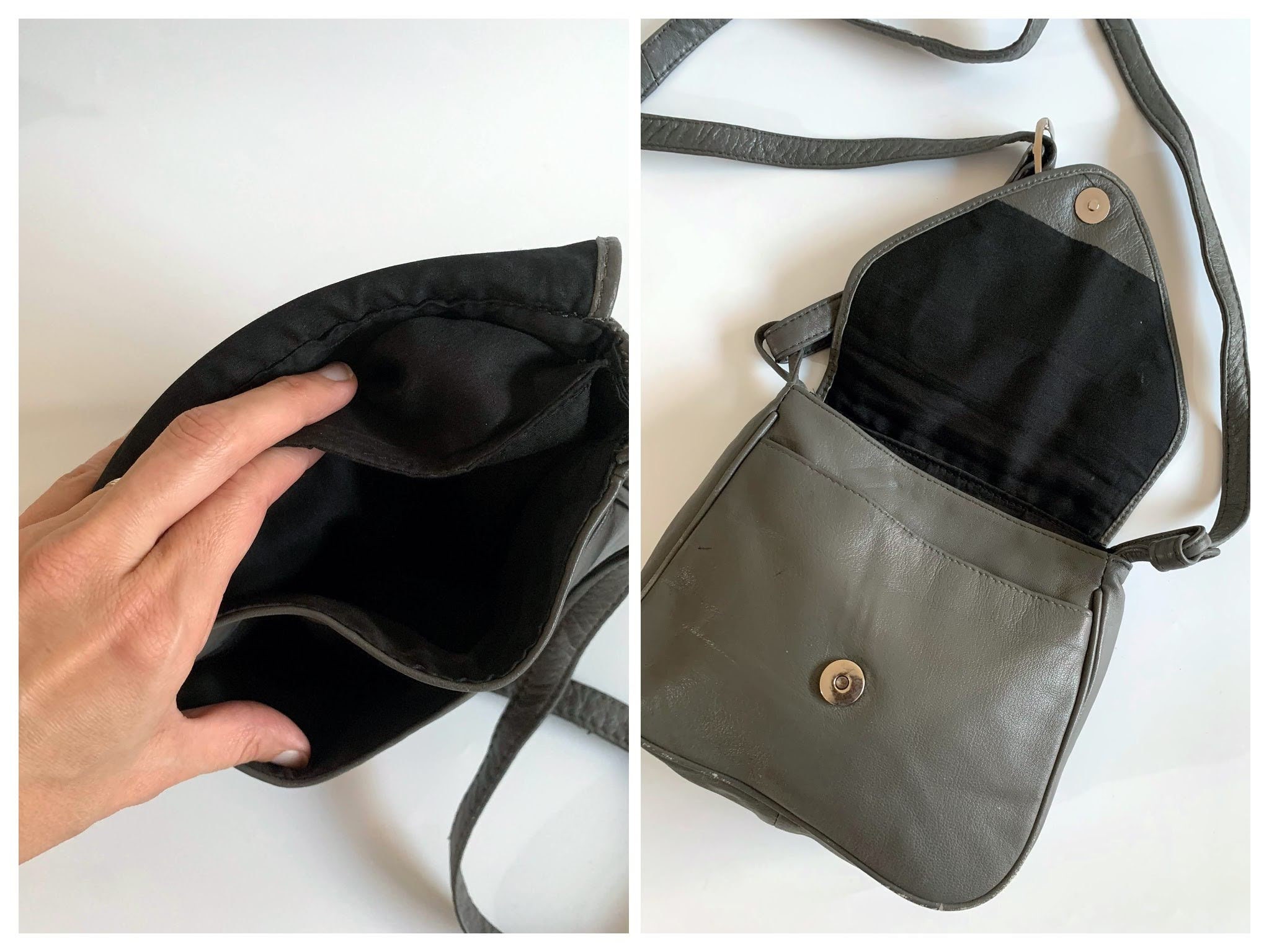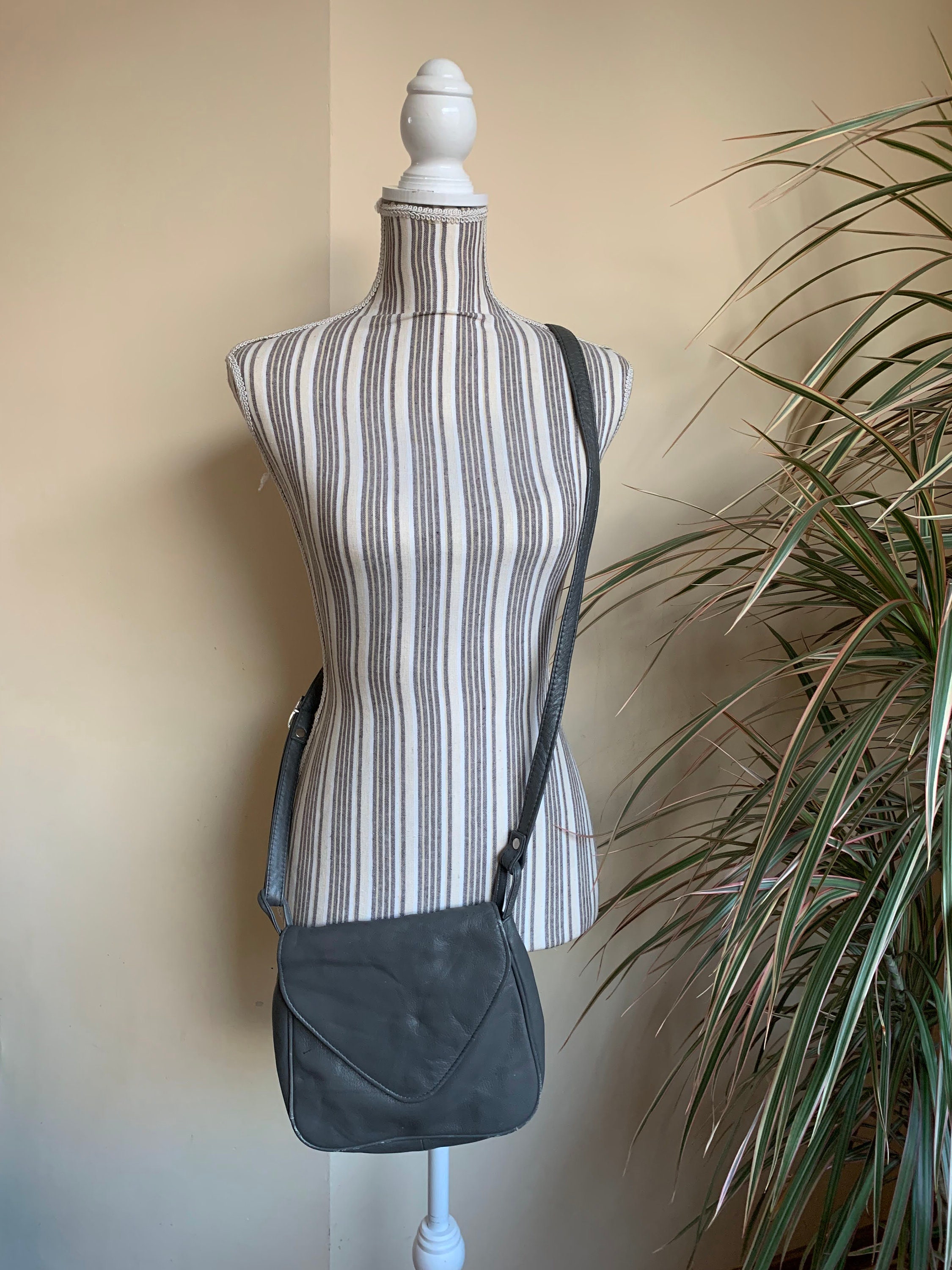 This is a vintage soft leather small crossbody bag made of genuine leather in grey color. This soft leather bag has magnetic closure and adjustable shoulder strap which allows you to wear it as a shoulder hobo or as a crossbody bag. This vintage 90s leather purse has a flapover part and it closes with magnetic closure. The interior is lined in black cotton fabric. There are three compartments and one pocket with zip closure at the back. Great purse to wear everyday. It is made of soft lightweight leather and it can be adjusted to be enjoyed in multiple ways.