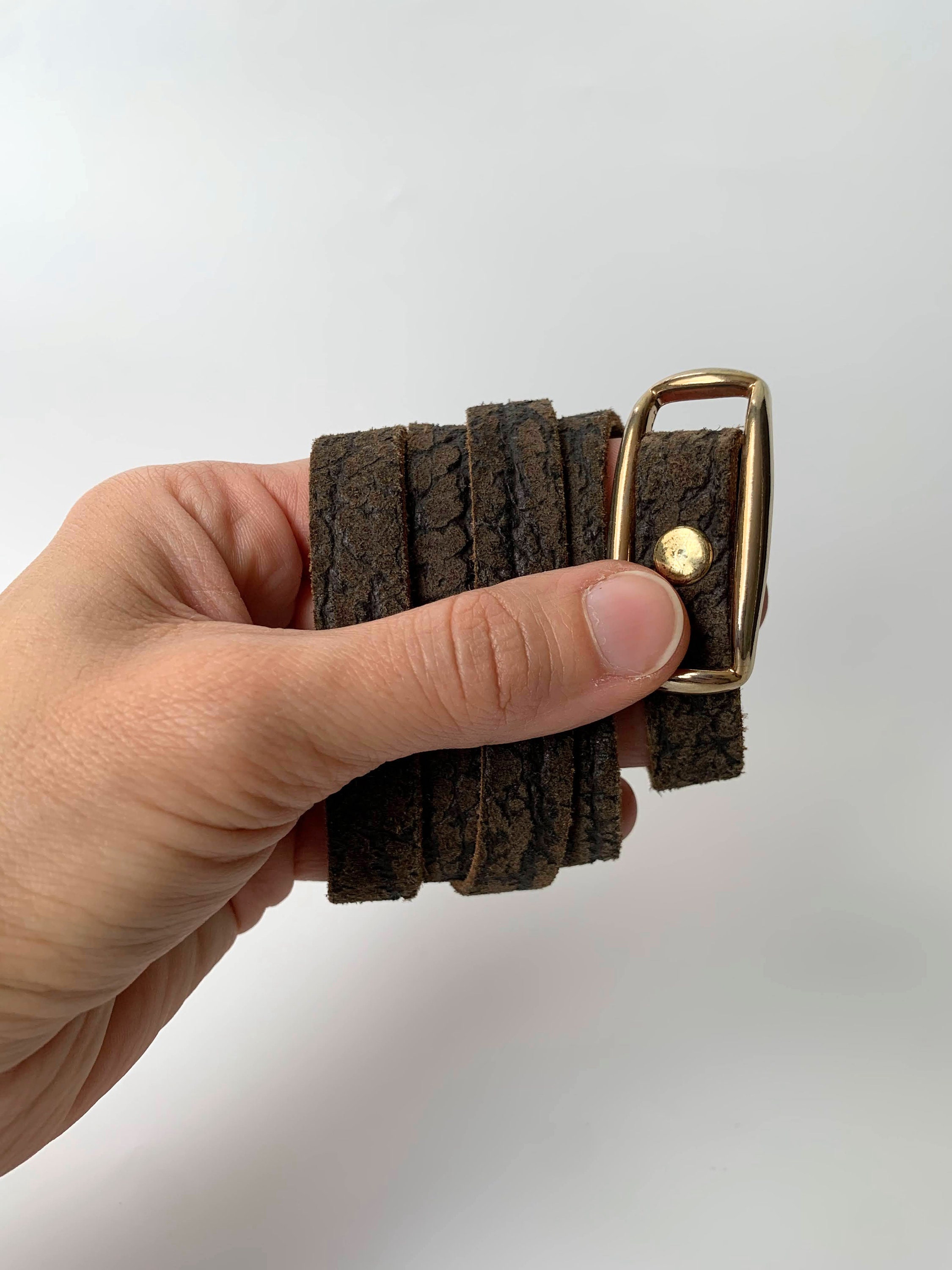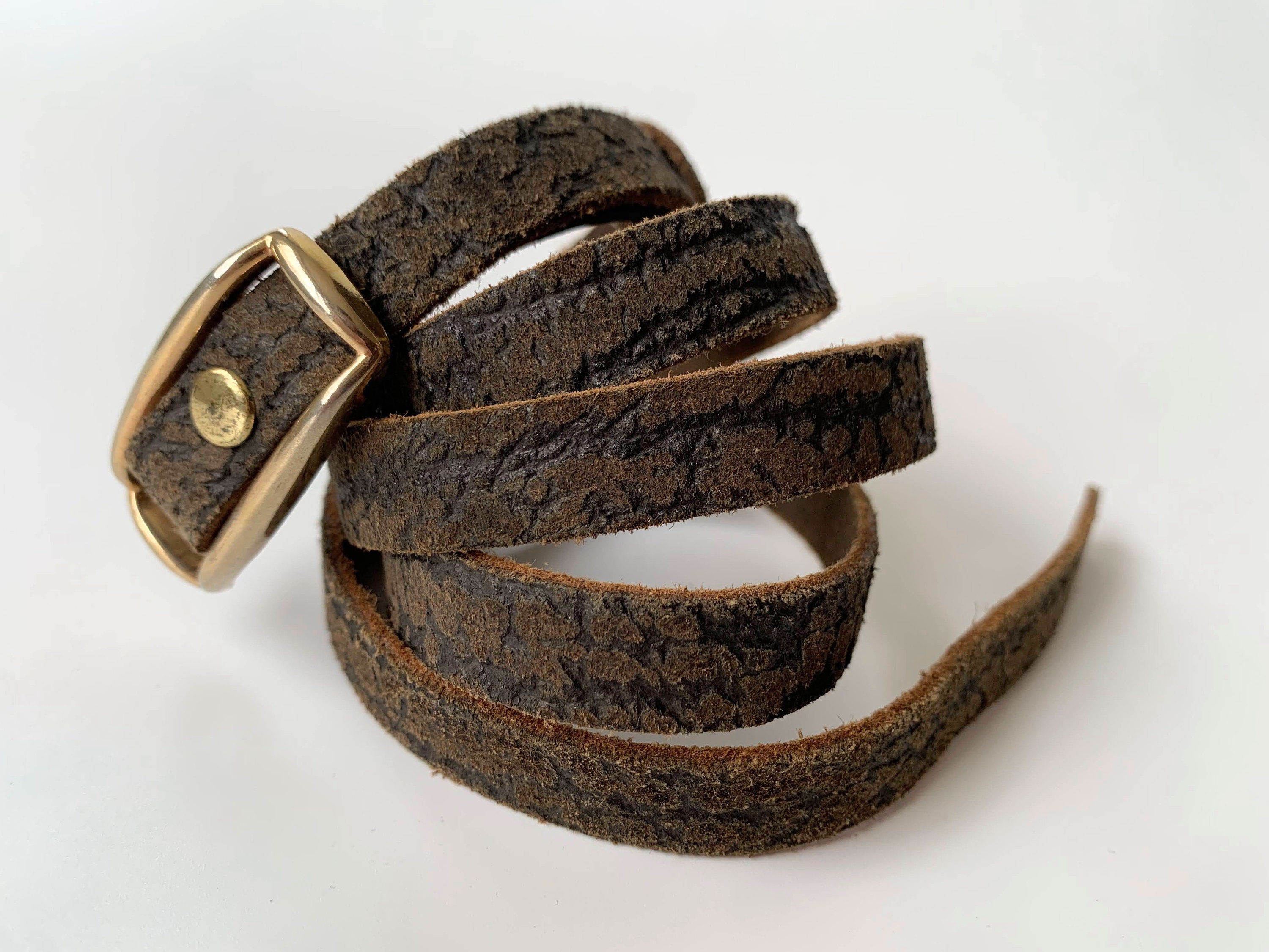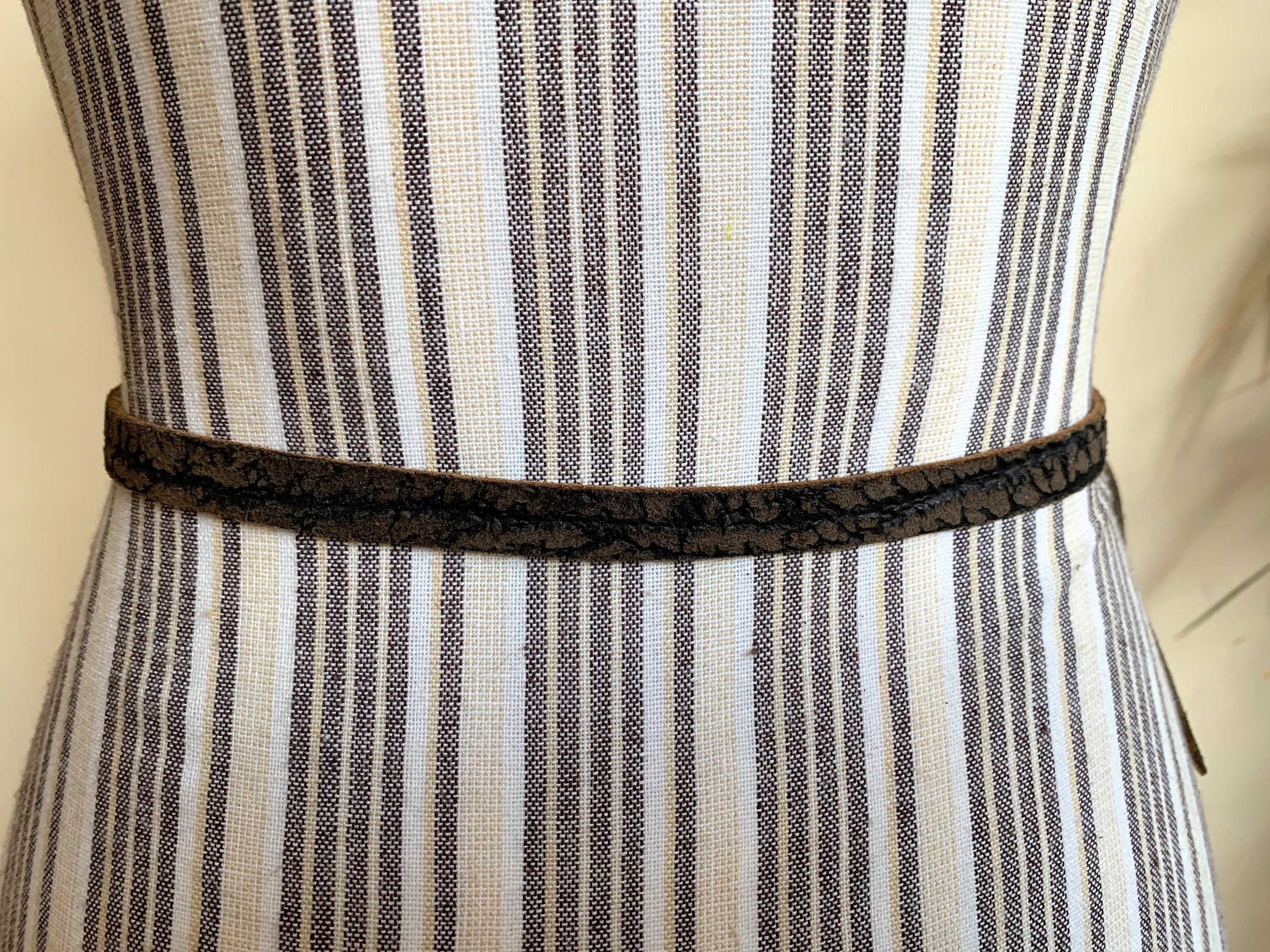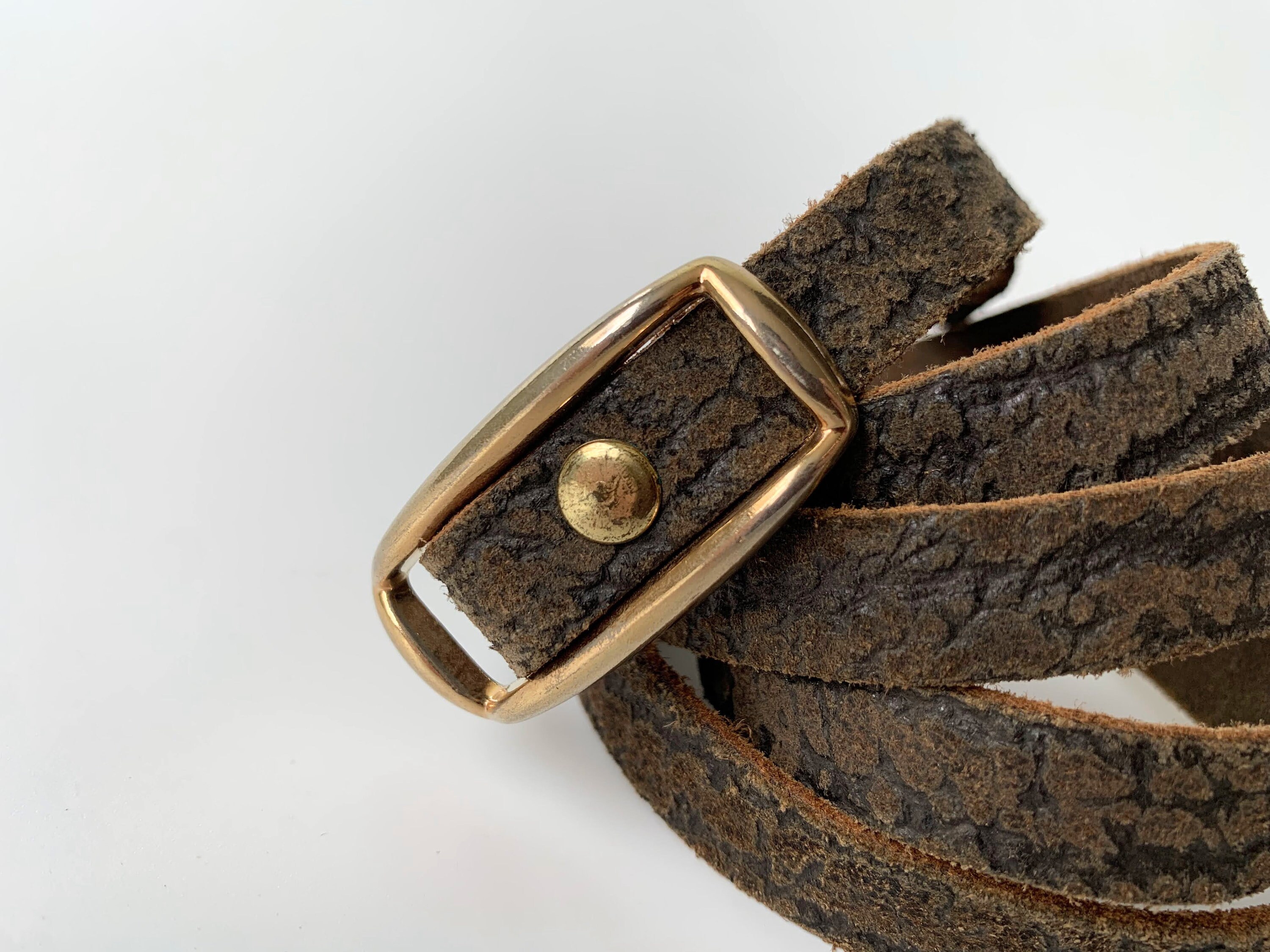 This is a vintage 90s olive green waist belt for women. This slim leather belt is made of genuine suede leather in dark moss green color with gold tone slim buckle. Beacause of the texture of the leather, the belt has shades of olive green and brown. The belt can adjust up to approx 35.4" / 90 cm. The total length of the belt strap is 37.8" / 96 cm. This skinny leather belt is just 1/2 " wide / 1.2 cm.
