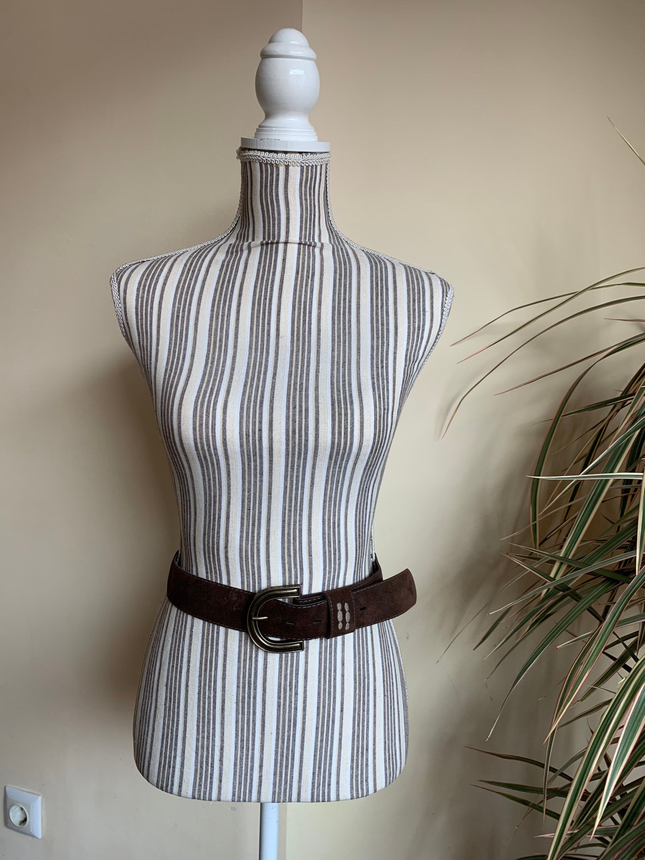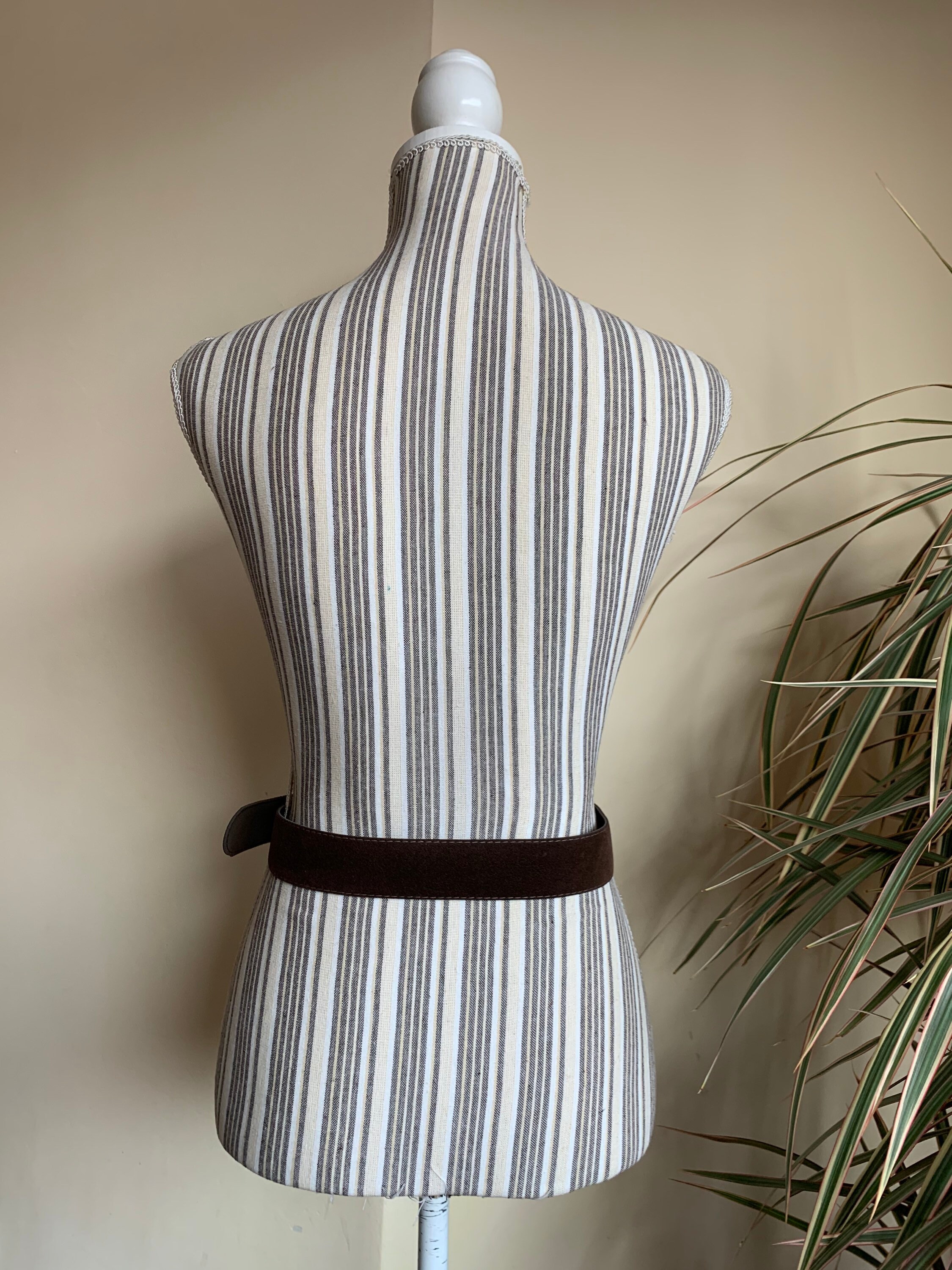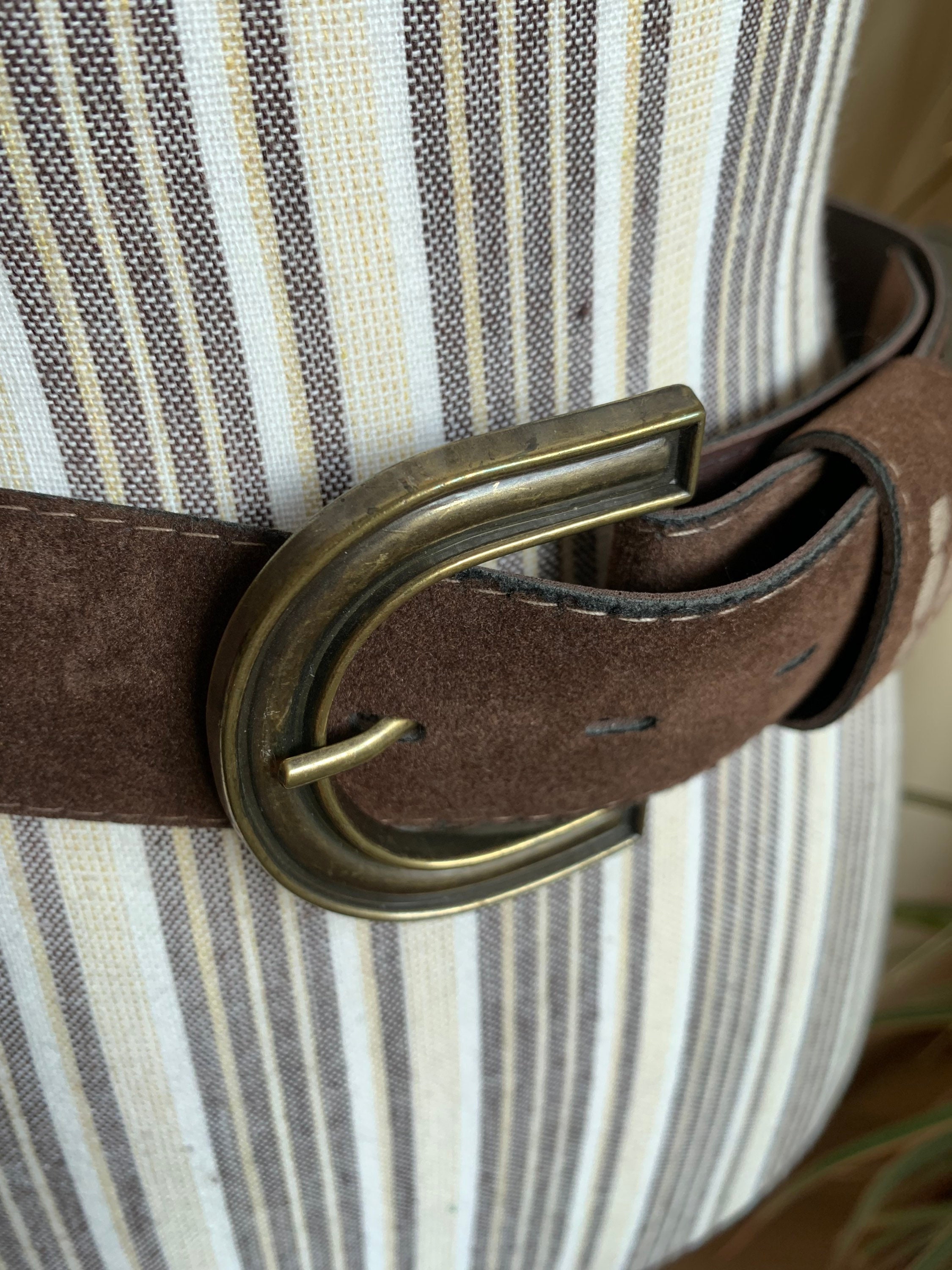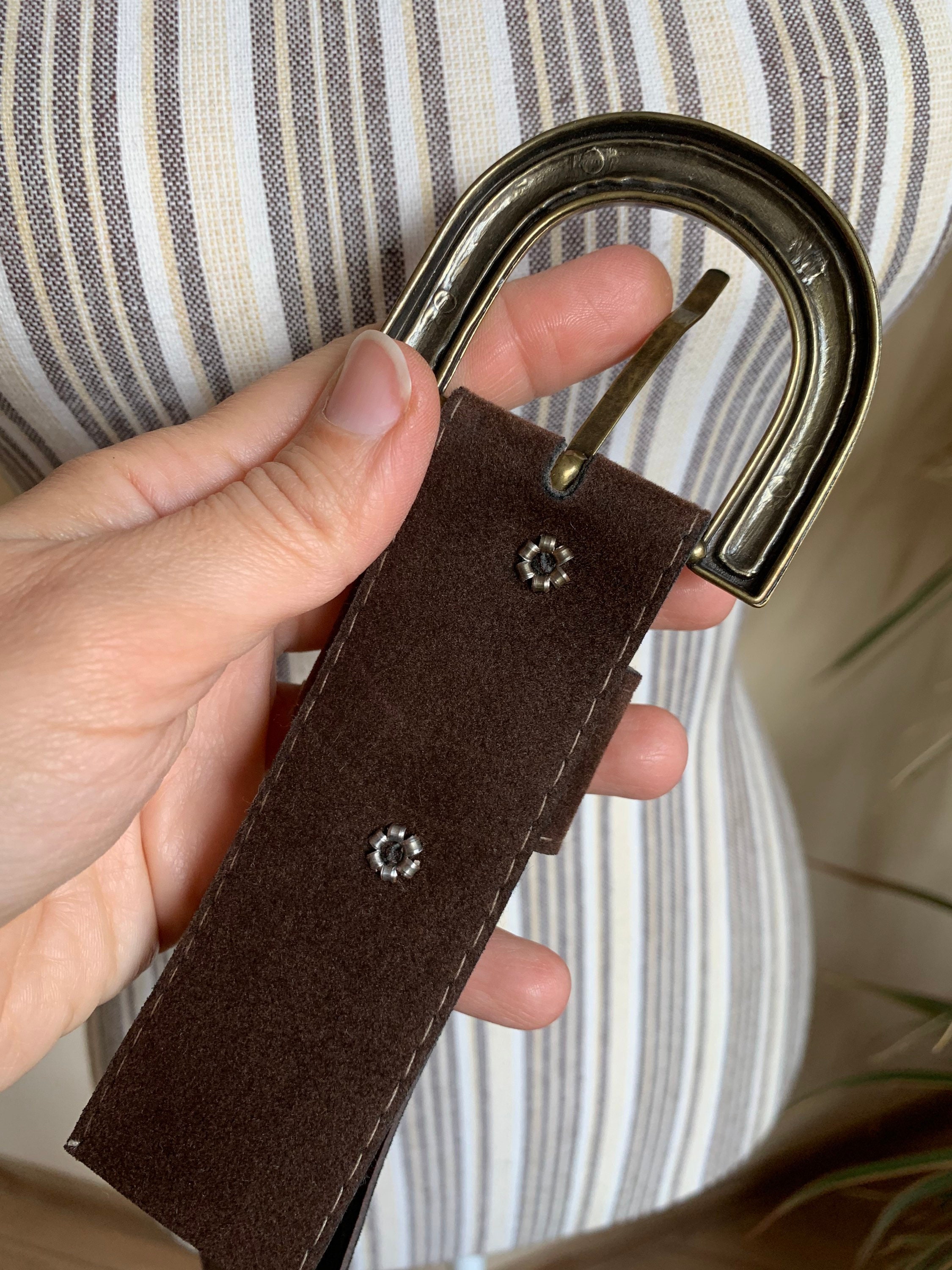 This is vintage 80s dark brown faux suede belt for women with D ring buckle. This wide leather belt is in dark brown color. This velour bohemian belt is ideal for your boho chic outfits. It is made of faux suede with fax leather lining and brass buckle. This vintage waist belt can adjust from 27.6" - 31.9" / 70 cm to 81 cm /. It is 1.6" / 4 cm wide.