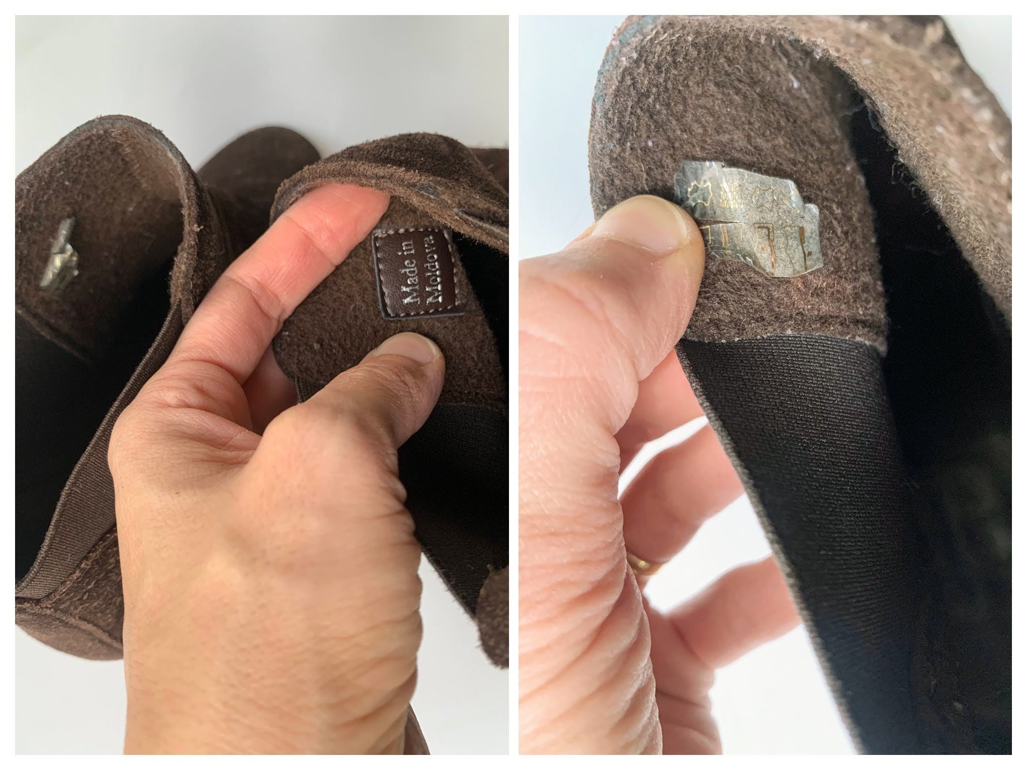 Material: genuine suede leather, rubber soles, leather insoles, wool felt lining