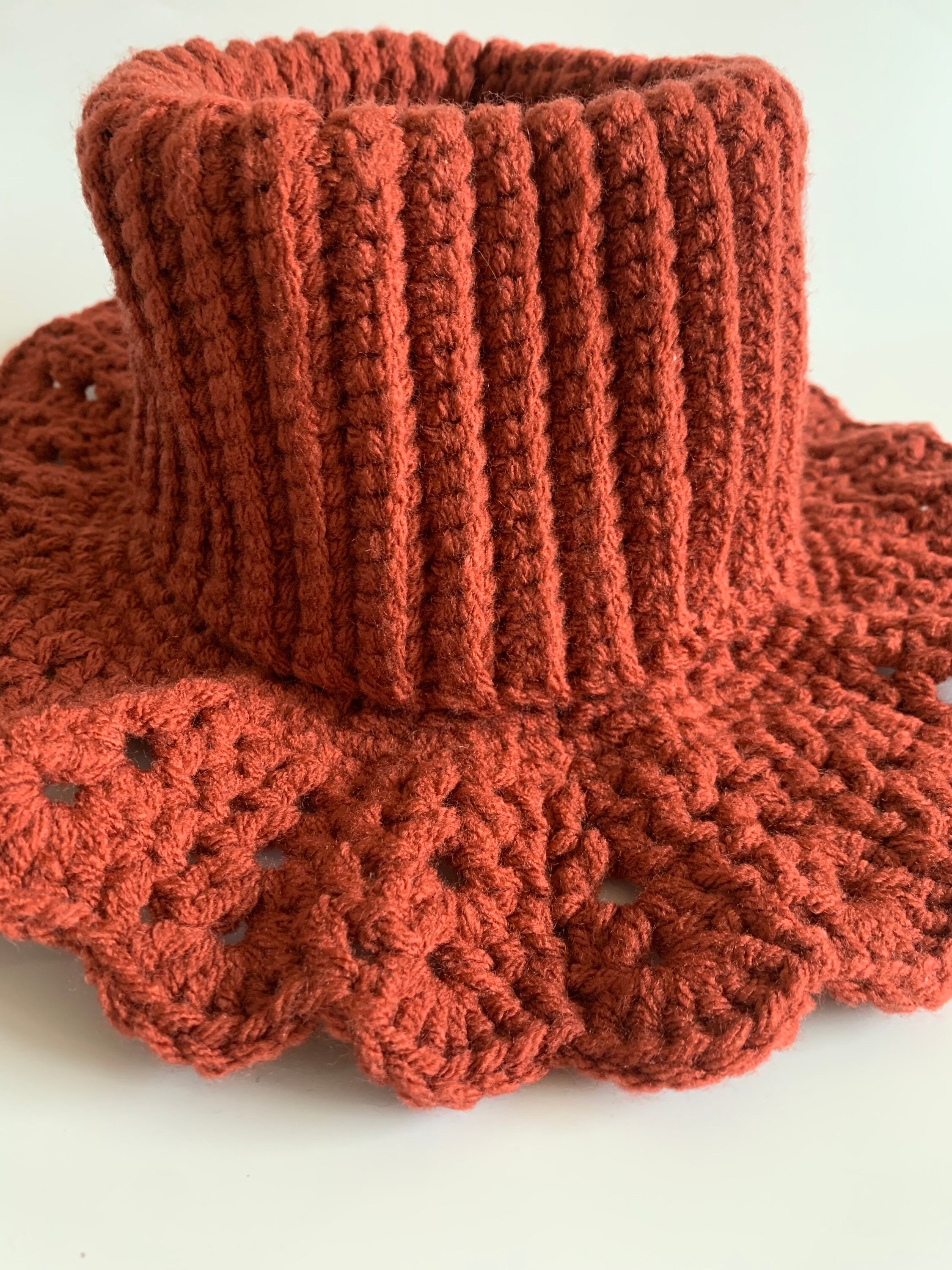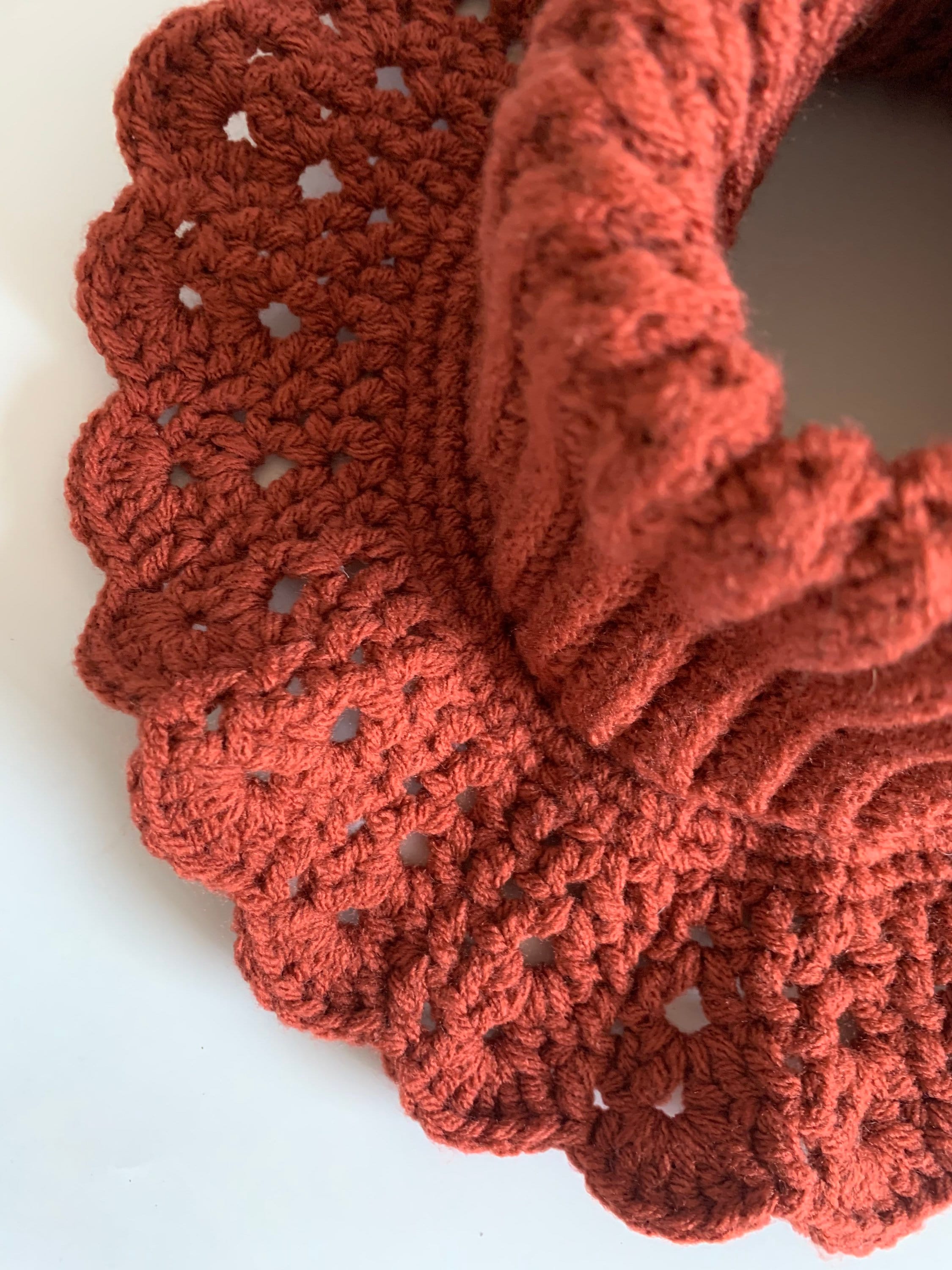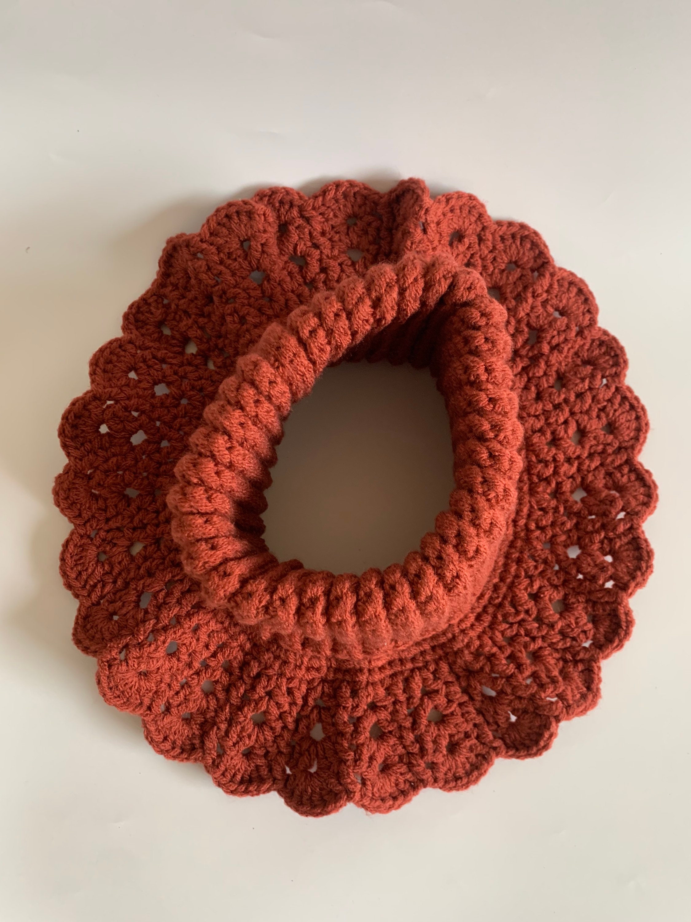 This is a beautiful vintage crochet neck collar in beautiful burnt orange collor with lace detailing. This adorable chunky crochet turtleneck scarf is made of soft warn which feels like wool blend, possibly acrylic wool blend. This pullover turtleneck scarf is perfect for the fall or winter season. It will keep you warm and stylish. This crochet cowl will add a pop of boho chic look to your outfits.