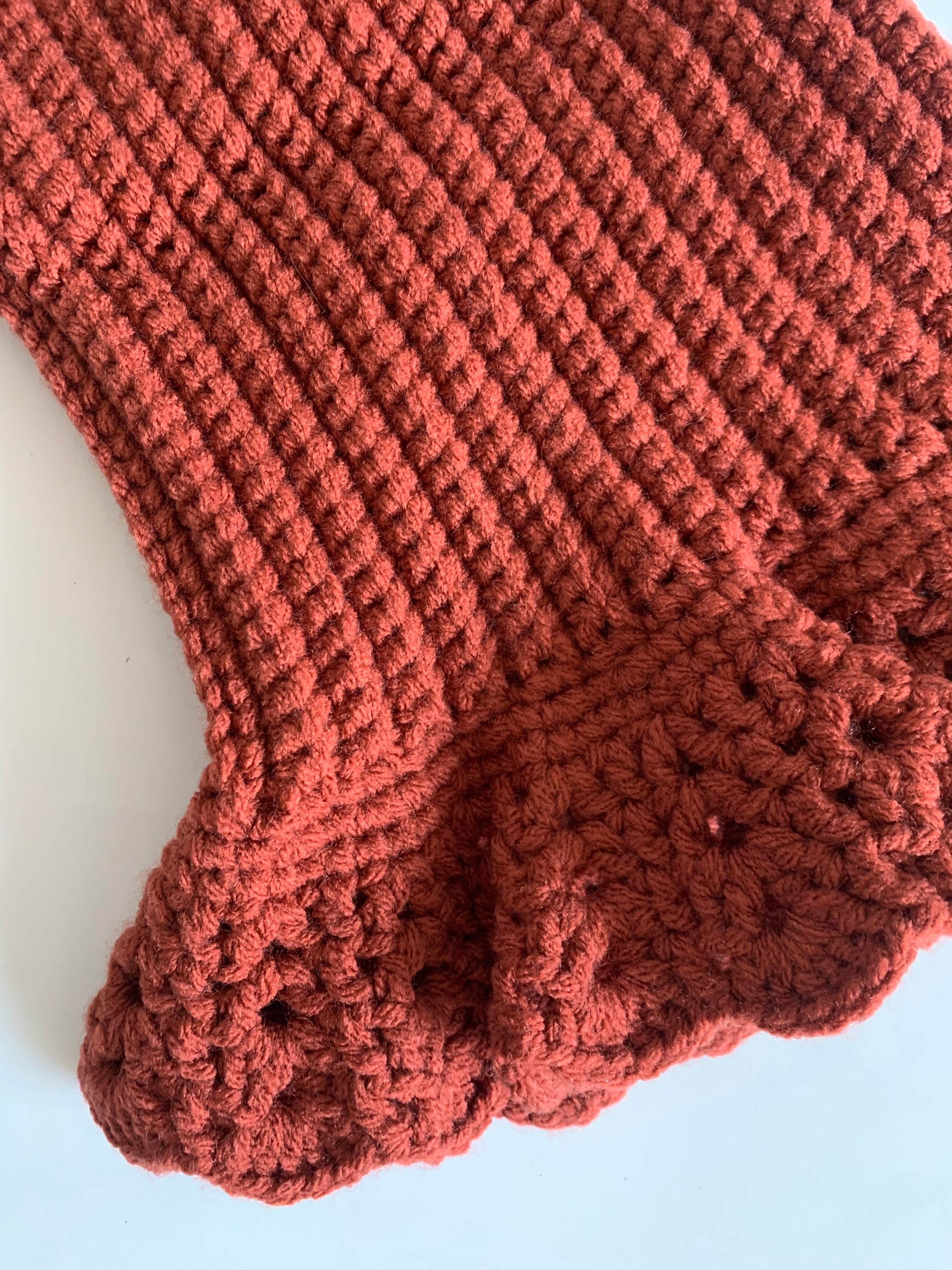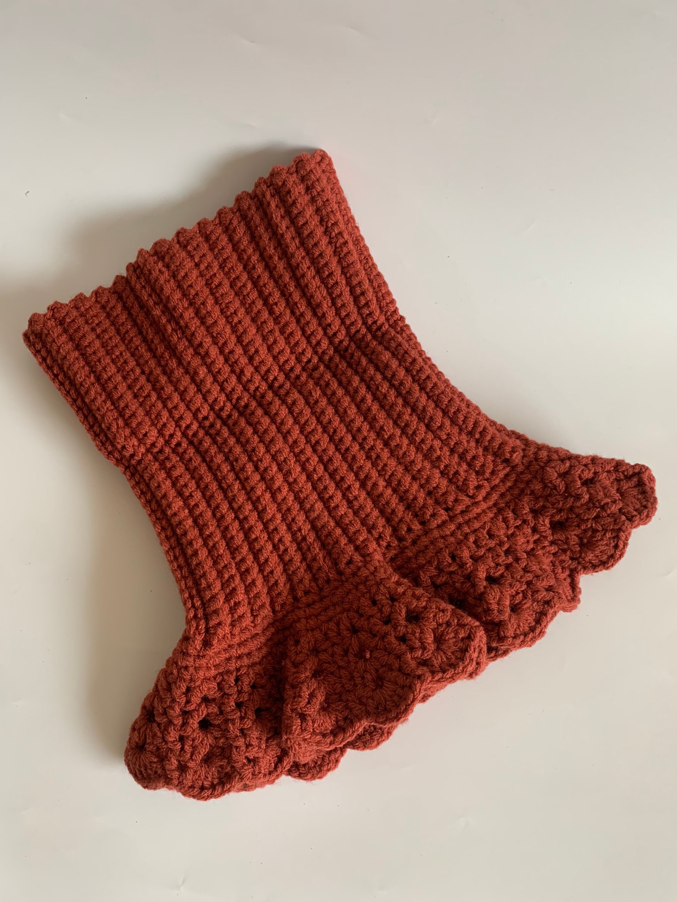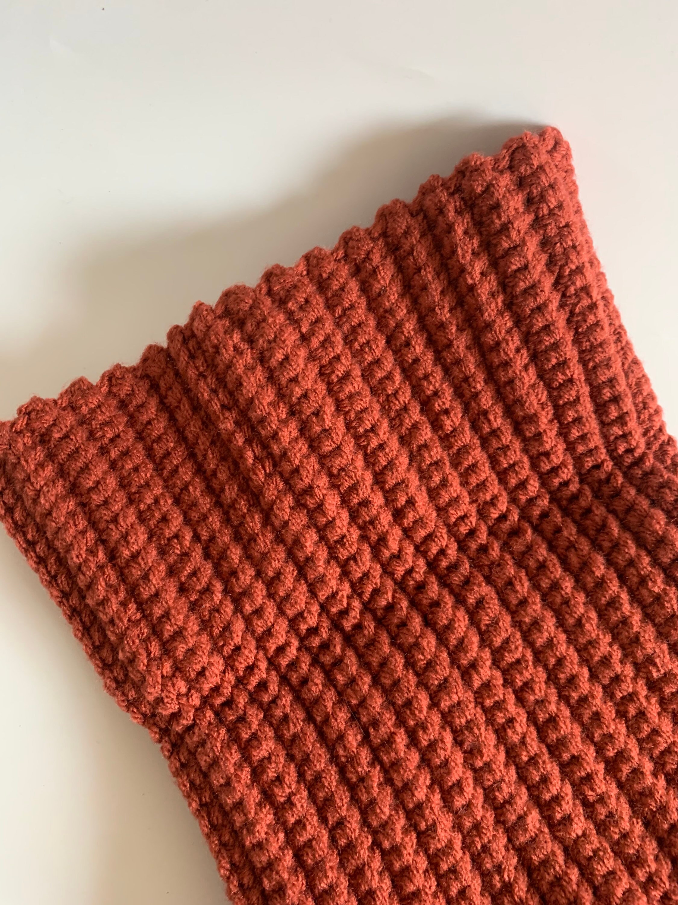 This is a beautiful vintage crochet neck collar in beautiful burnt orange collor with lace detailing. This adorable chunky crochet turtleneck scarf is made of soft warn which feels like wool blend, possibly acrylic wool blend. This pullover turtleneck scarf is perfect for the fall or winter season. It will keep you warm and stylish. This crochet cowl will add a pop of boho chic look to your outfits.