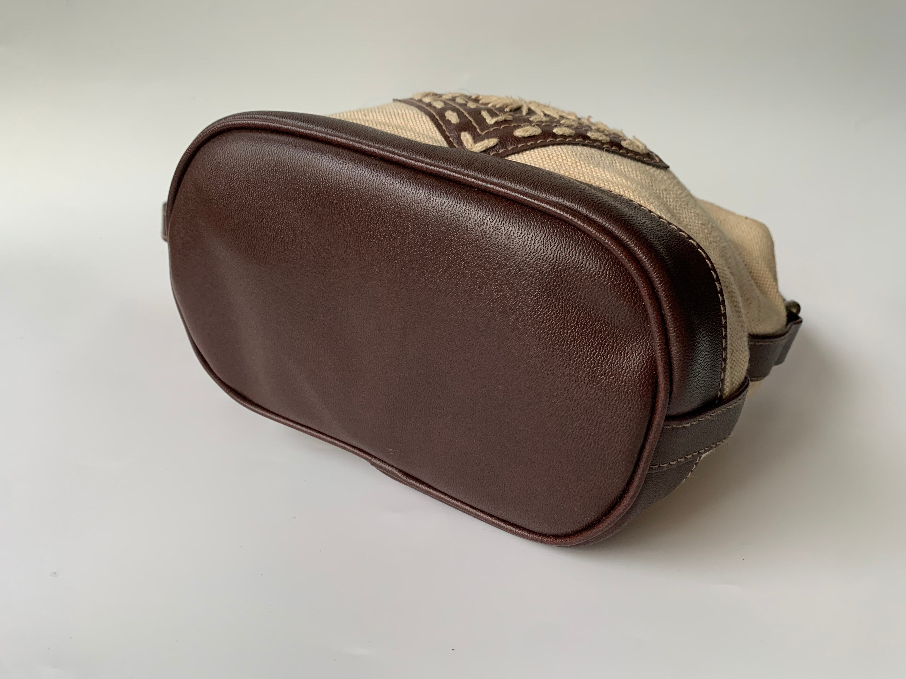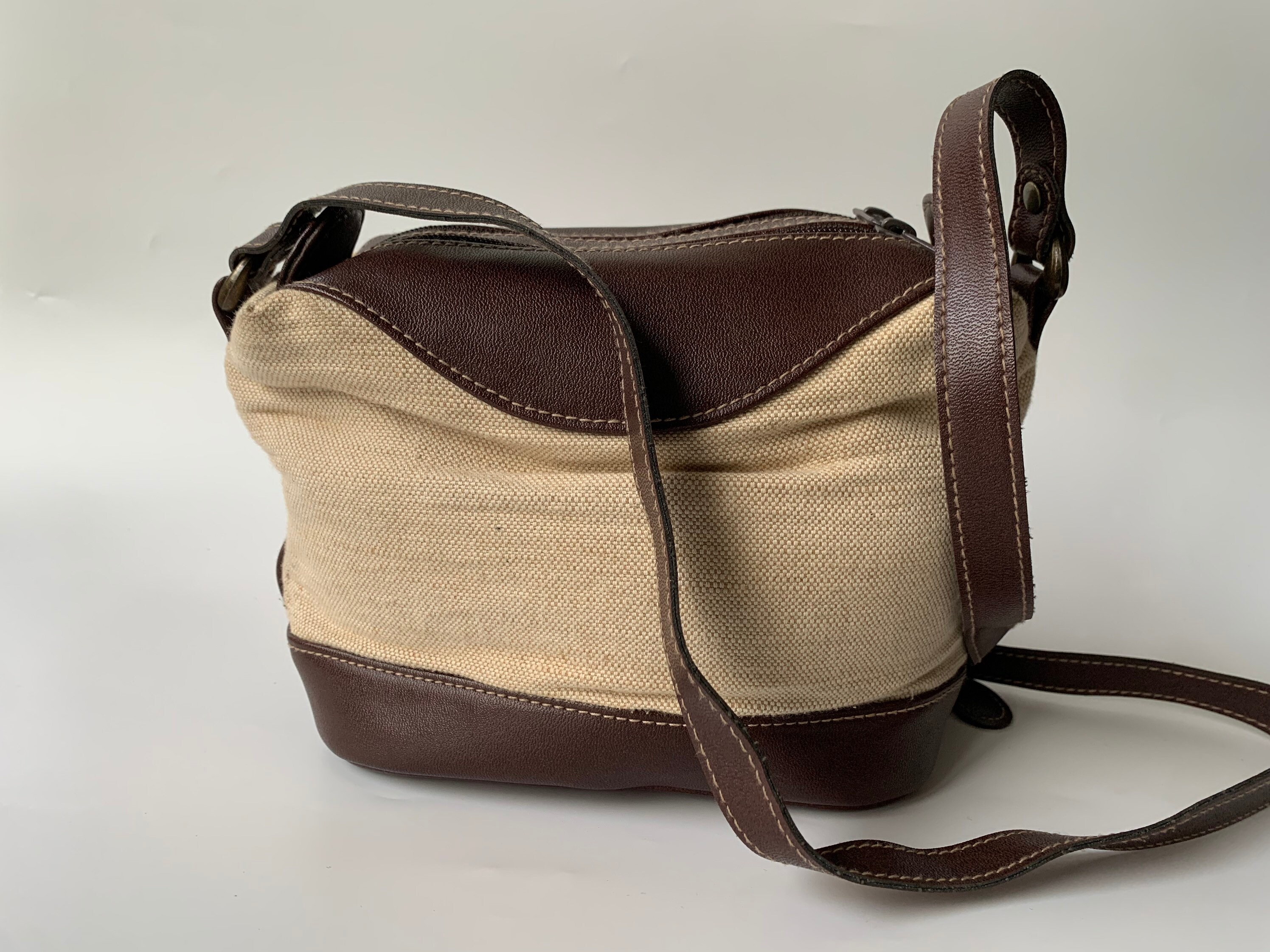 Condition: This small crossbody bag is in beautiful vintage condition with minor signs of wear. The only thing I could spot is some darkening around the edges of the beige canvas fabric. Overall beautifully preserved.
