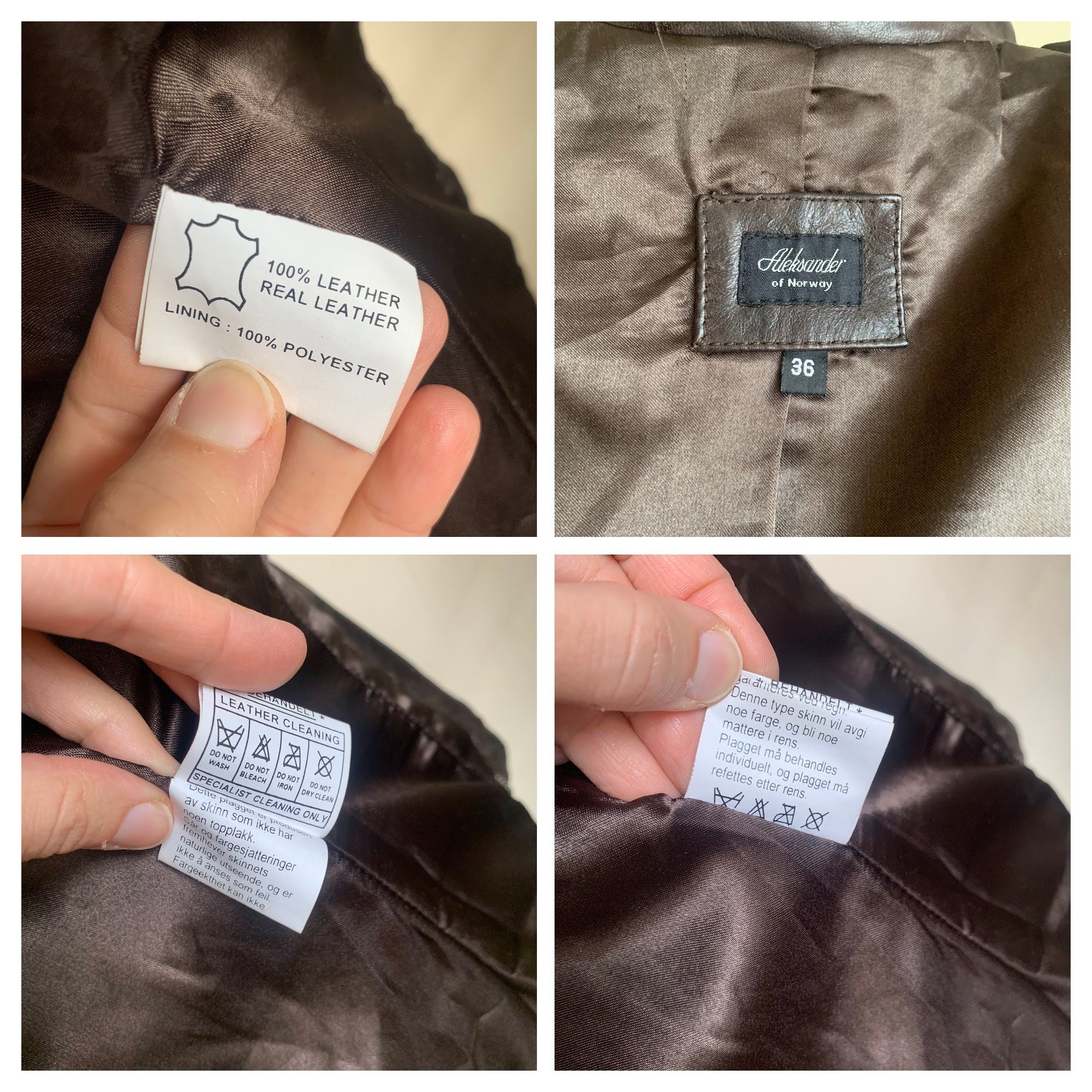 Condition: This bown leather jacket was much loved, the leather has become softer with the wear. It is well worn and has a distressed look. There are scratches and creases all over the leather surface. There is some fading around the edges. Beautifully aged look.