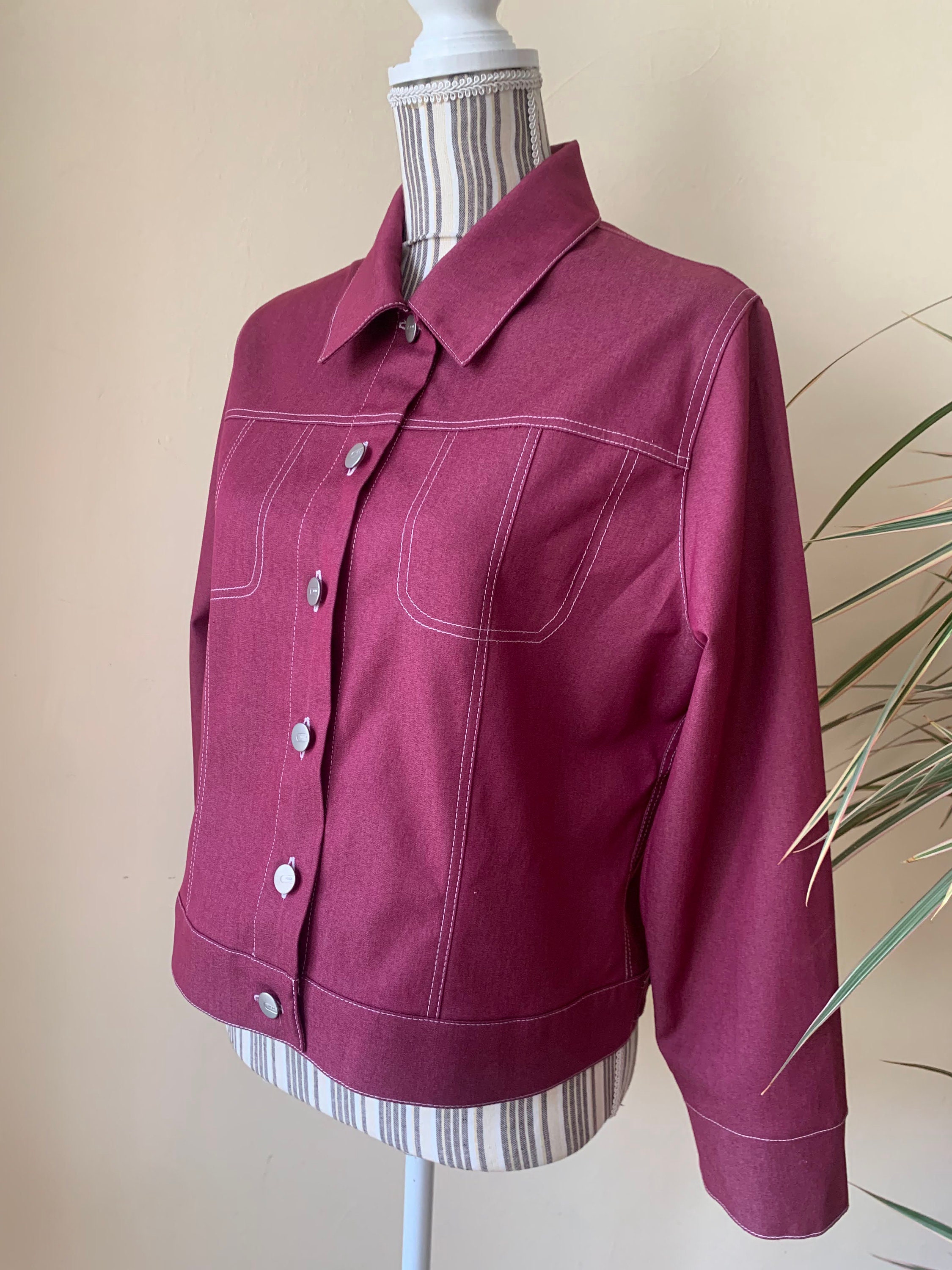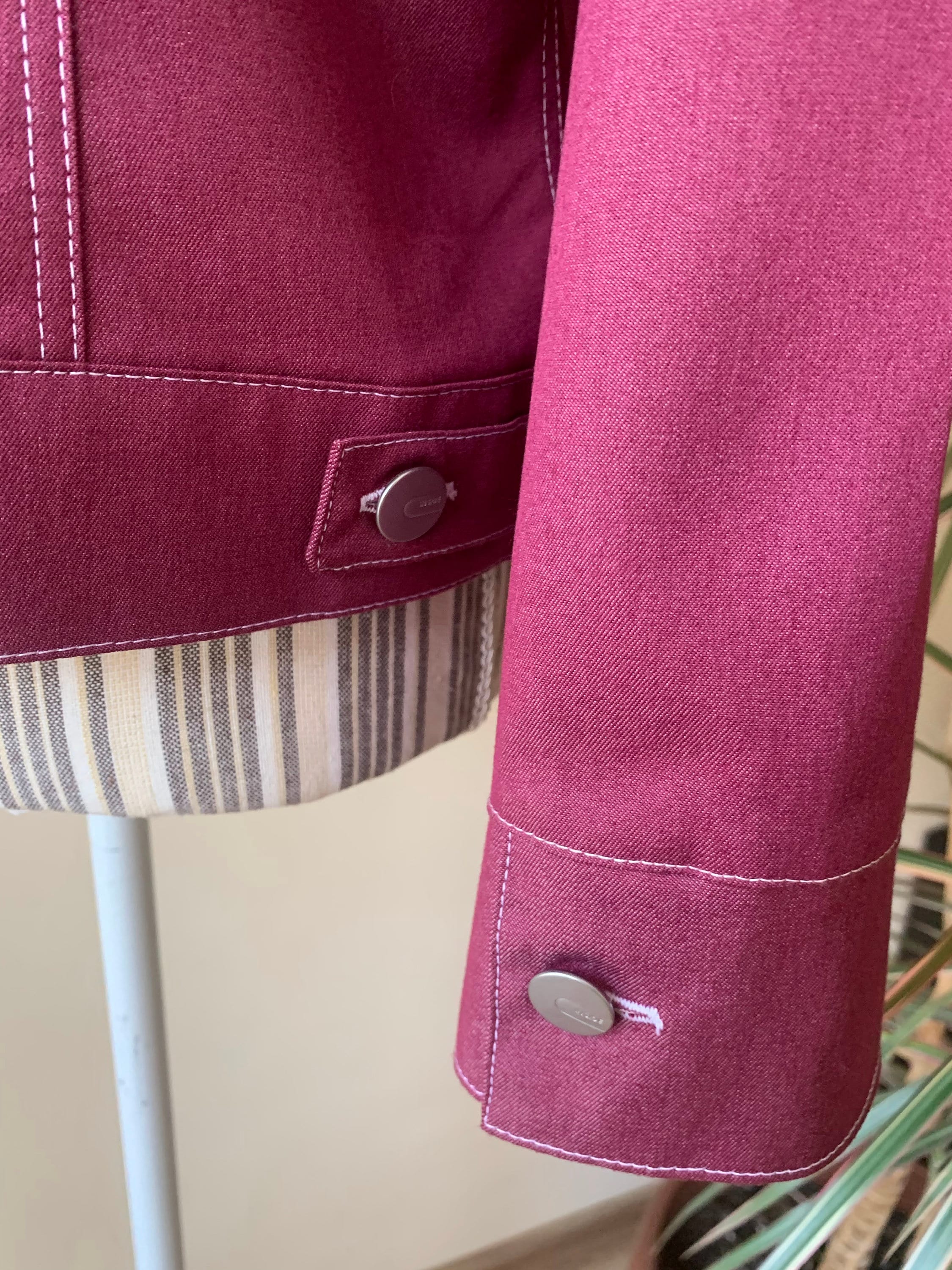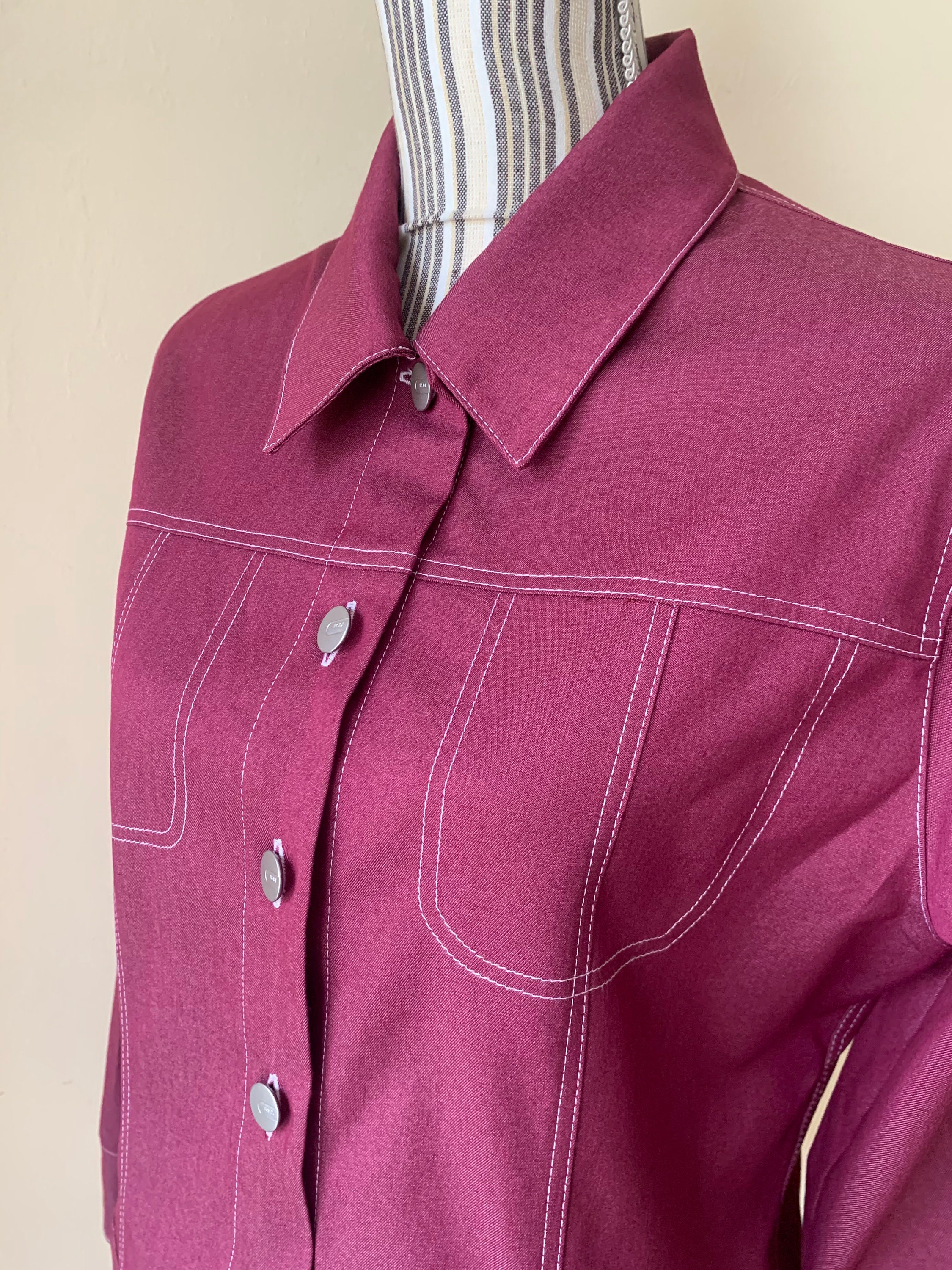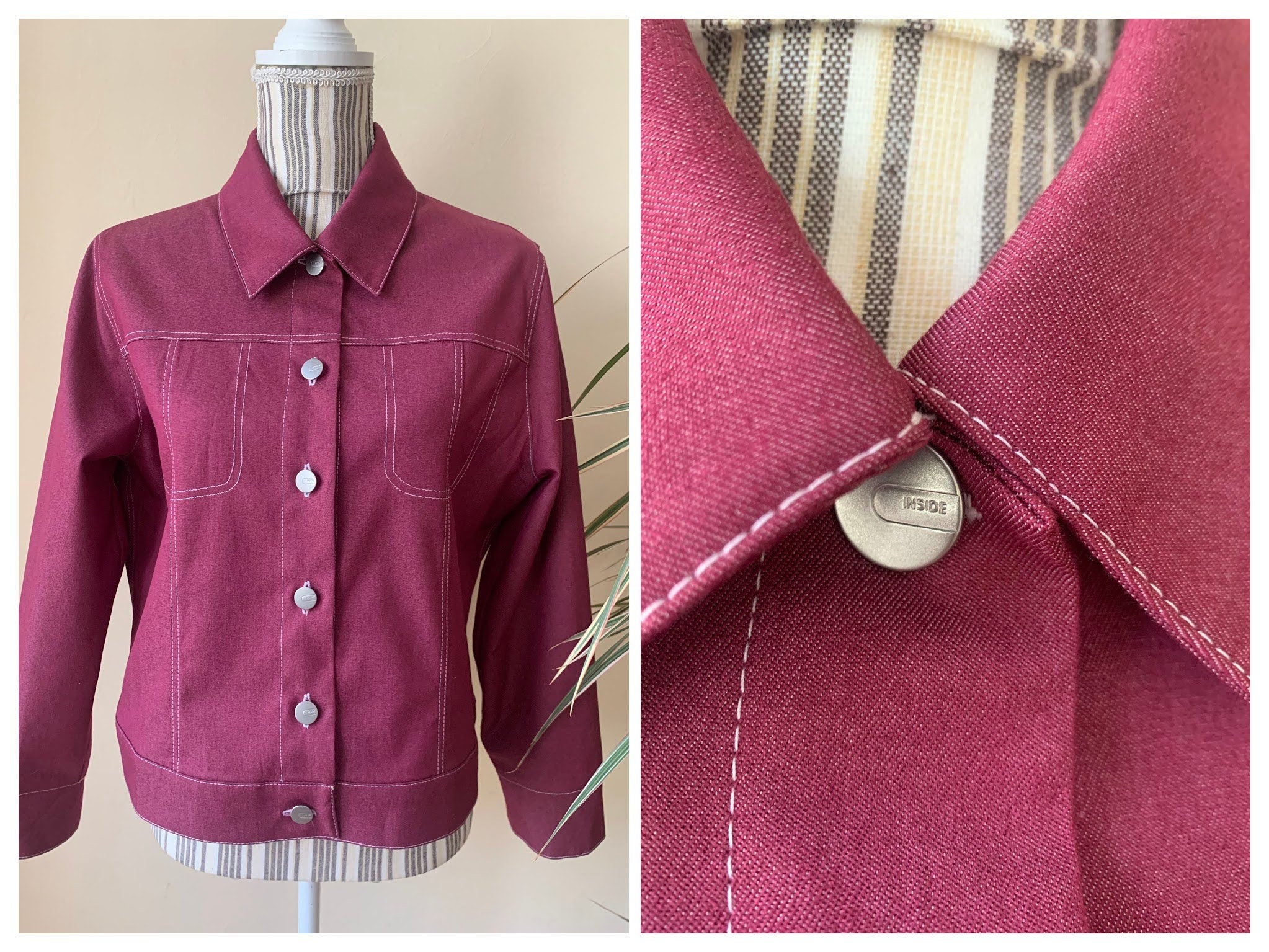 This is s vintage 90s solid color corduroy button front jacket for women. It is made of light polyester blend fabric. This collared button front jacket is quite thin and lightweight. Perfect for the spring/ summer season. It has no lining. This raspberry purple jacket fits like size M. The size marked is D/ NL 38, B / F 40, E 42, I 44, GB 12 . Please check the measurements below.
