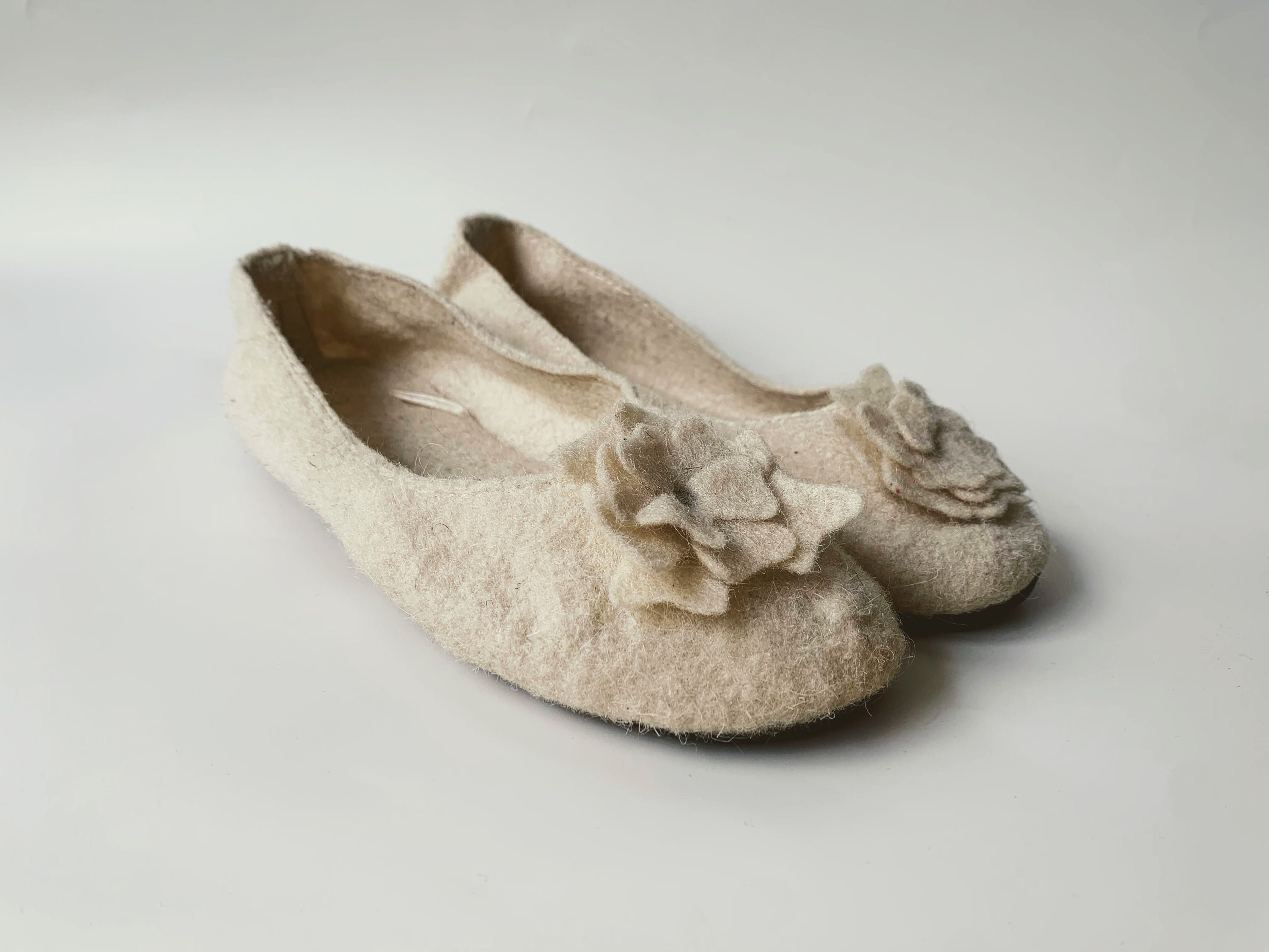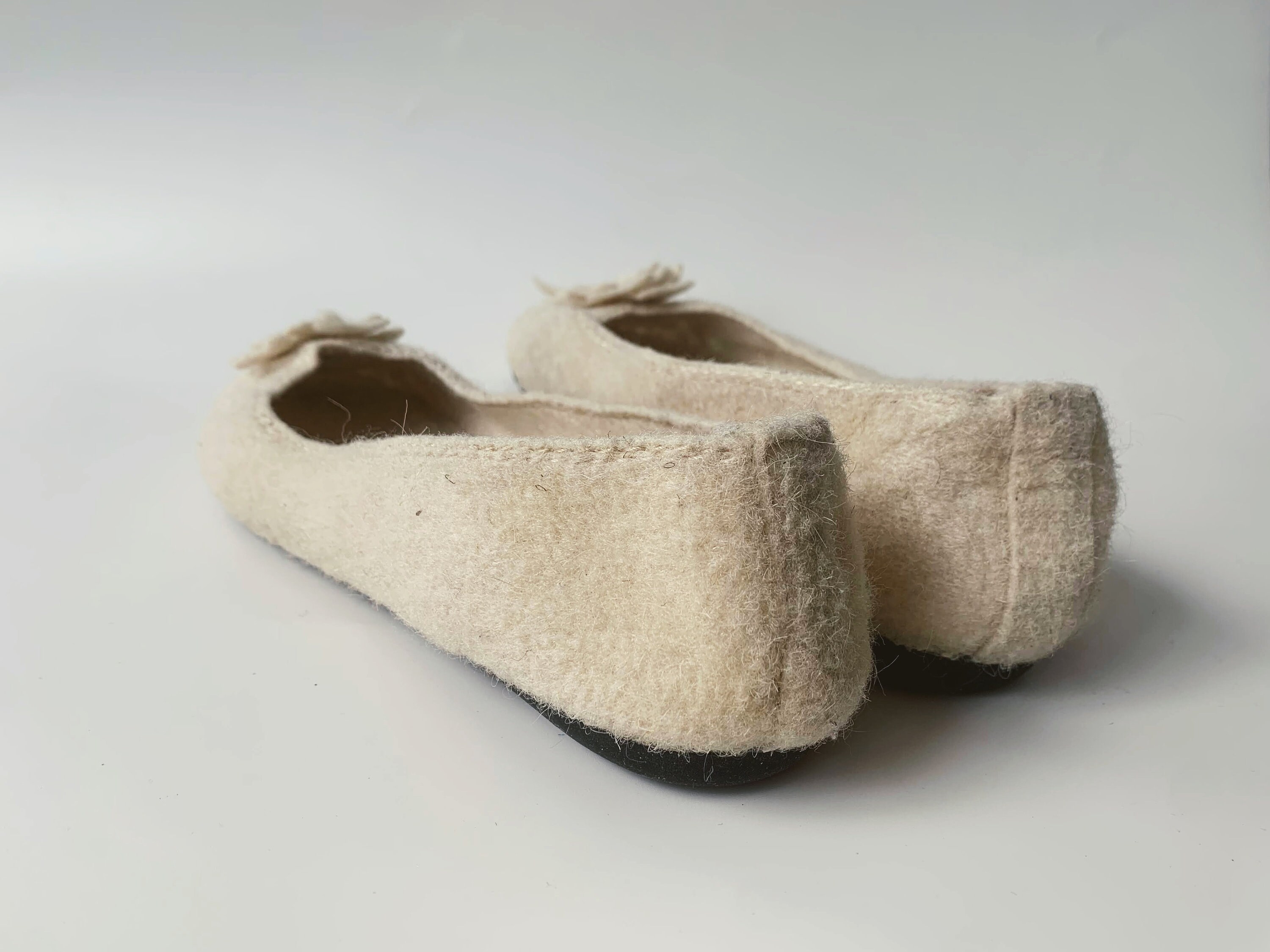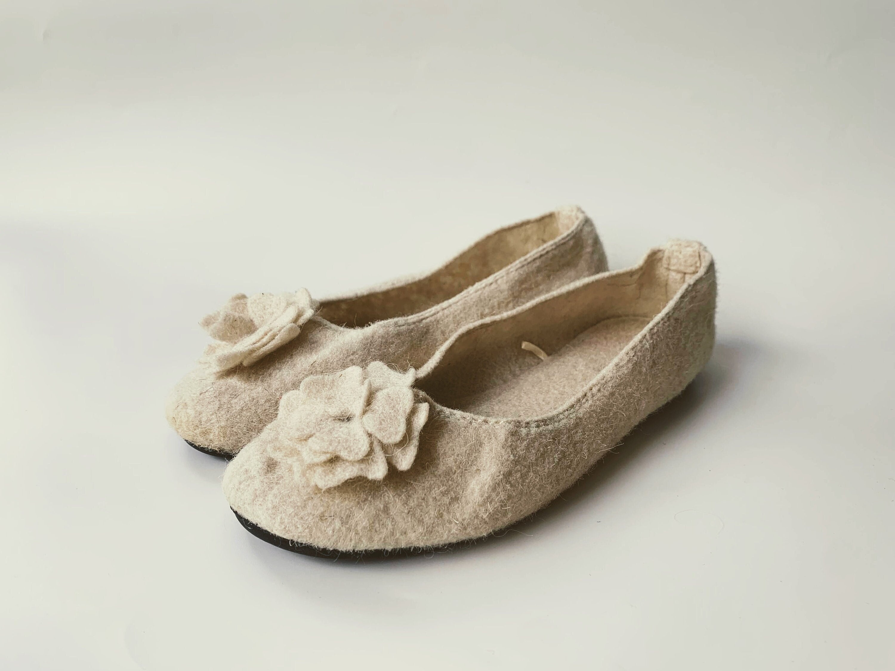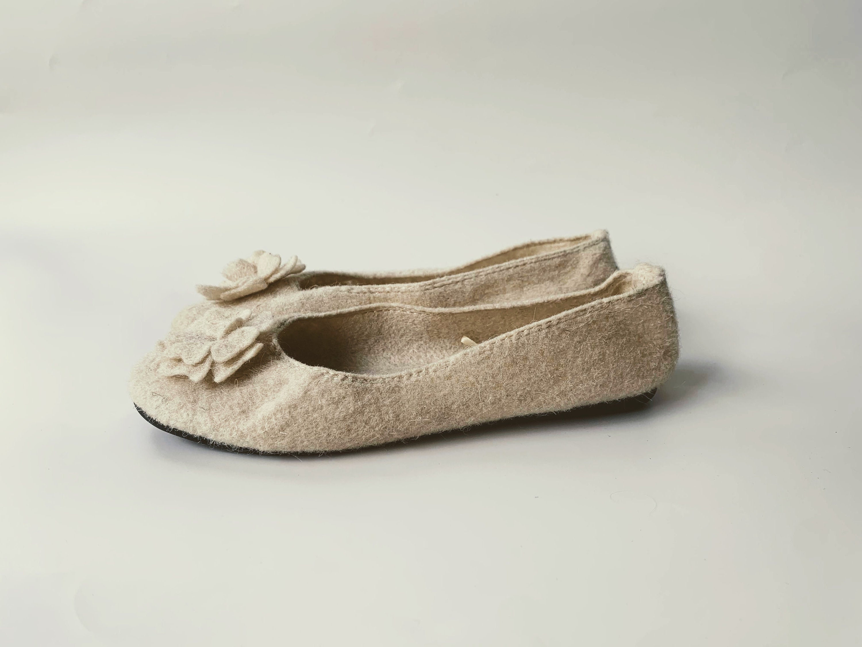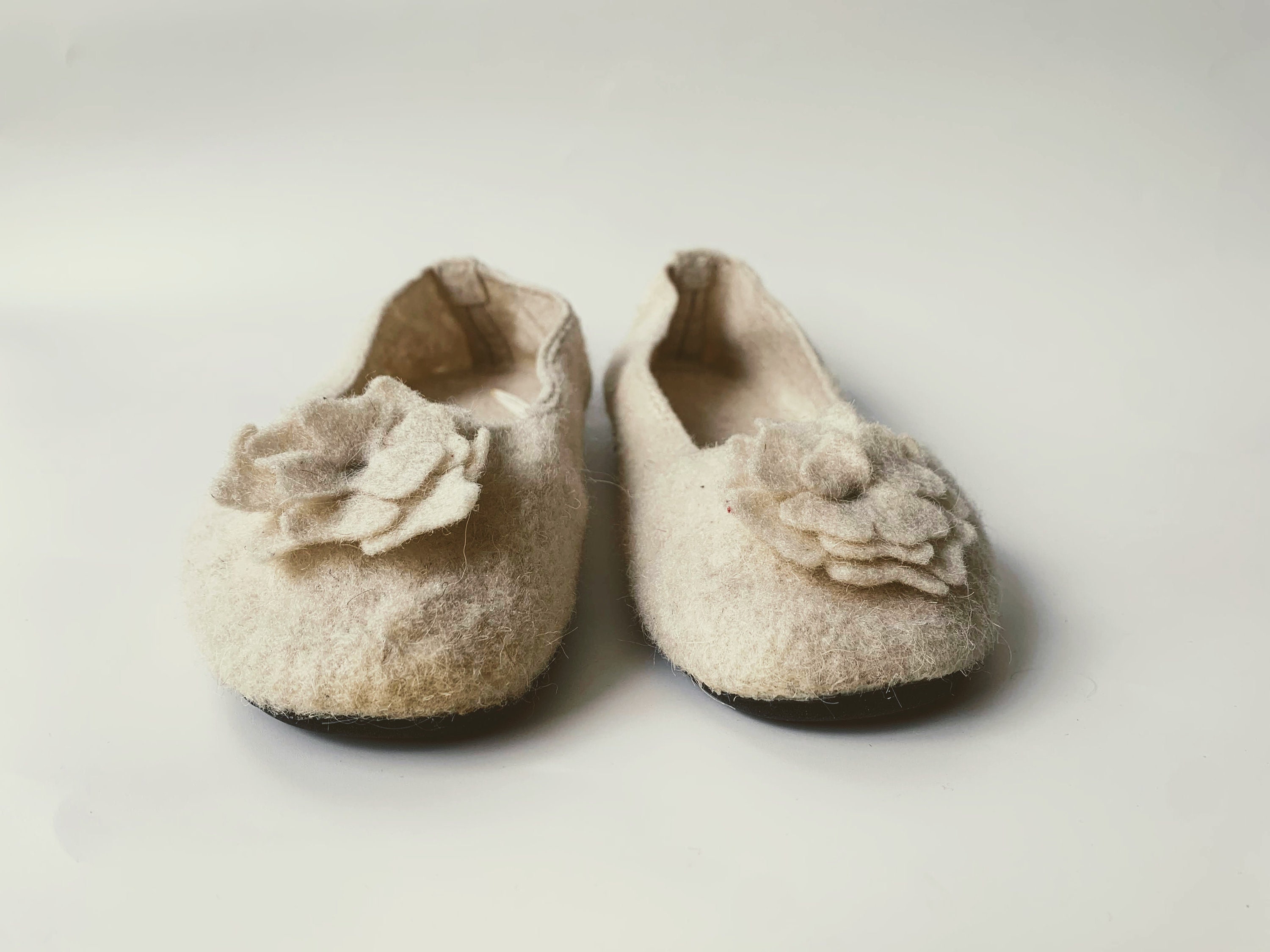 These are beautiful vintage felt wool slippers for women size 38. These zero drop shoes are perfect to wear at home when you relax or do your housekeeping. These flat shoes are super comfy to wear. You can look super cute at home too with these cozy felt wool slippers. These ballerina flats have lovely floral accents. These ballet flats have non slip rubber soles. The size marked is EUR 38, which fits like UK 5, US 7. Please check the measurements below.