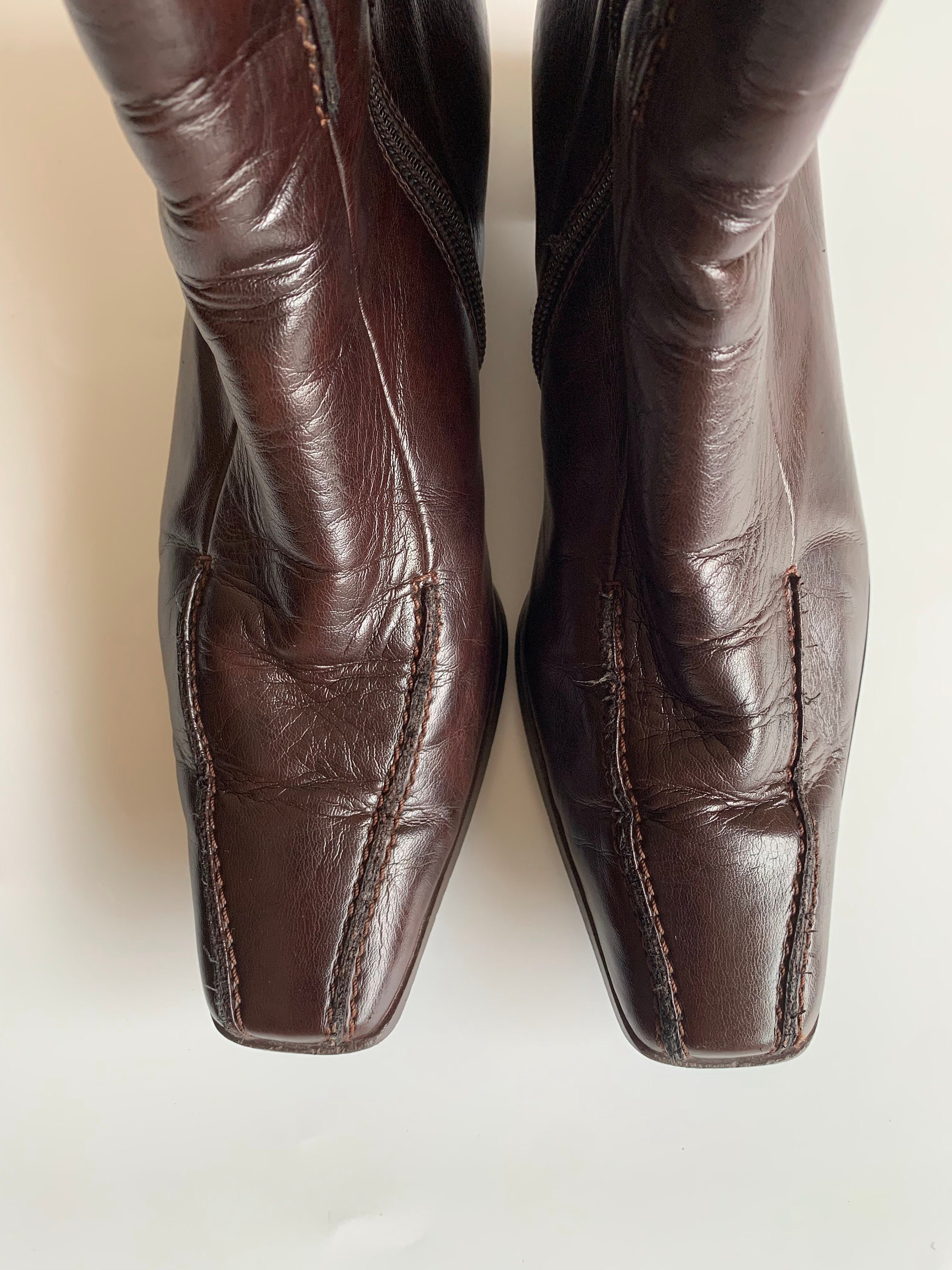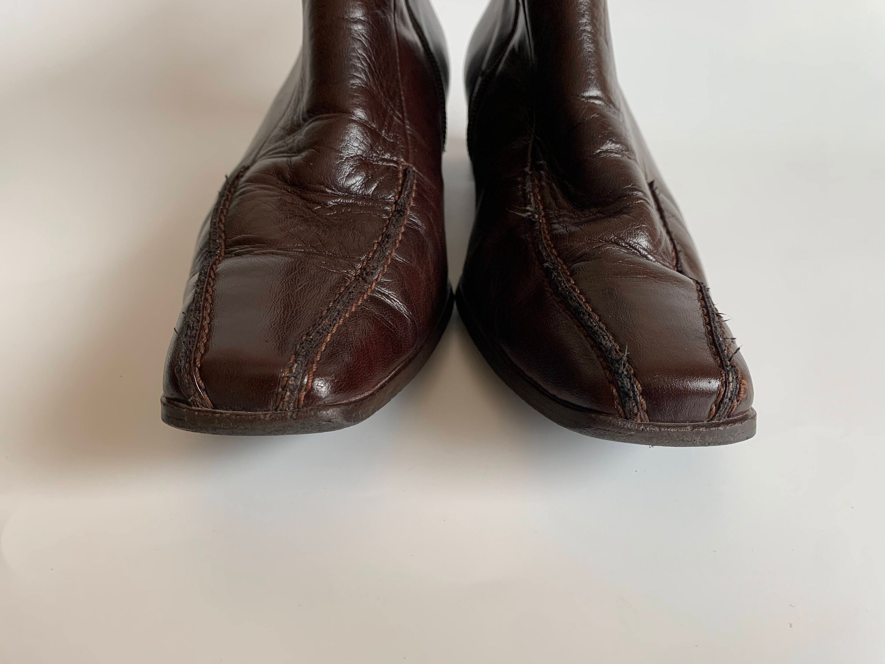 Condition: The brown leather boots were pre-loved and show some signs of wear. There are some scratches on the leather surface as well as creases around the toes and the ankles. I have tried to capture these signs of wear in the close up photos.