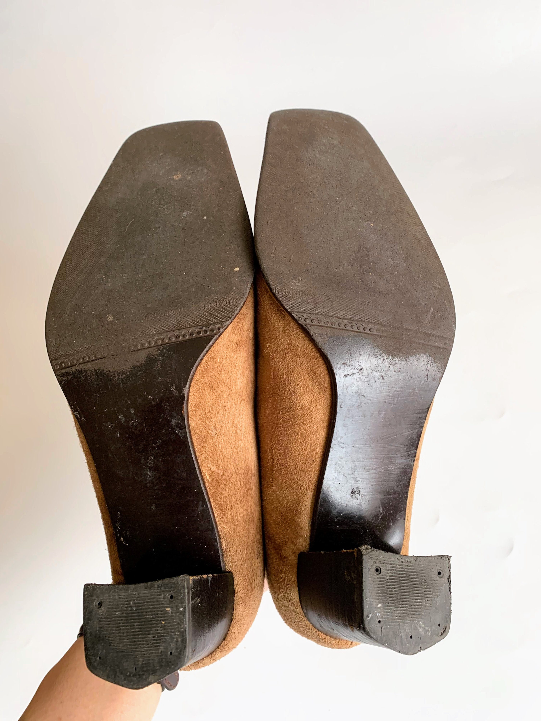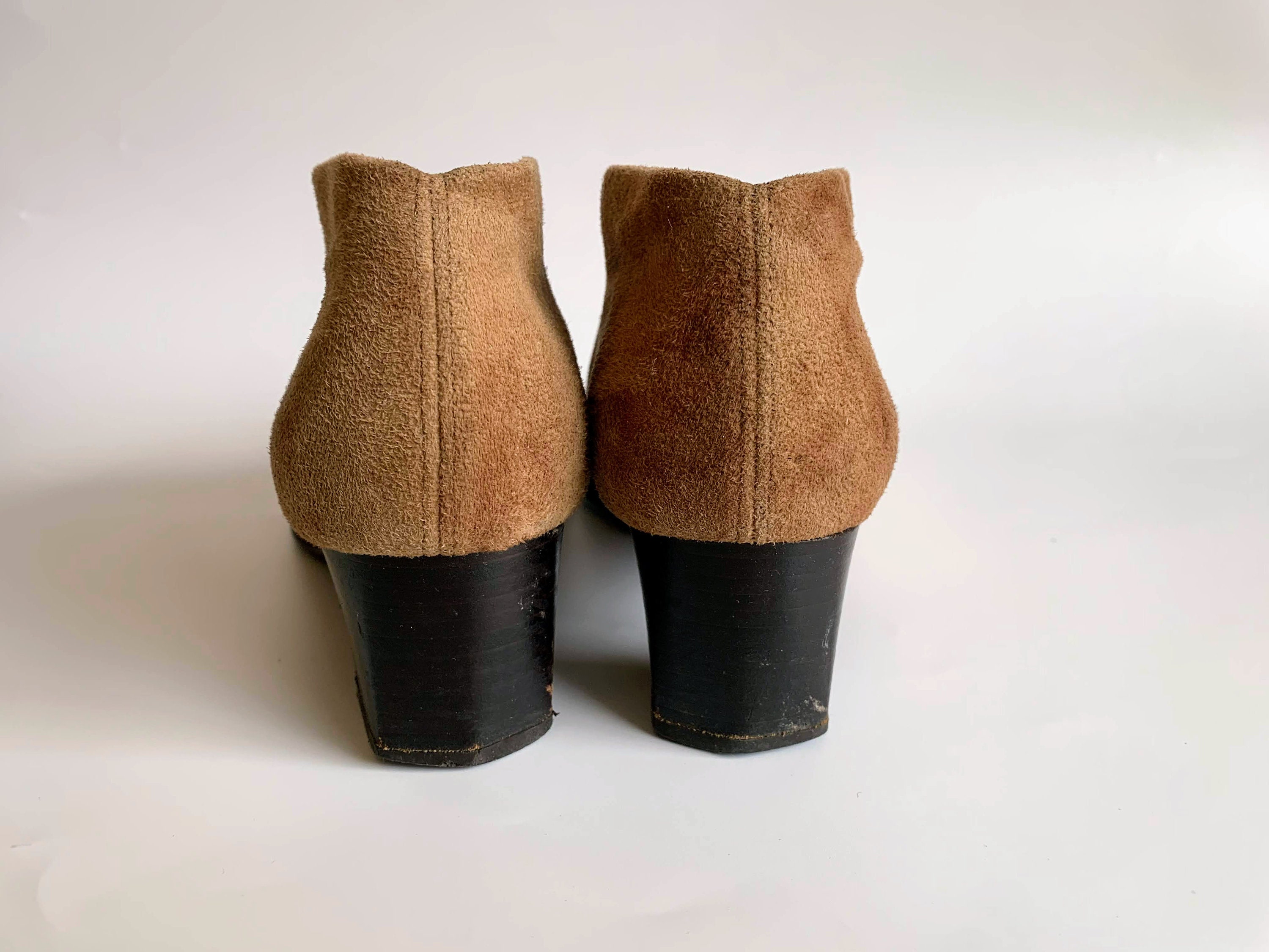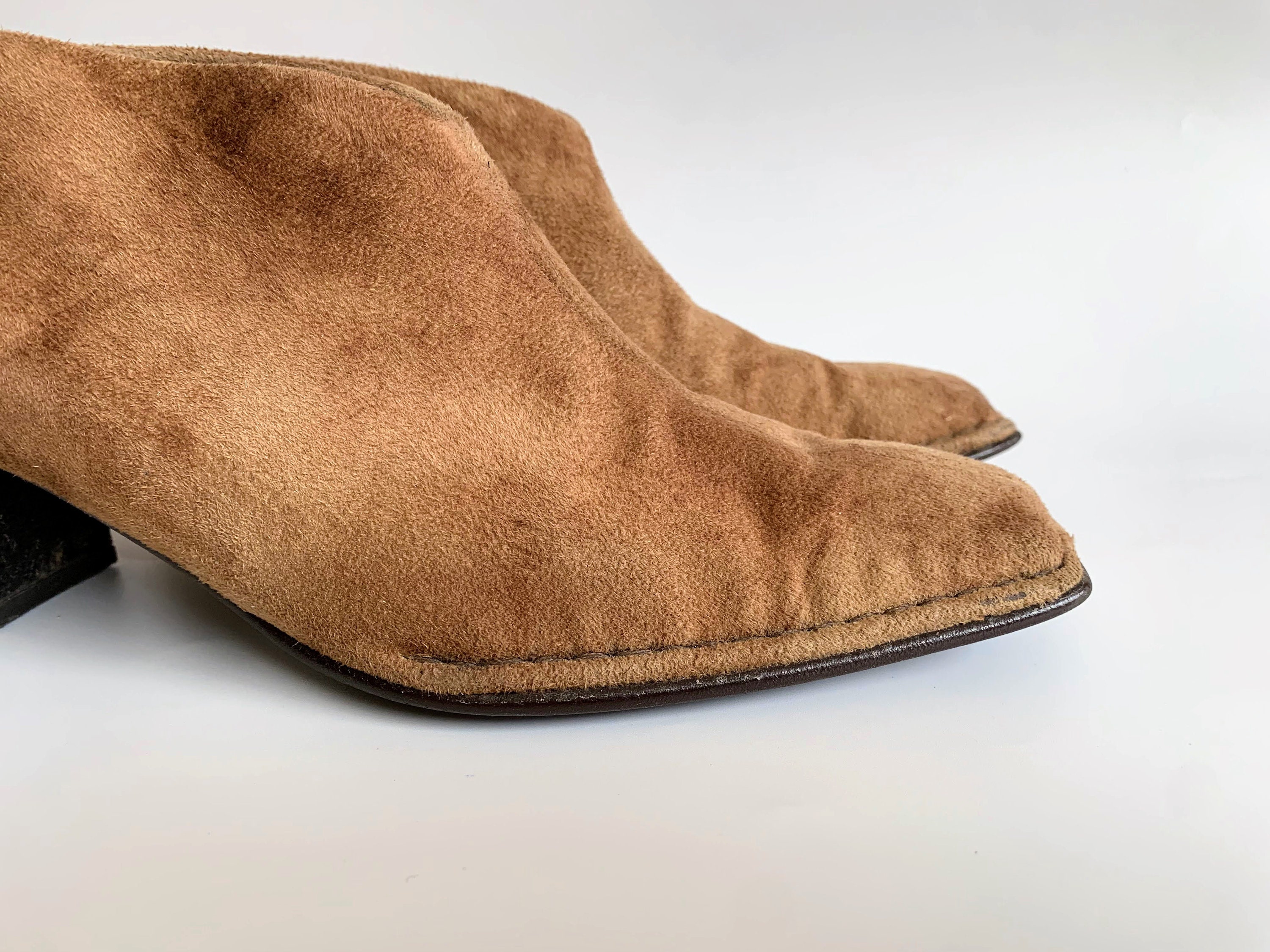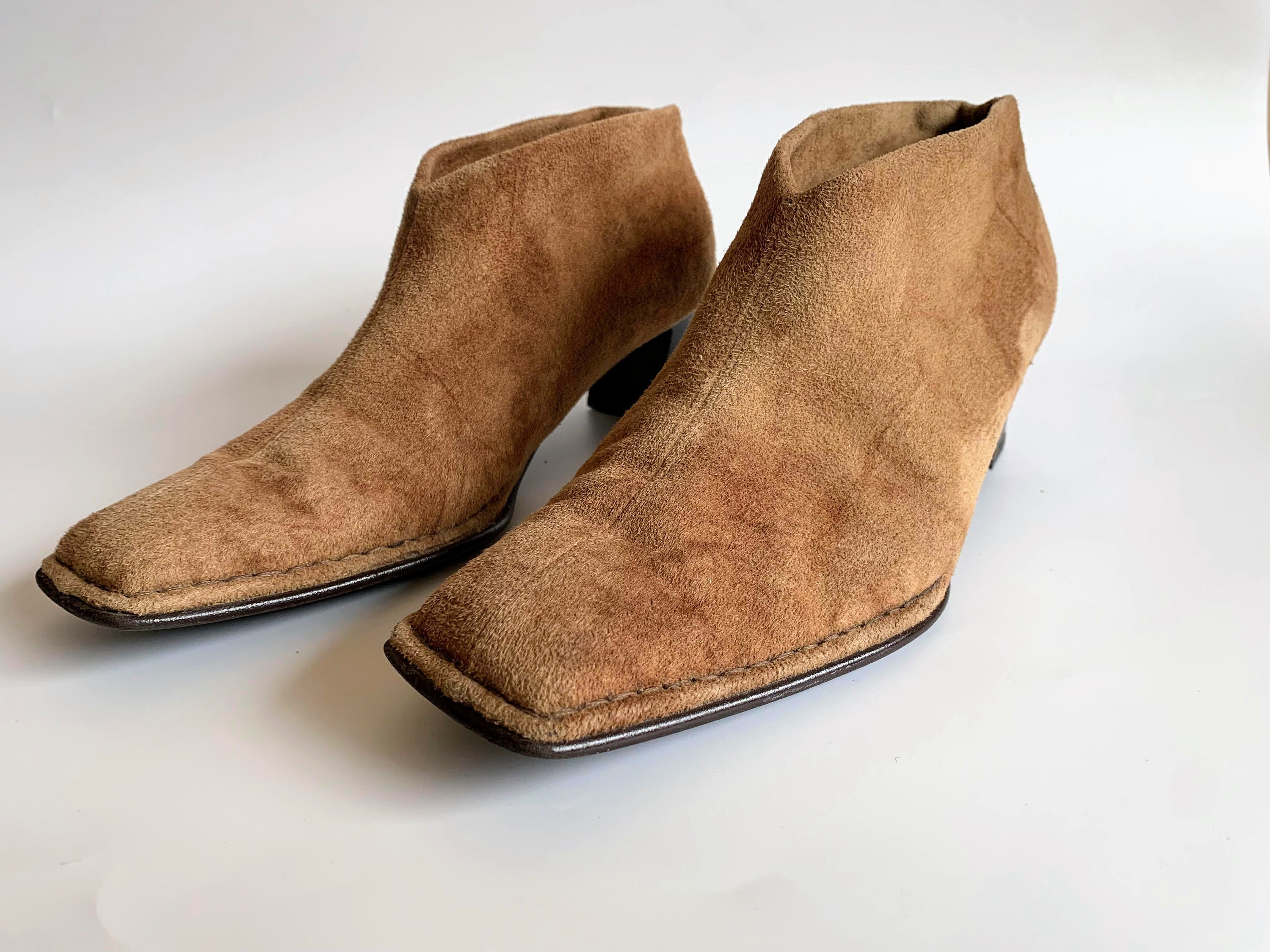 These are vintage 90s Y2K faux suede leather ankle booties by the brand Semler. These ankle slip on shoes for women are made of faux suede upper part, genuine leather interior and rubber sole. The size marked on the leather lining is UK 3 1/2, however these square toe loafers fit a little bigger. These slip on shoes fit more like UK 4, which corresponds to EUR 37, US 6. Please check the measurements below.