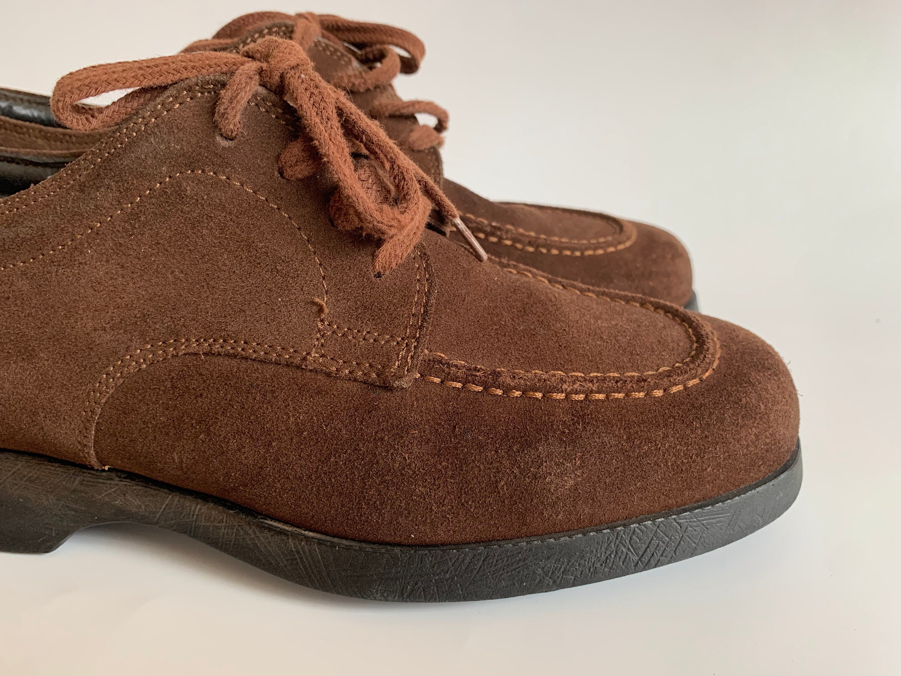 Condition: These brown suede leather shoes are in beautiful vintage condition with some marks on the suede leather surface and some fading around the edges, which I have tried to capture in the close up photos.