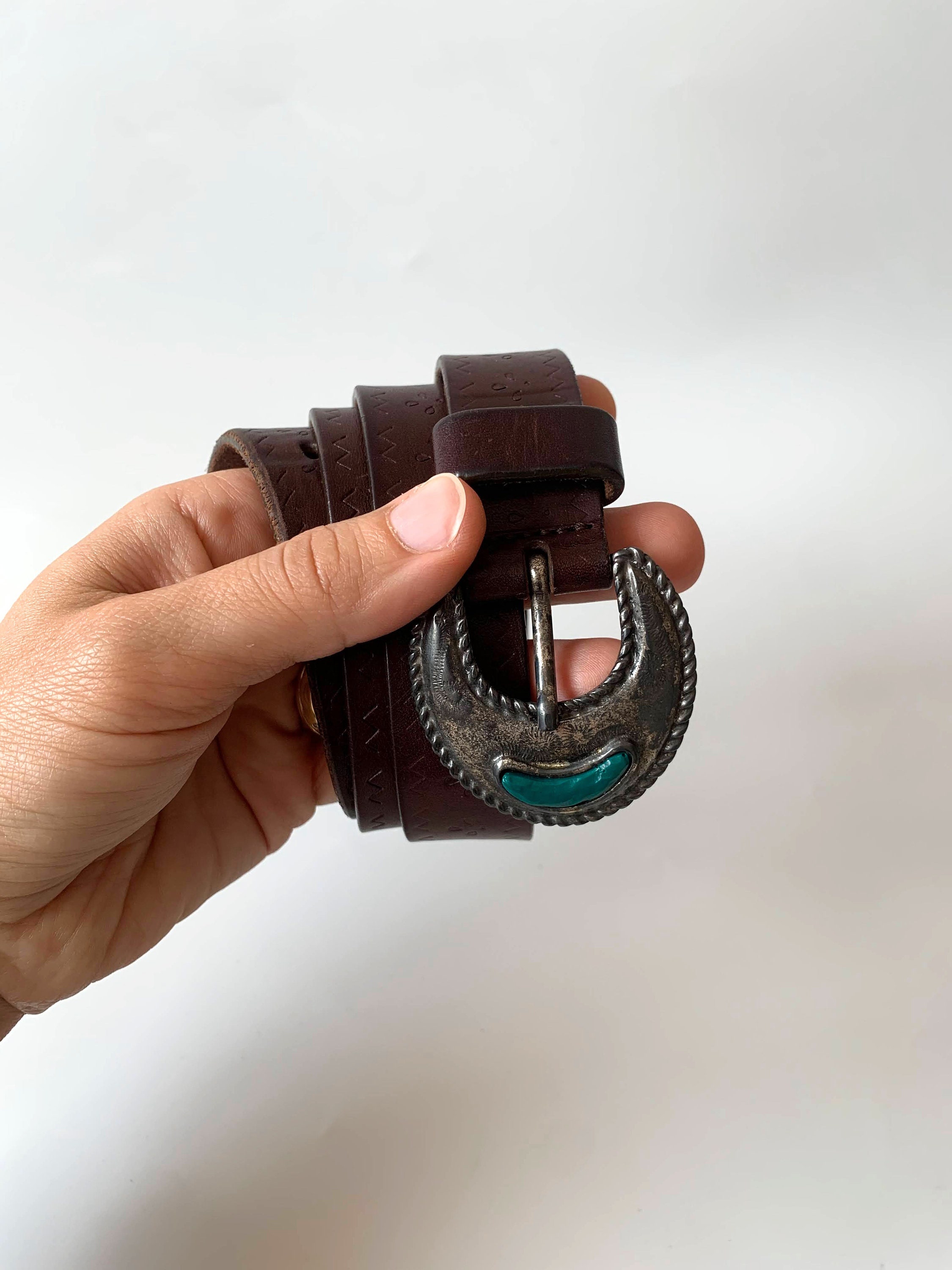 Condition: This belt has a beautifully distressed look, it was pre loved and the leather shows some scratches on the leather surface. There are scratches on the buckle too.