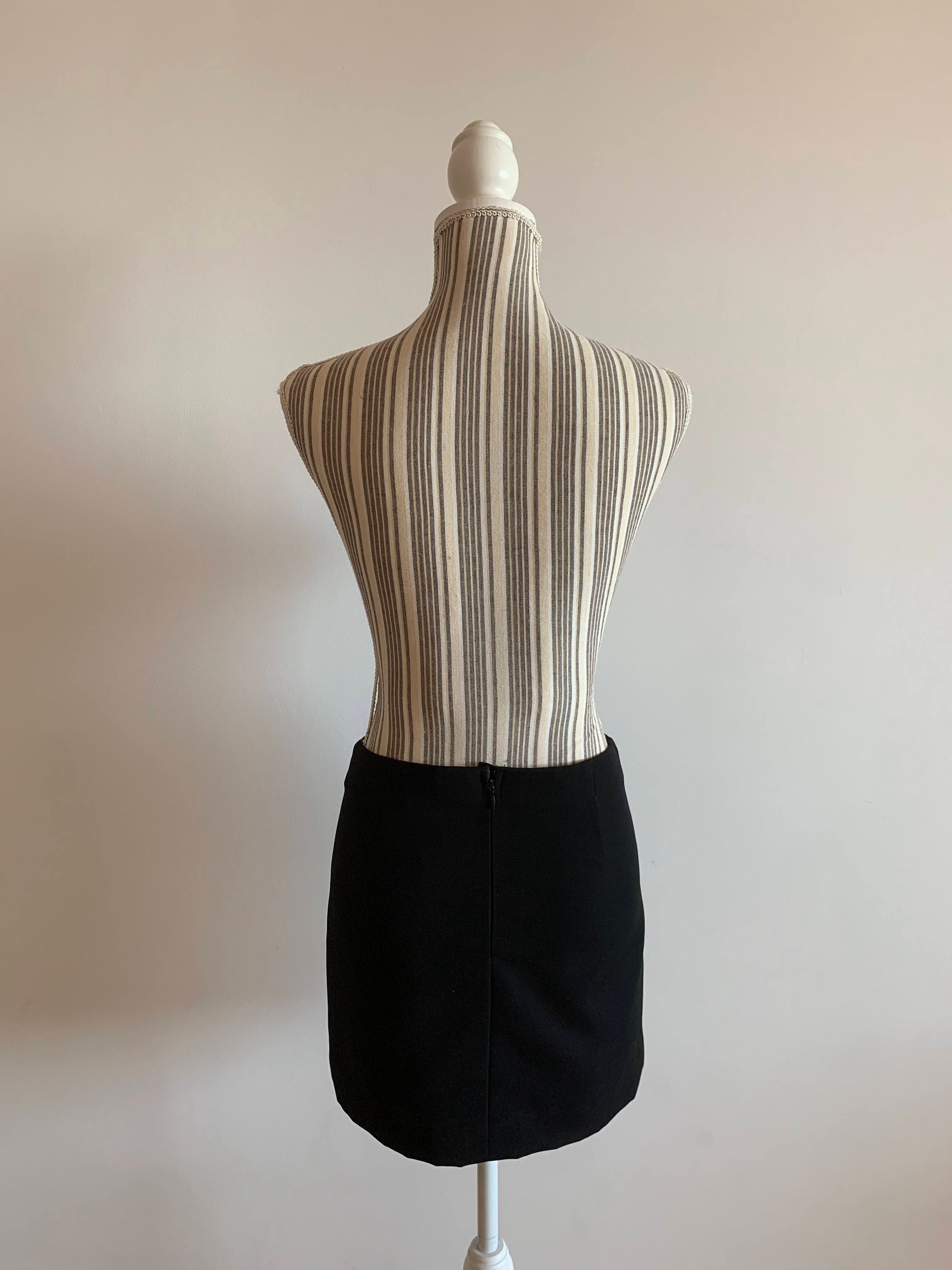 Condition: This black mini skirt is beautifully preserved with no visible signs of wear