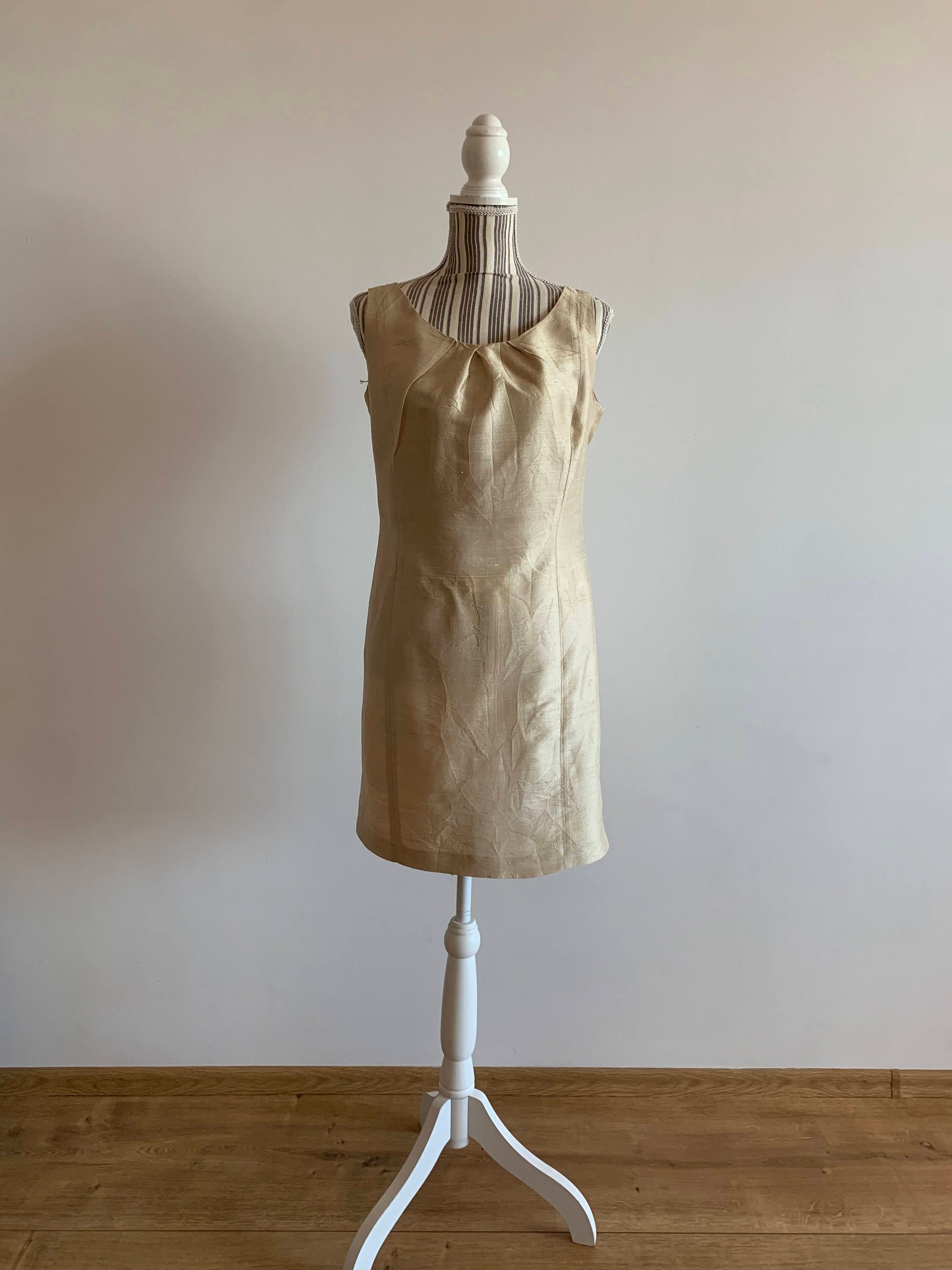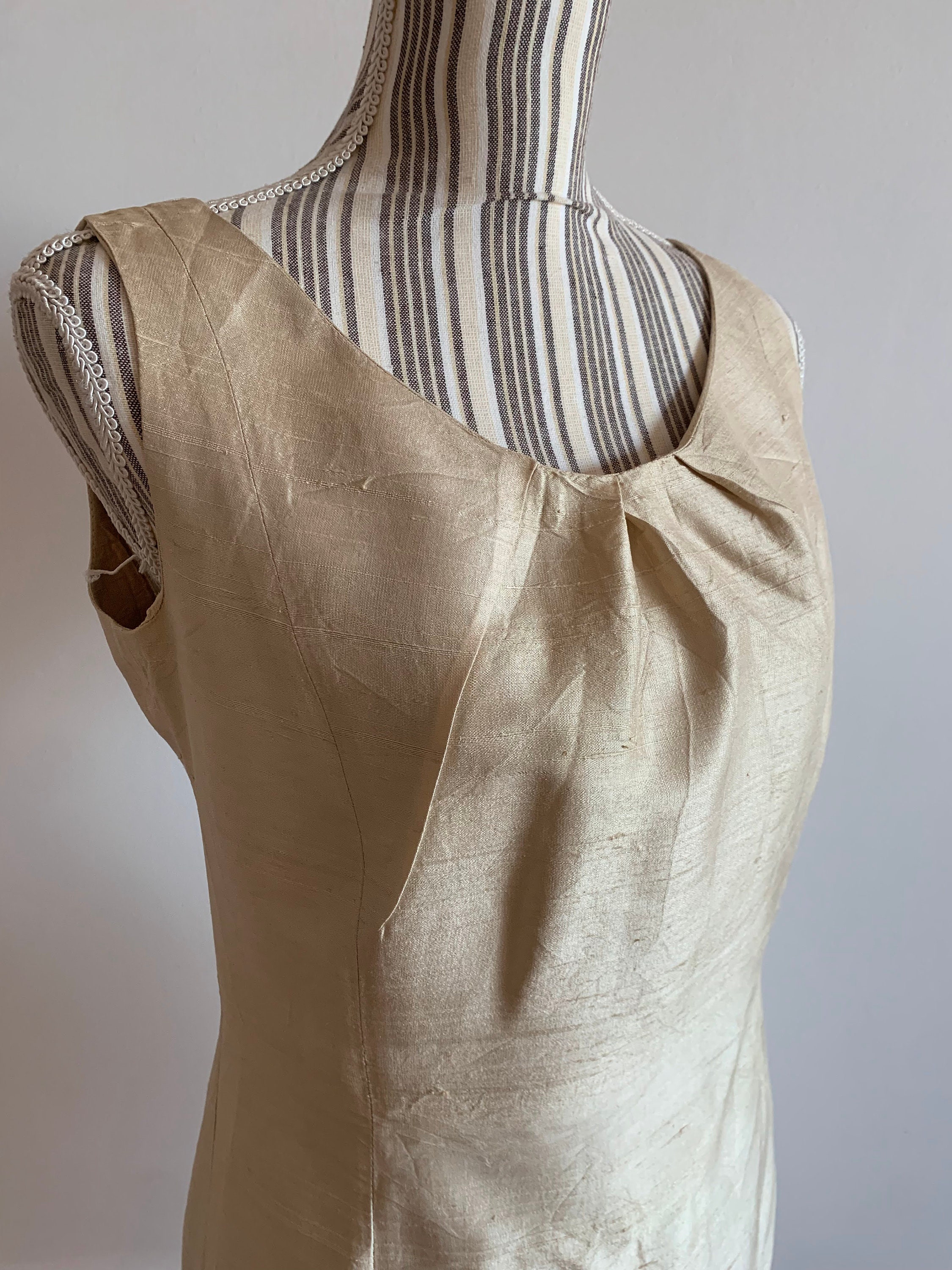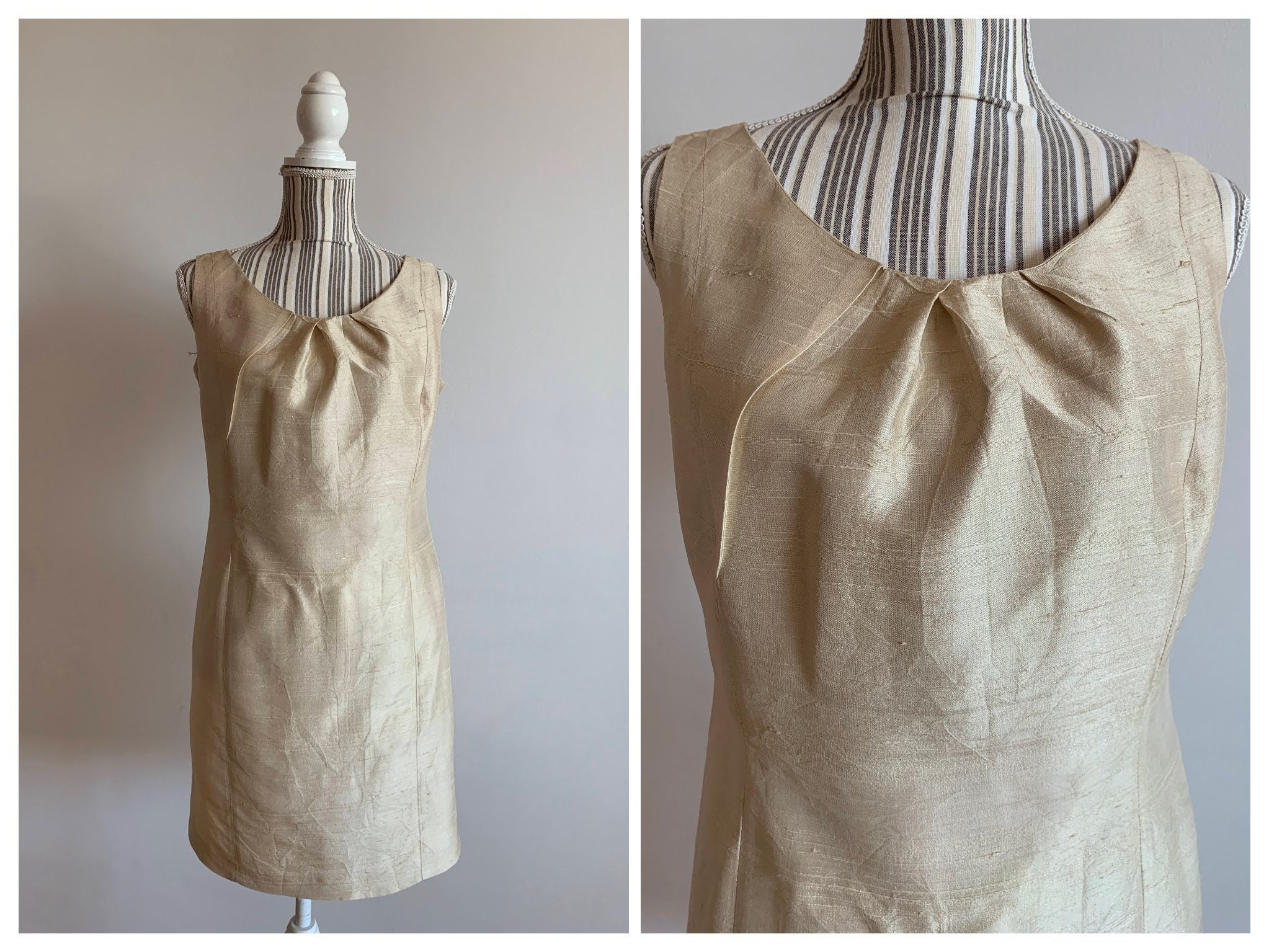 Condition: this champagne shift dress is in great vintage condition with no visible signs of wear. The fabric shows some texture , but it's the natural texture of the raw pure silk fabric.