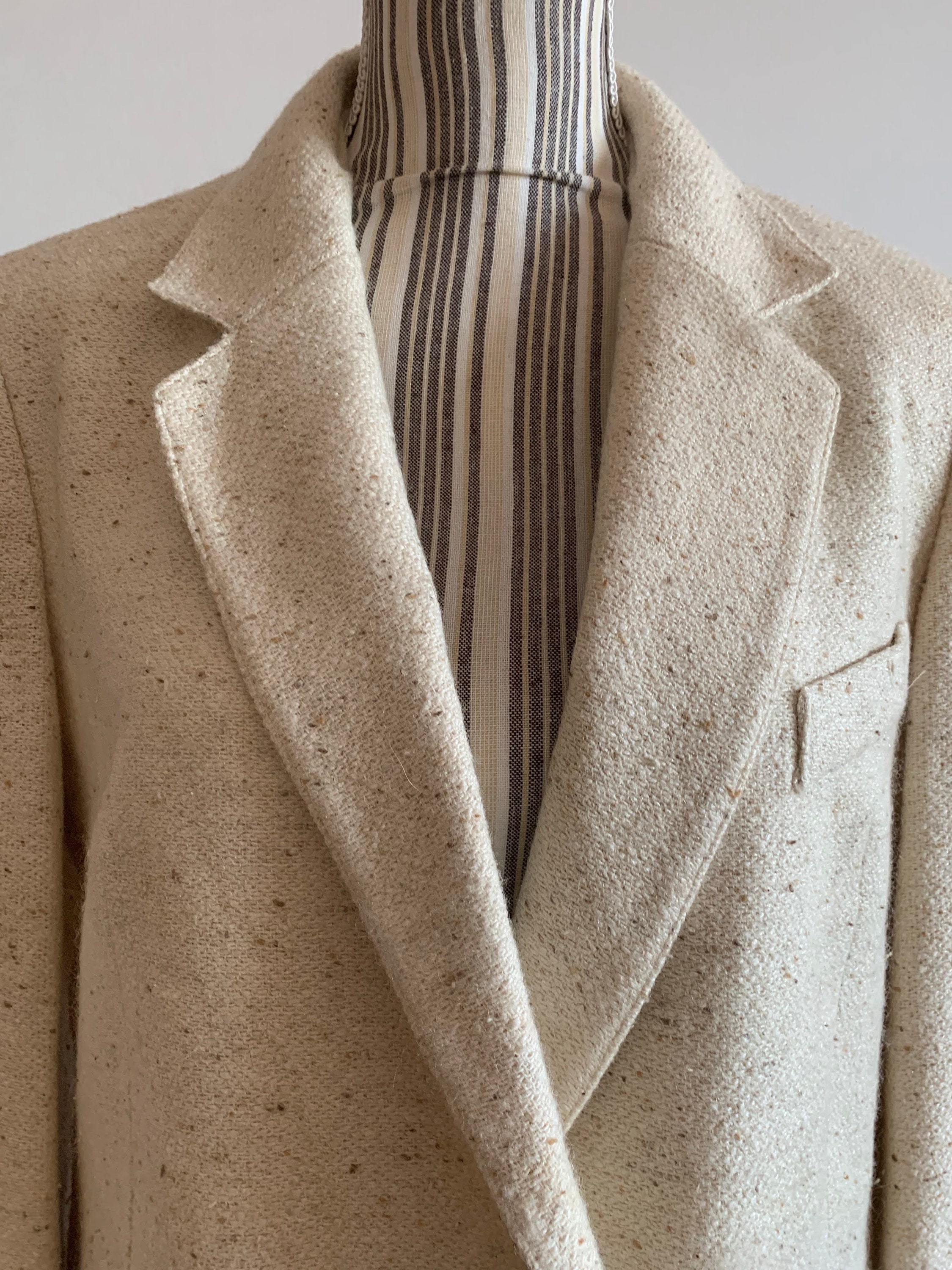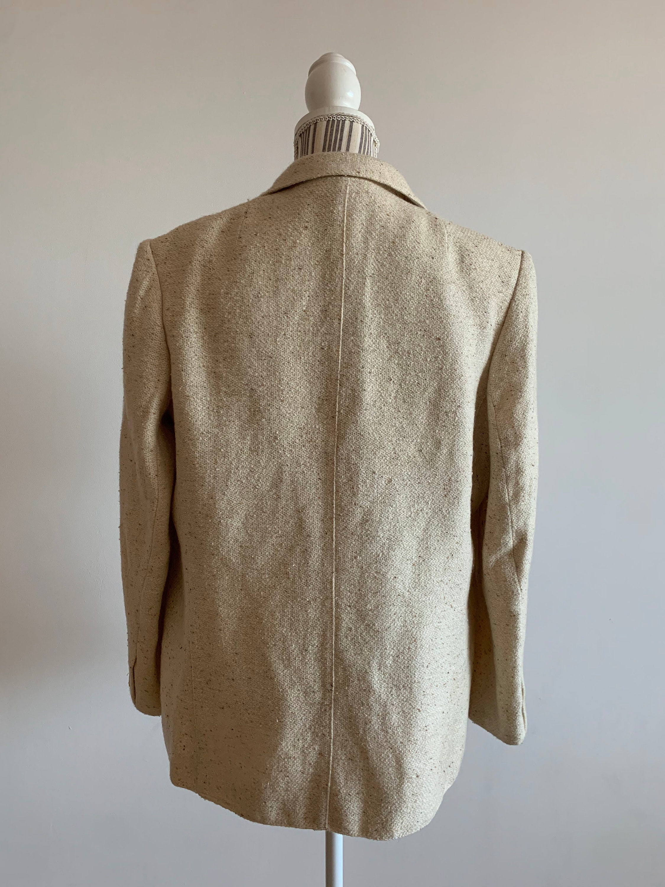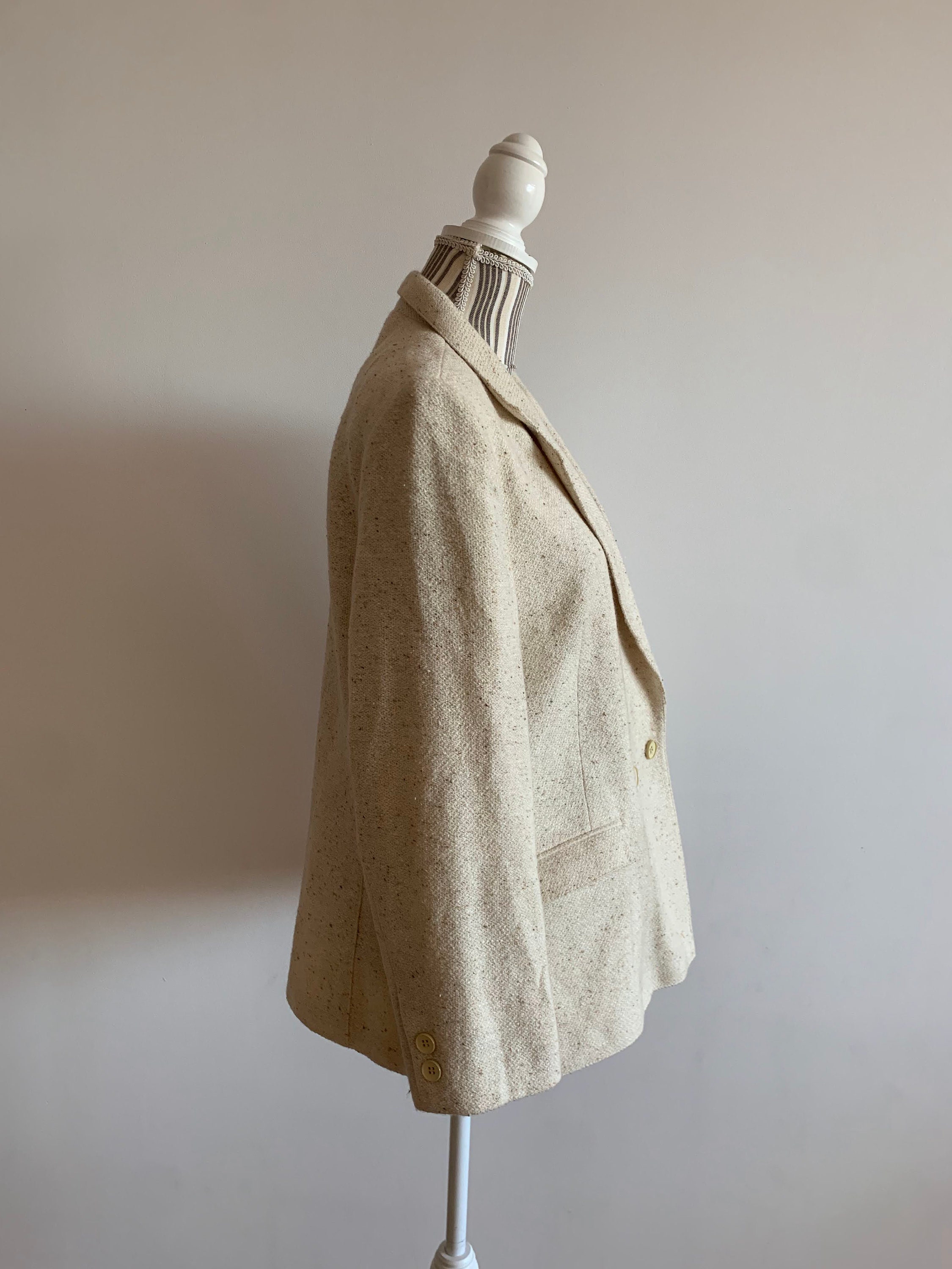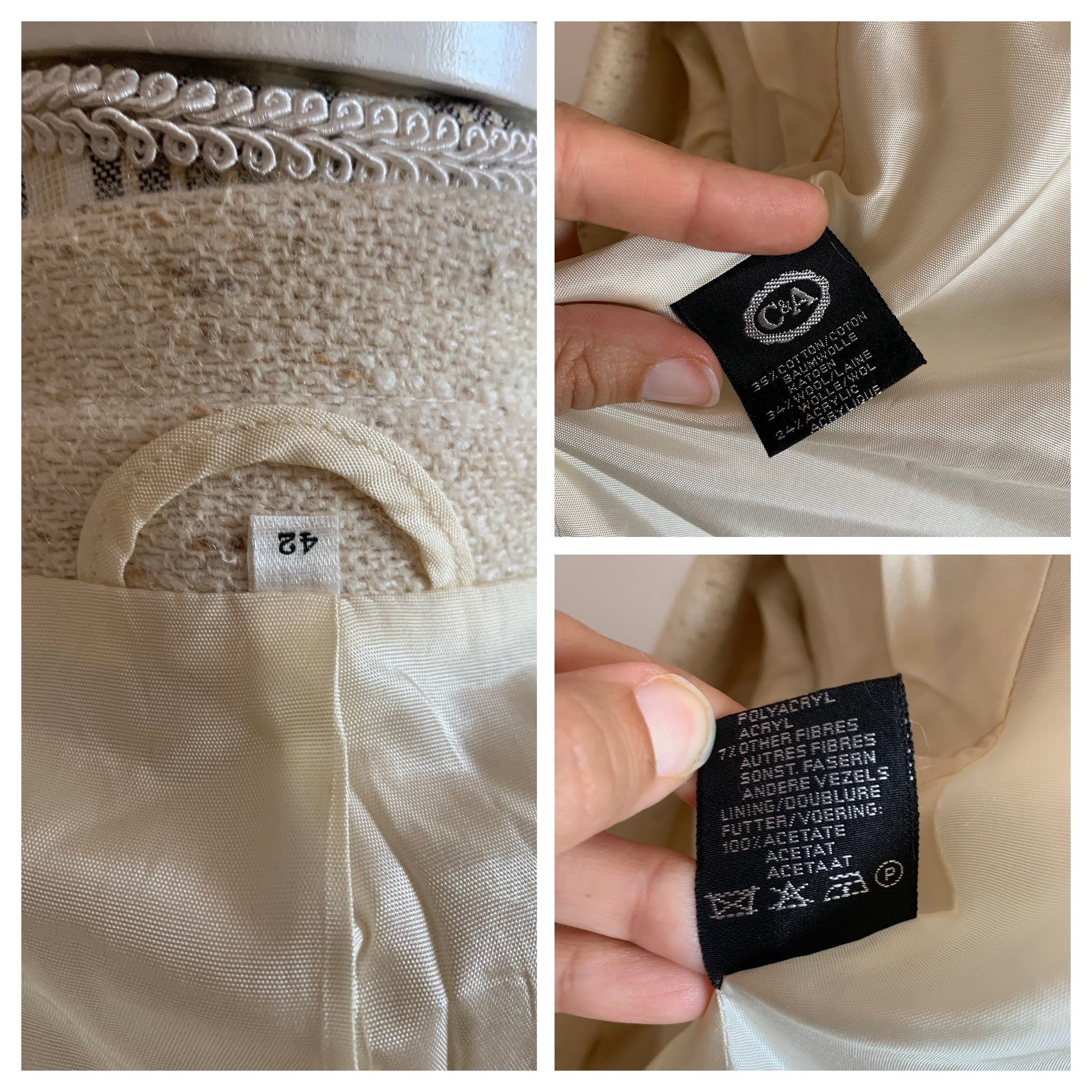 This is s beautiful vintage 90s oversized boyfriend blazer for women in ivory color. This wool tweed blazer coat has an unisex loose fit silhouette. You can button it either way, so it's suitable for both men and women. This wool blazer jacket is made of cozy warm tweed fabric made of cotton and wool ( 35 % cotton, 34% wool, 24 % acrylic, 7% other fibers). It has acetate lining. This cream beige wool overcoat is perfect for the fall spring season. You can also wear it in the winter with an oversized scarf and a warm hat. This loose fit blazer coat is by the brand C&A. The size marked is EUR 42, which corresponds to size M/L women's. Please check the measurements below.