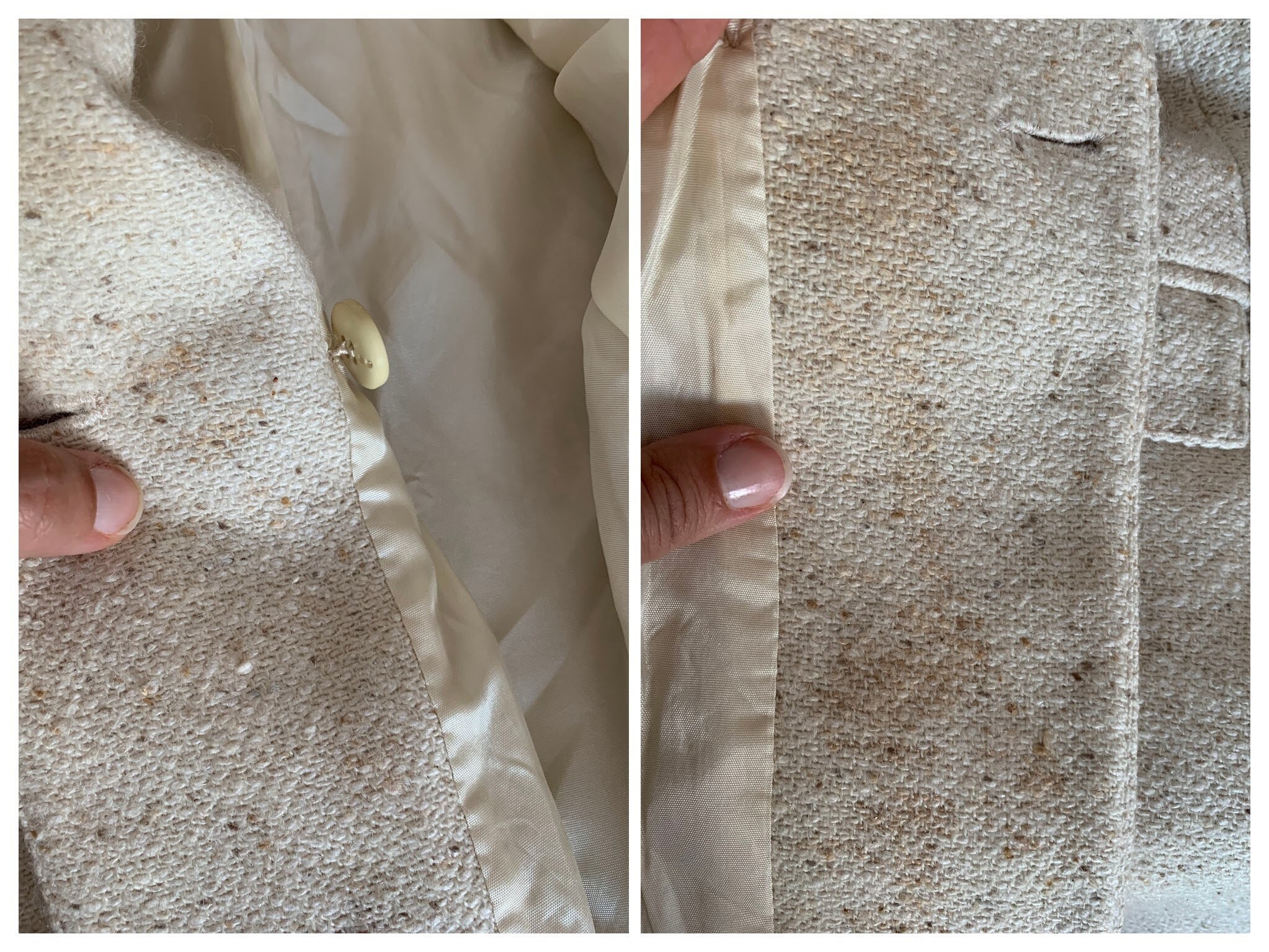 Condition: This double breasted blazer is in great vintage condition with some signs of wear on the lining. There are some darker spots on the tweed fabric on the reverse side next to the lining which I have tried to capture in the close up photos.