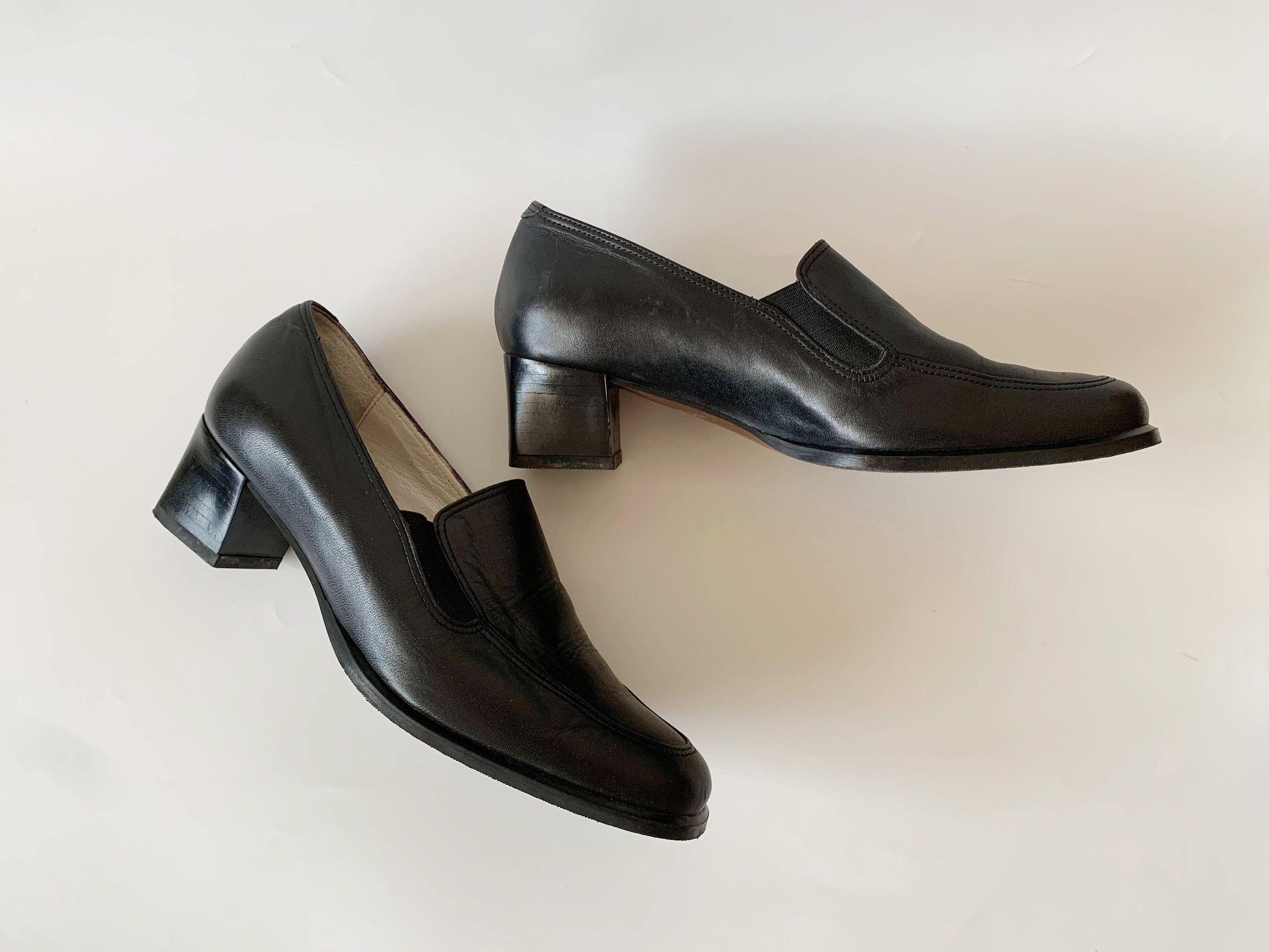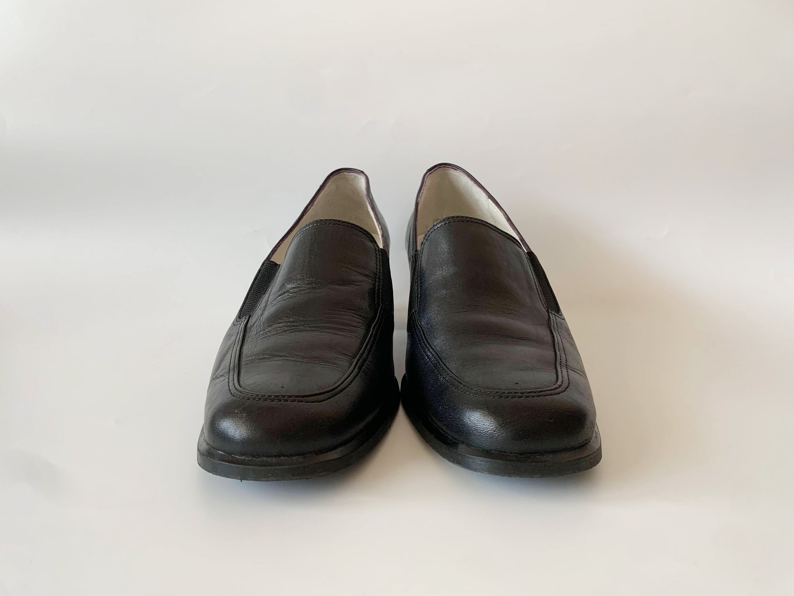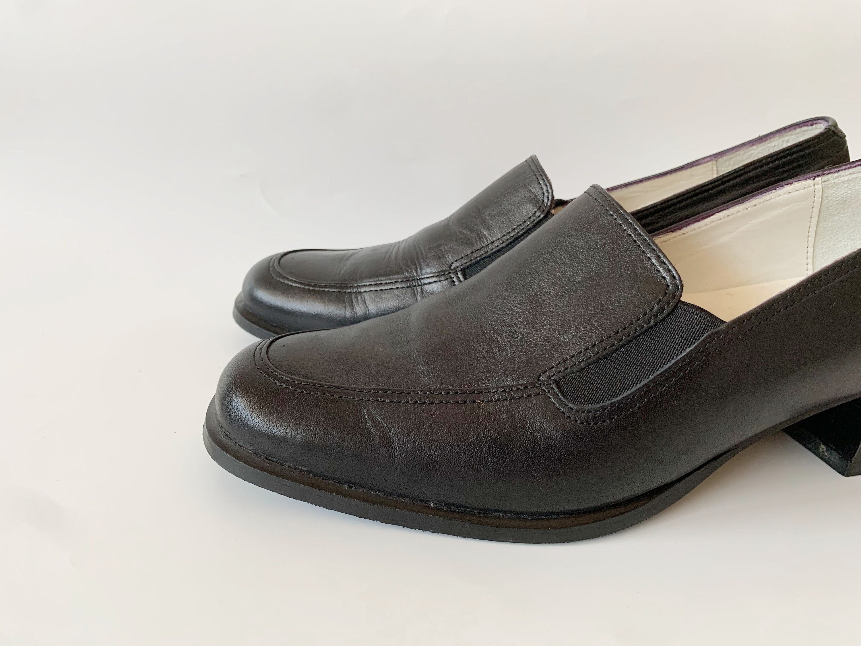 These are vintage 90s casual slip on shoes with elastic side panels and comfortable low block heel. These casual office shoes are perfect to wear daily. These side elastic shoes are super comfortable to wear all day long and so stylish with their evergreen design. These vintage 90s shoes are size 37, which fits like UK 4, US 6 1/2. Please check the measurements below.
