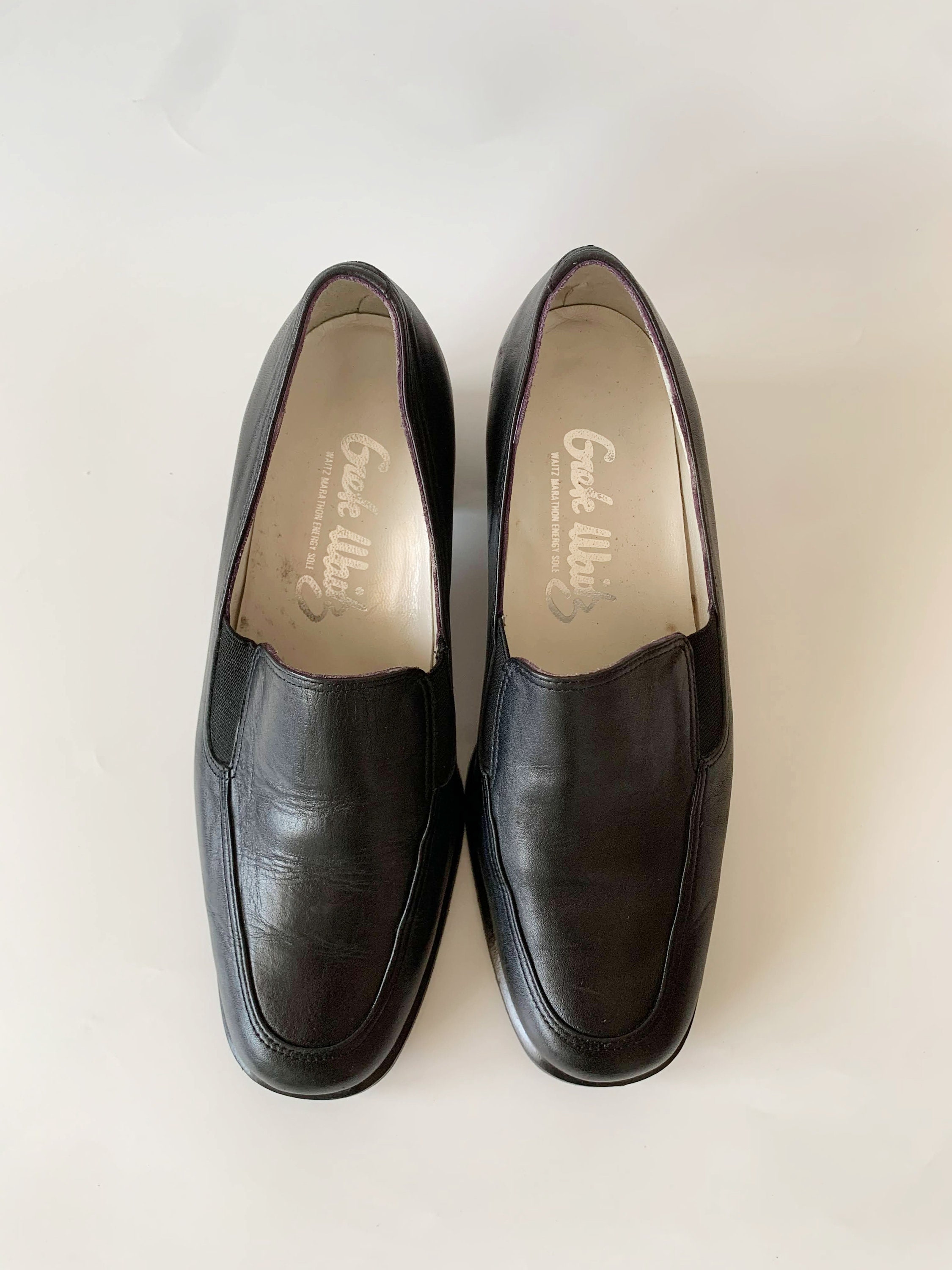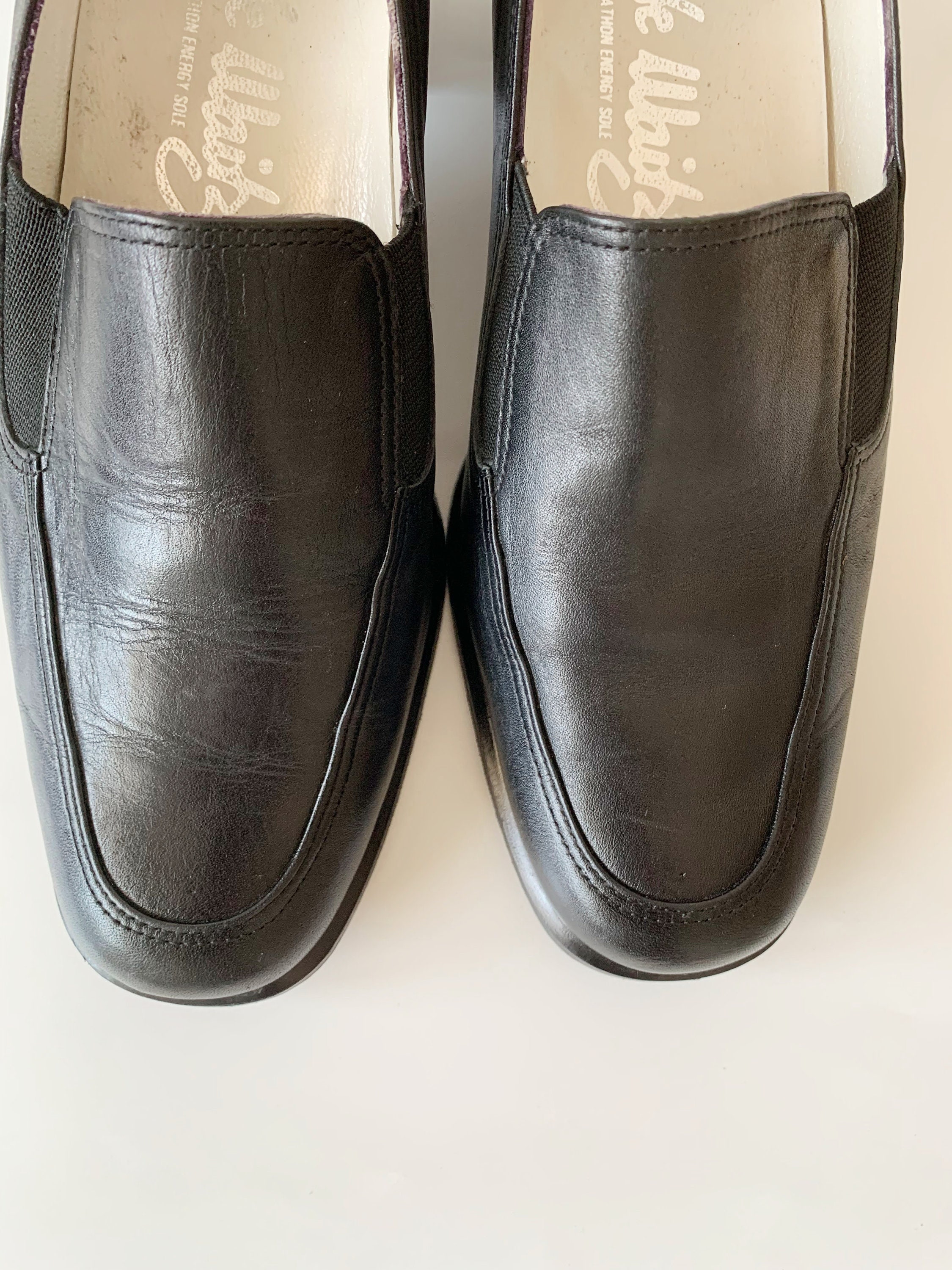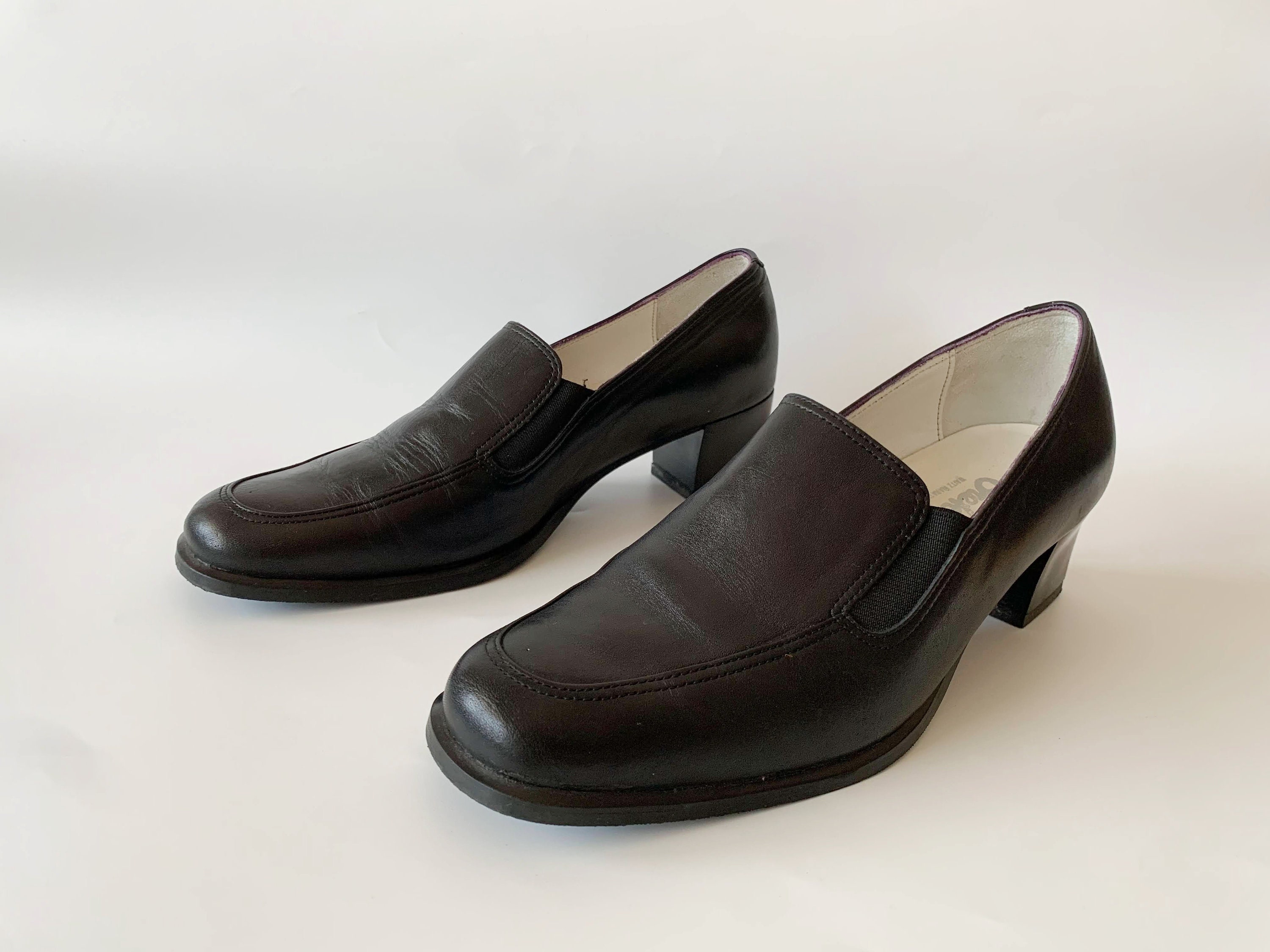 These are vintage 90s casual slip on shoes with elastic side panels and comfortable low block heel. These casual office shoes are perfect to wear daily. These side elastic shoes are super comfortable to wear all day long and so stylish with their evergreen design. These vintage 90s shoes are size 37, which fits like UK 4, US 6 1/2. Please check the measurements below.