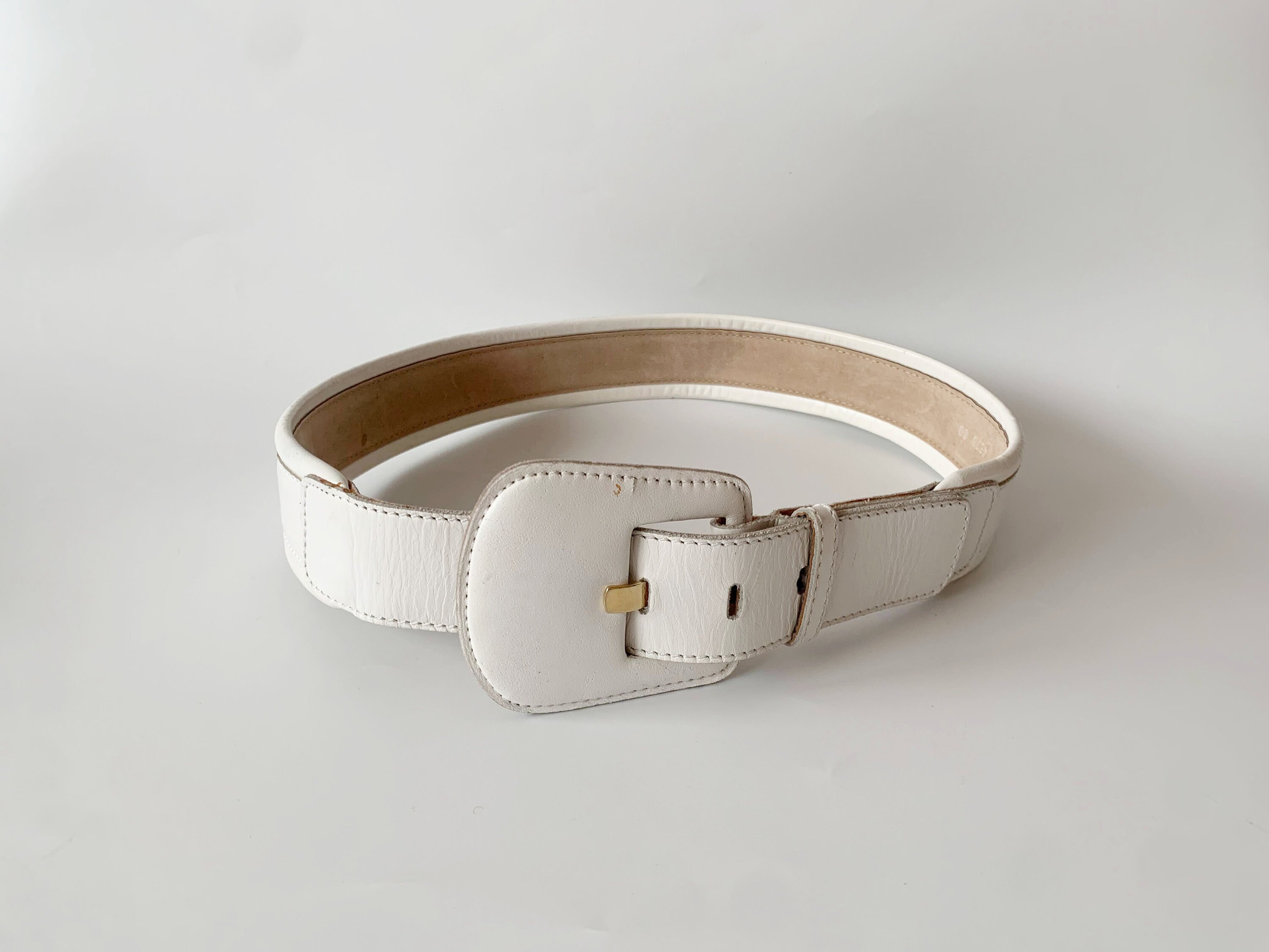 This is a statement white leather belt for women size 80 cm / 31.5". This wide waist belt is made of sturdy genuine leather with statement leather covered buckle. This accent white leather belt is perfect to pair with dresses, skirts and pants. Great wide leather belt that you can incorporate in your wardrobe to style it up