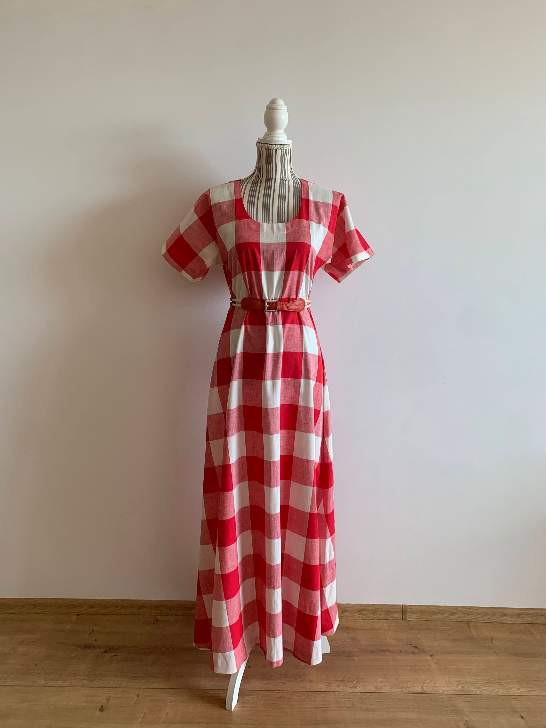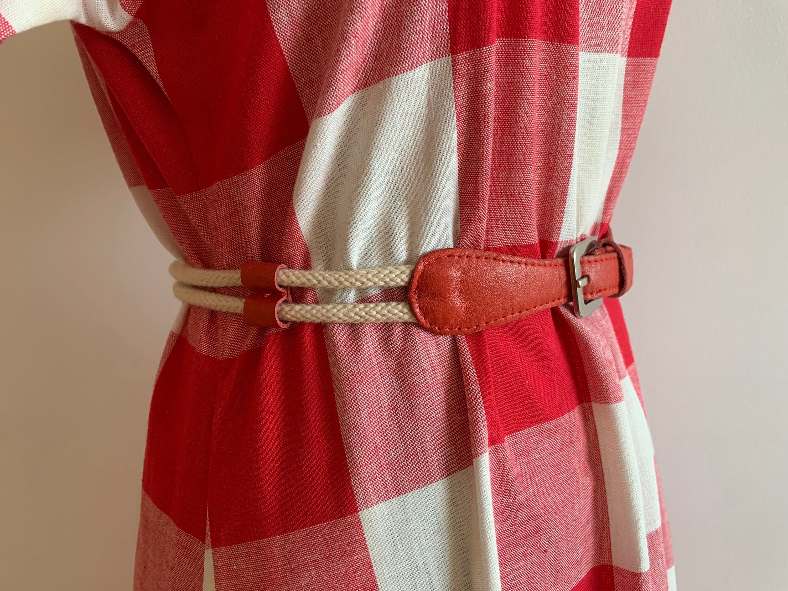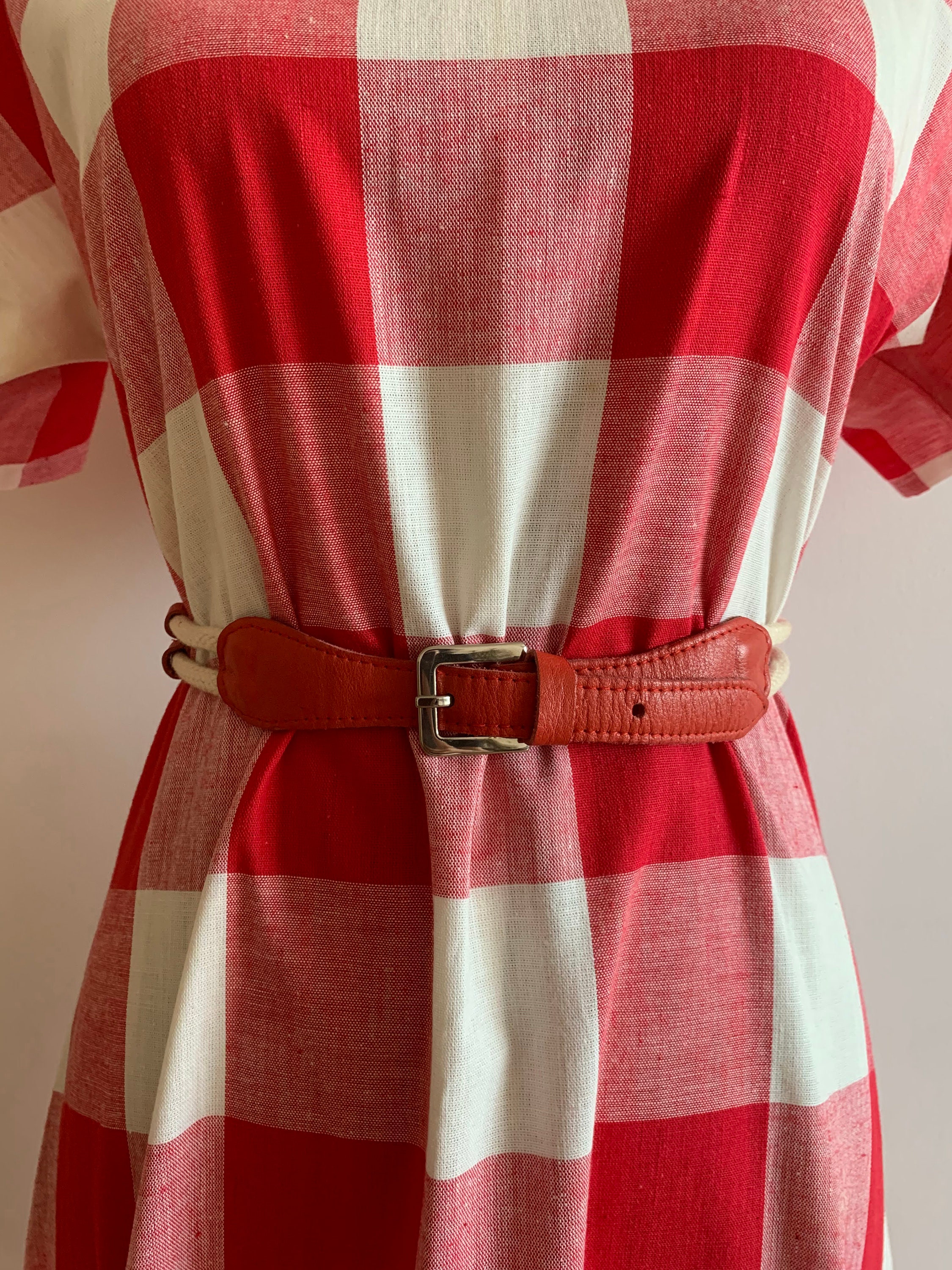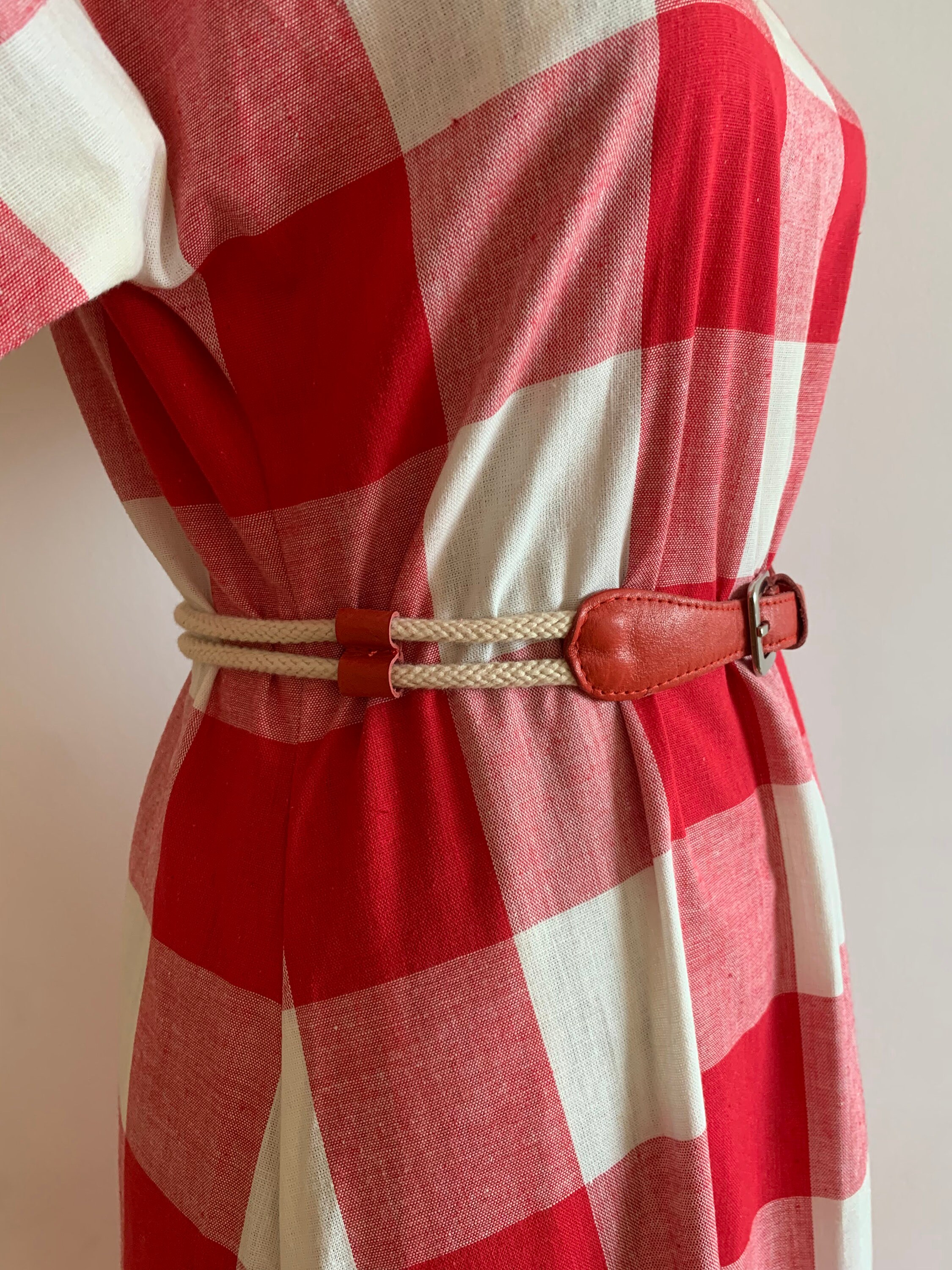 Note - the dress does not come with the belt. It can be purchased separately here - https://www.etsy.com/listing/1548525965/vintage-white-red-checkered-maxi-dress?click_key=b95176ed5d3642addbb5f92a3560ad43f7bbcbf0%3A1548525965&click_sum=0a57dddd&ref=shop_home_active_1&sts=1