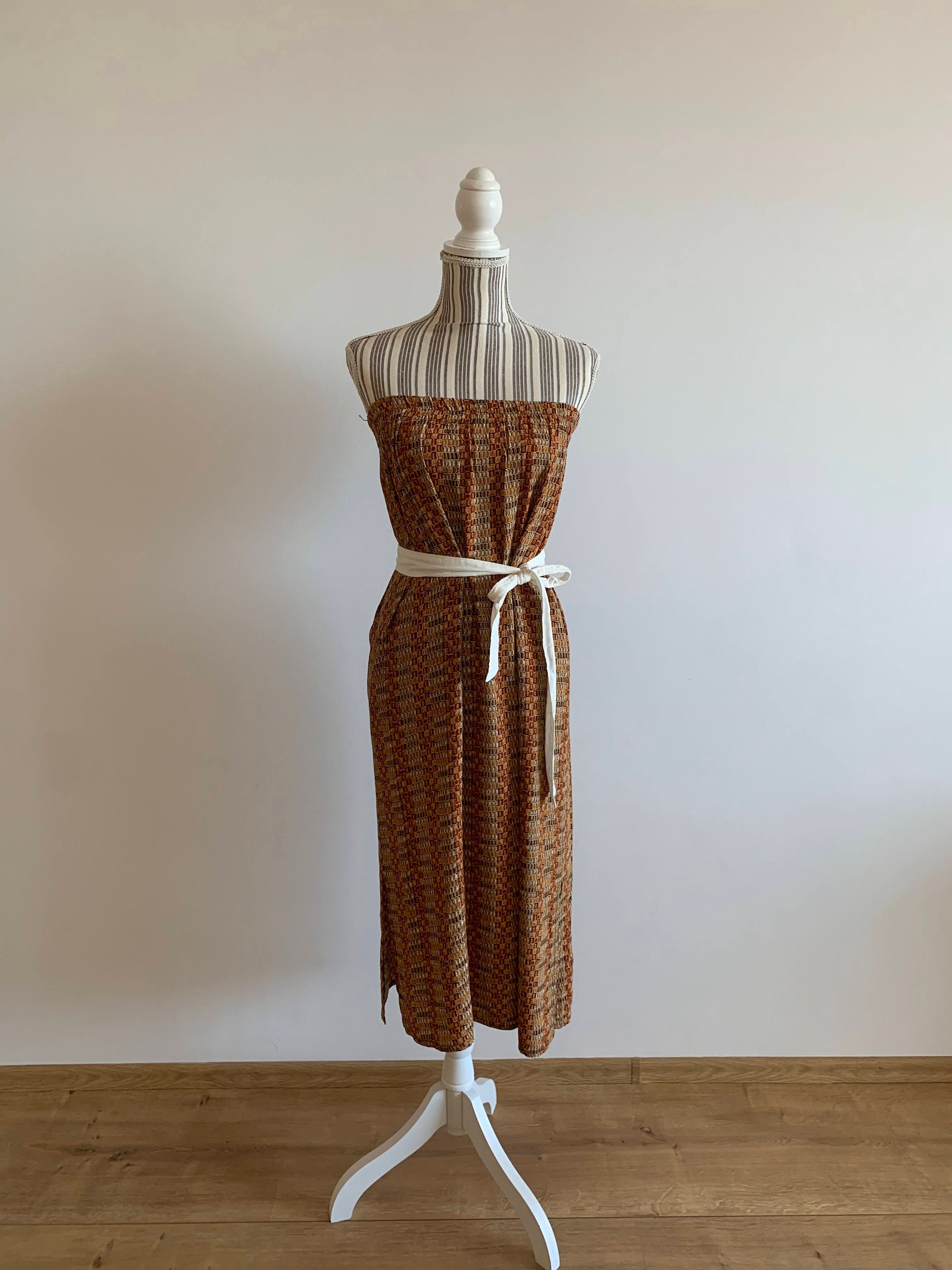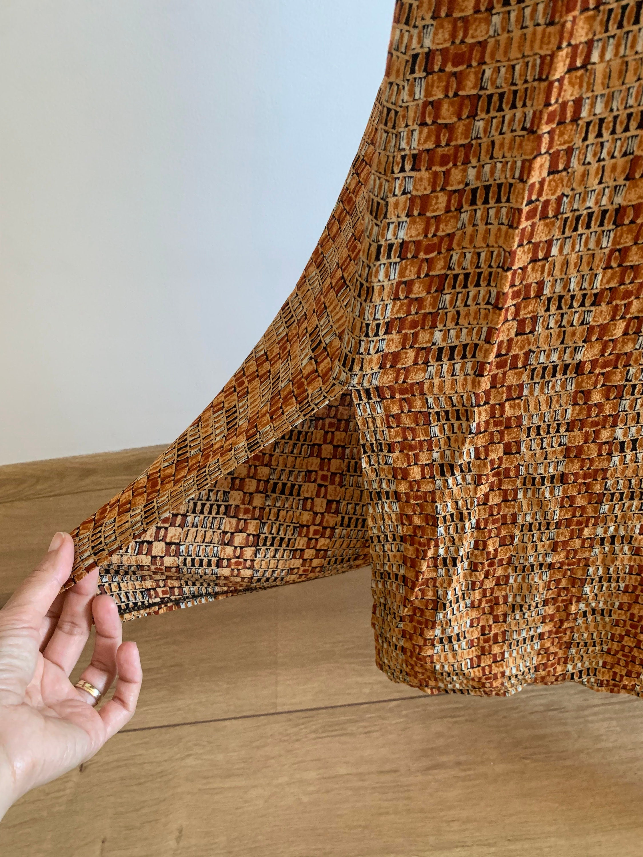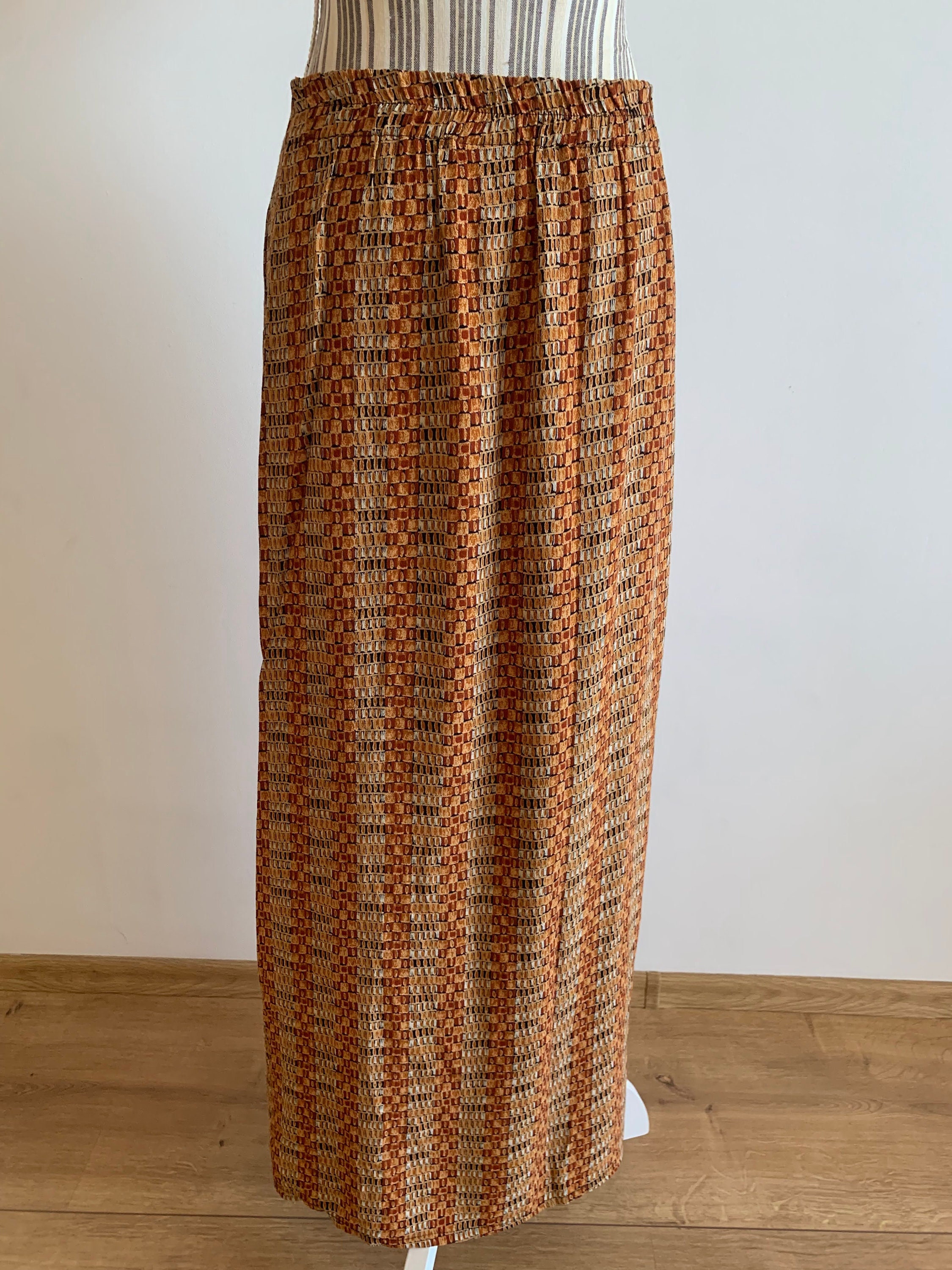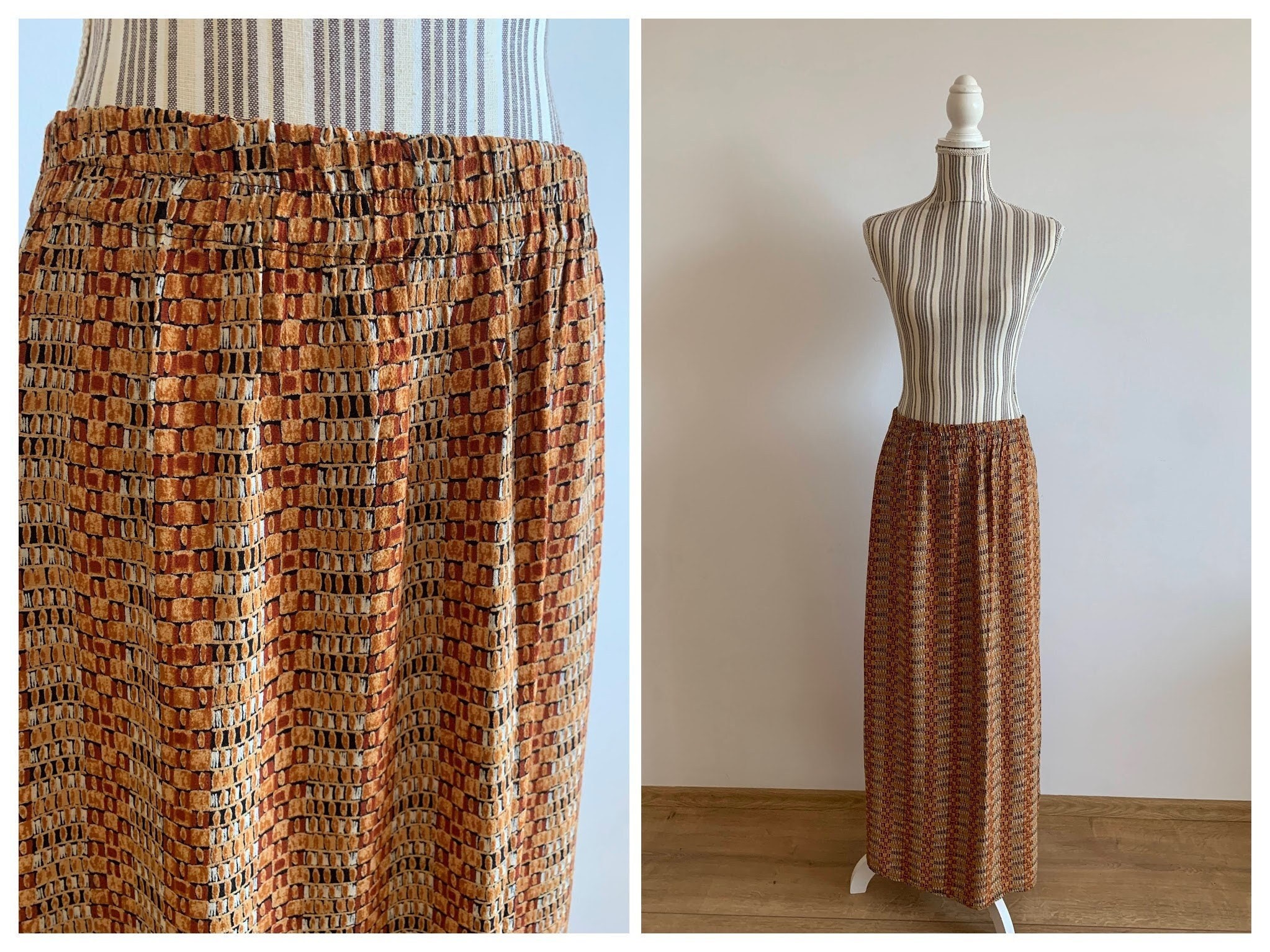 This is a beautiful vintage 90s grunge maxi skirt with splits on both sides - left and right. This ankle length maxi skirt is made of light 100% viscose fabric which is perfect for the summer season. This boho hippie maxi skirt has elasticated waistline, so you can easily put it on and take it off. This bohemian summer skirt has a straight cut silhouette. It is breezy and flowy. It was made in France. This bohemian maxi skirt is size S. Please check the measurements below.