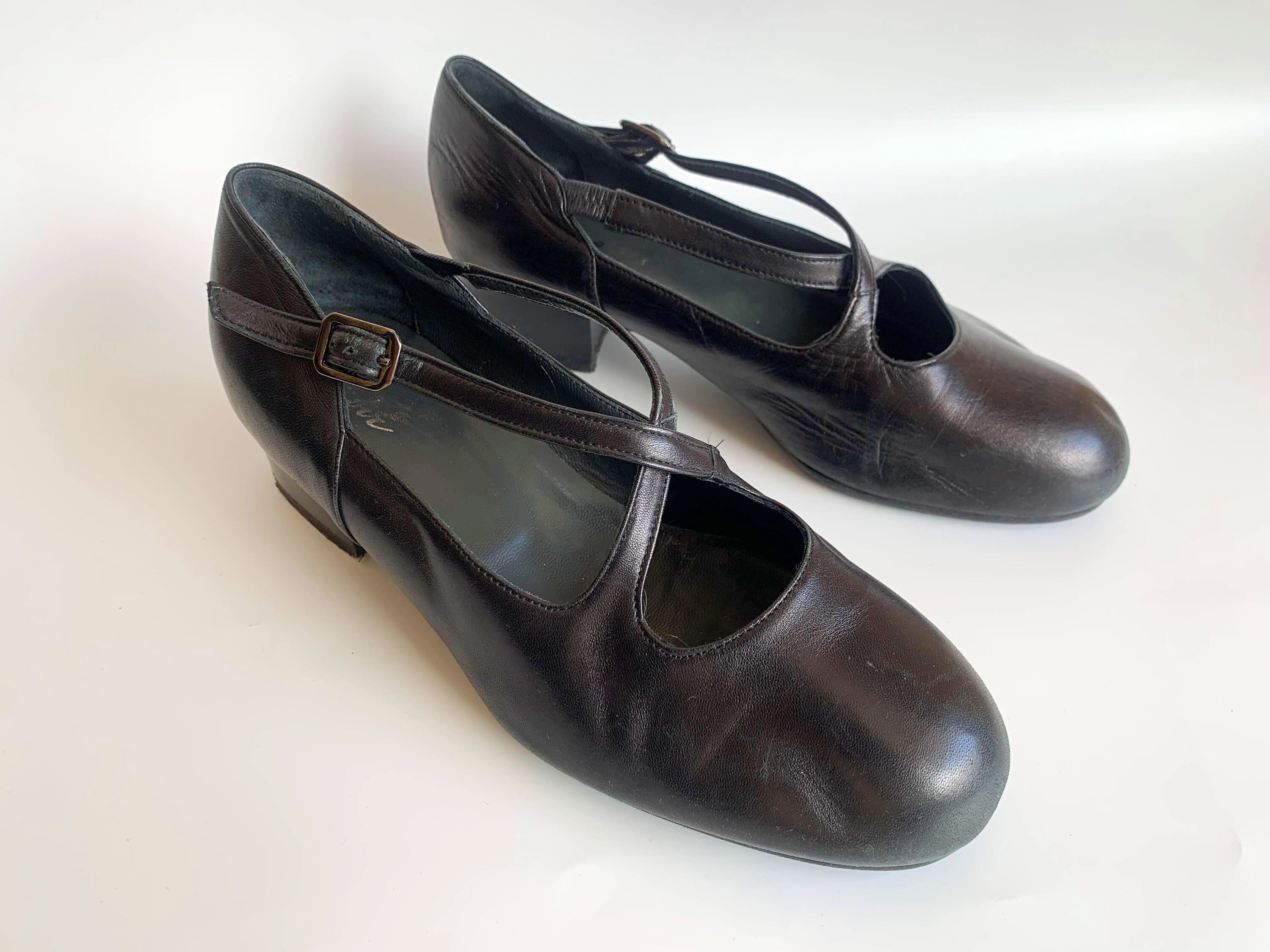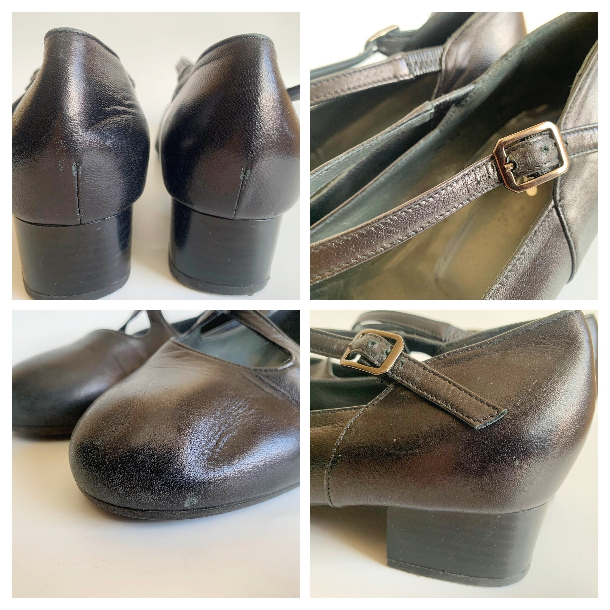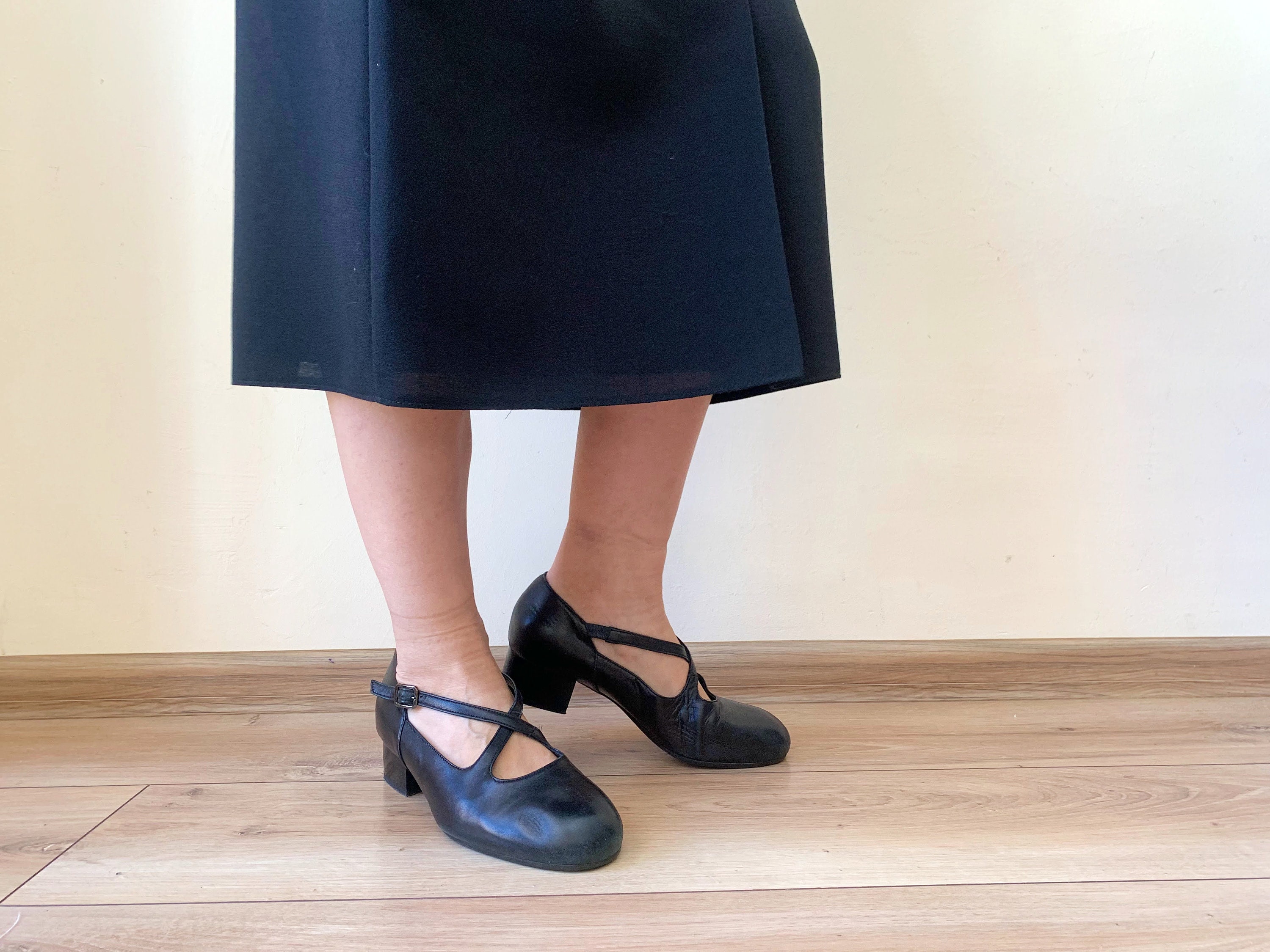 These are vintage 80s distressed leather chunky black leather mules for women made in Italy. These chunky low block heel mary janes have buckle up criss cross straps with elastic bands for extra comfort. These low heel mules have wide closed toes perfect for wider feet. The size marked on these black mary jane shoes is EU 38, however they feel bigger possibly because of the wide toe cap and the barefoot feel. Please check the measurements below.