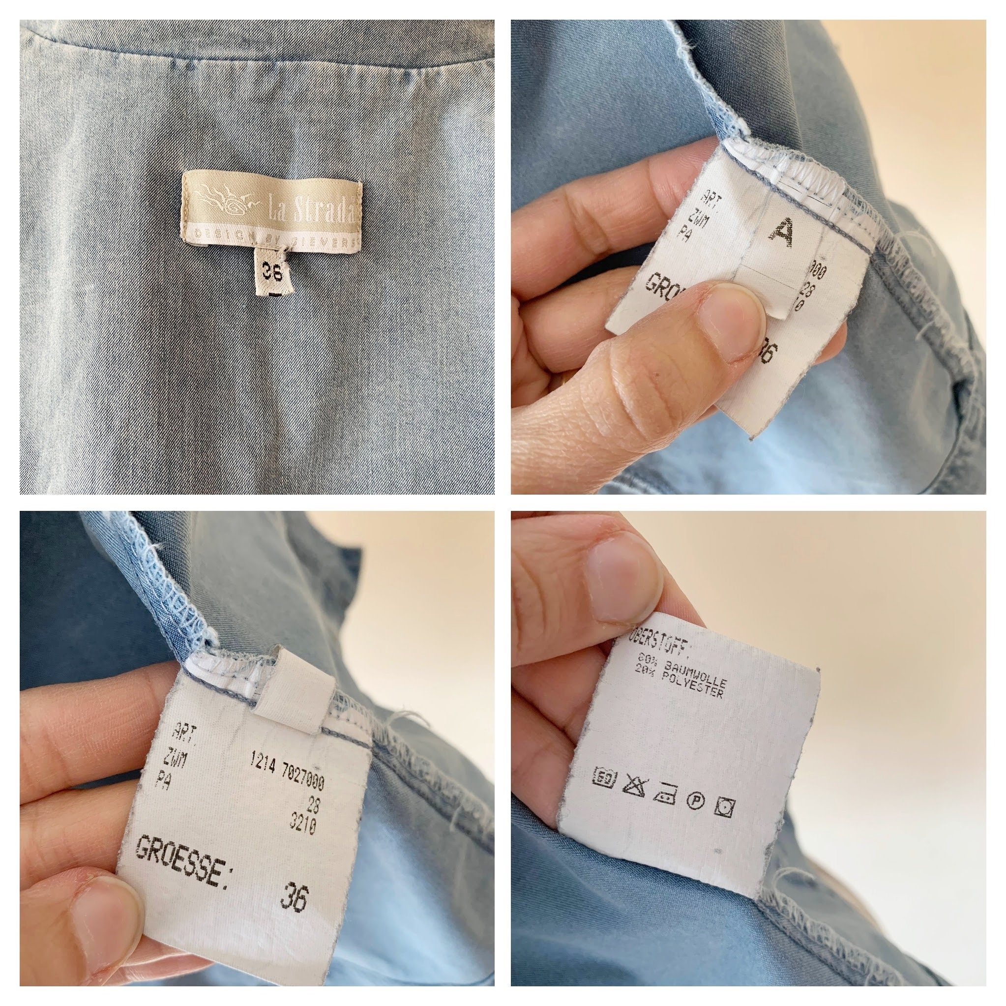 I carefully hand wash all of my vintage items, so they are ready to wear as soon as you receive them. Some of my vintage items have care instructions marked on the label. For the ones that do not have care instructions, I would recommend to wash them by hand or machine wash them using a gently cycle and warm water and wash them with similar colors.