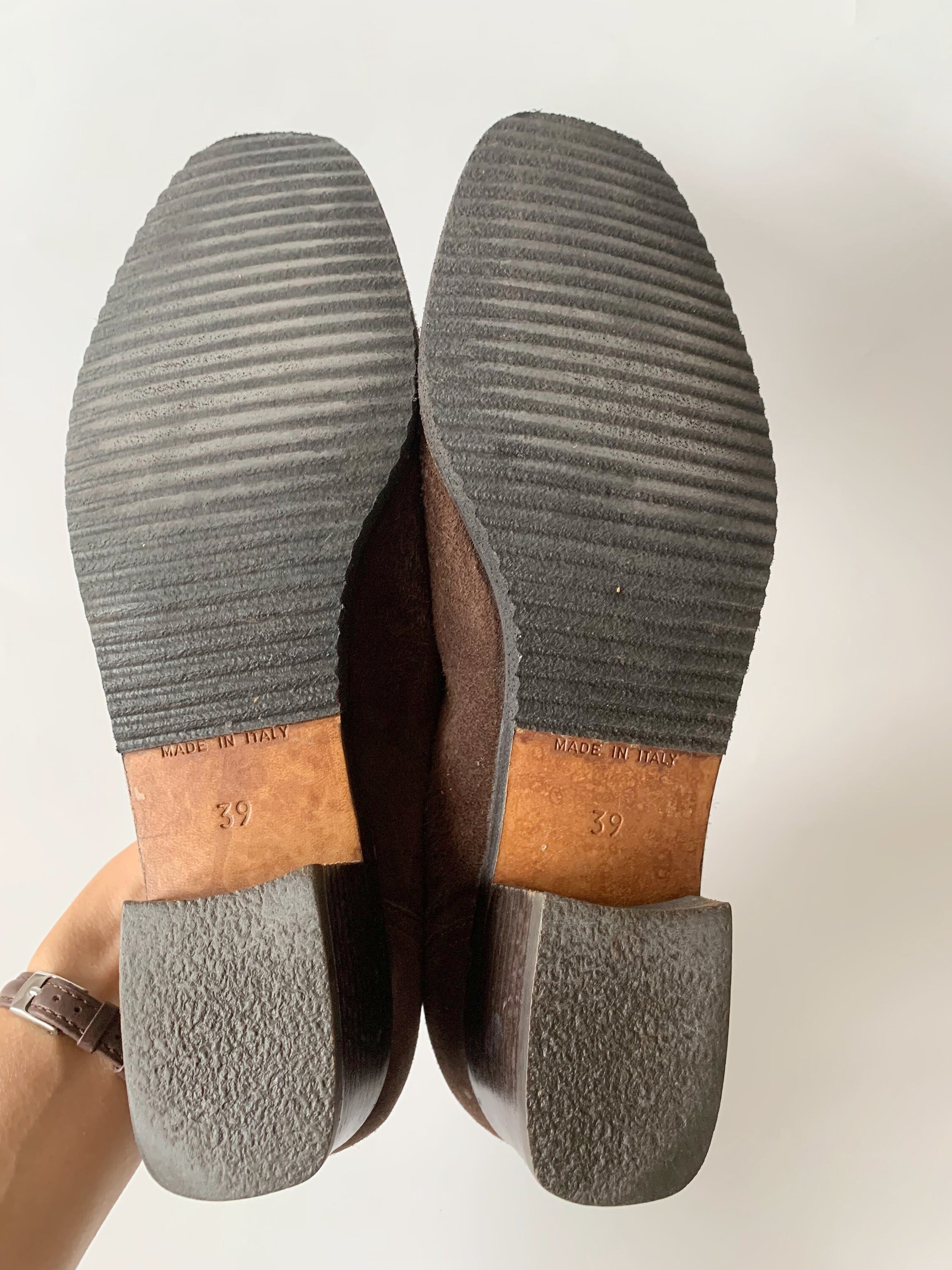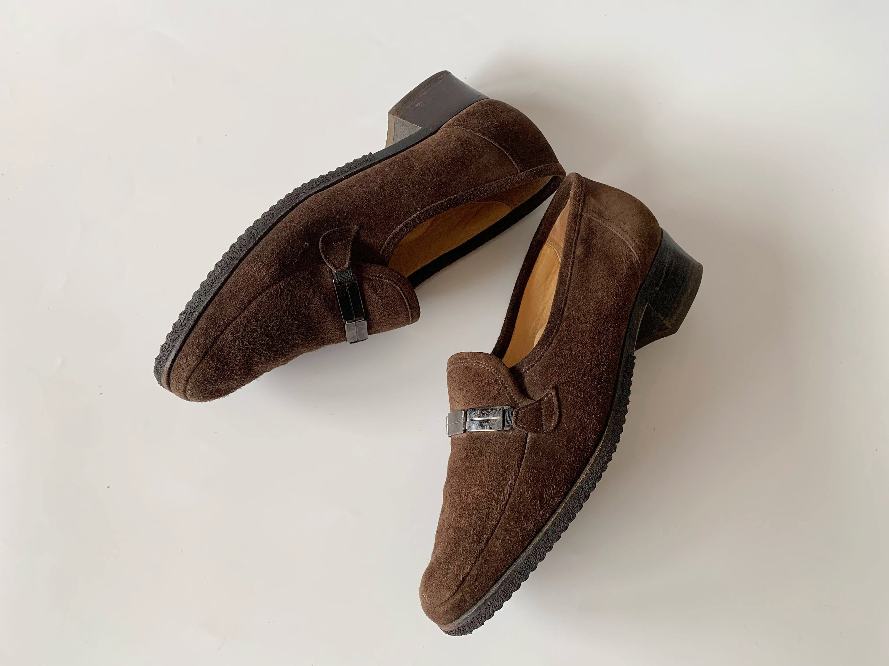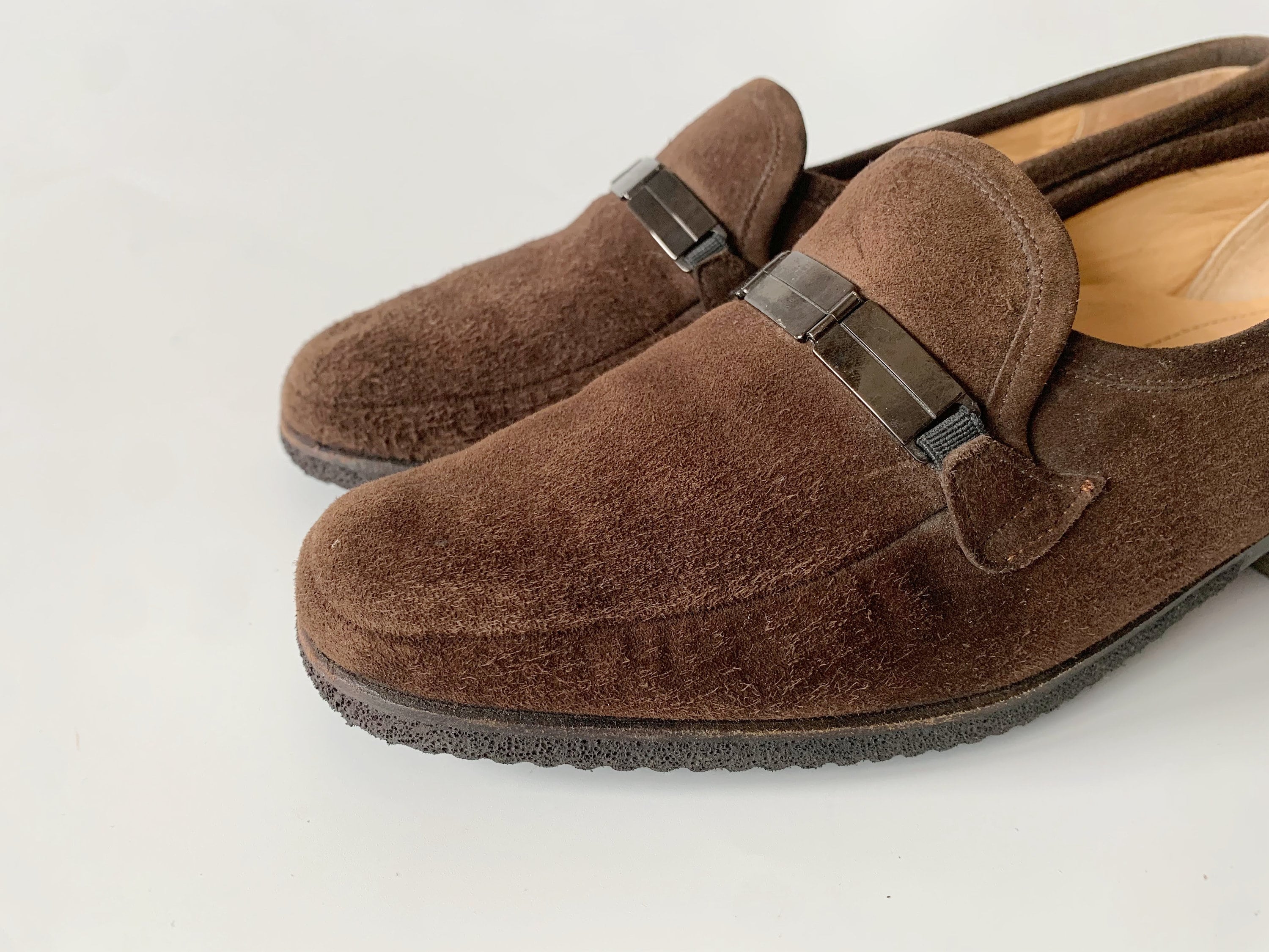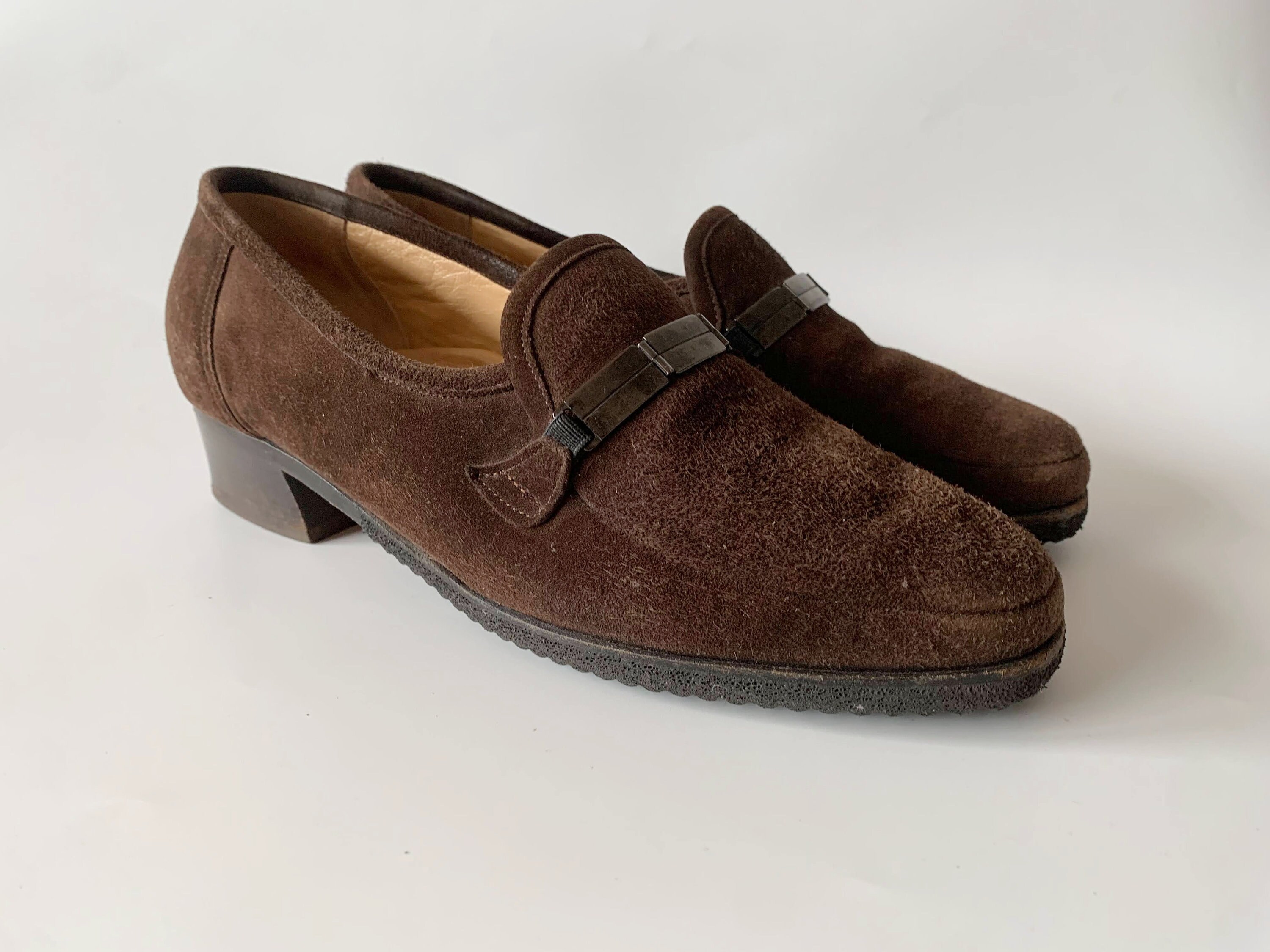 Condition: These brown suede leather loafers were pre loved and show some signs of wear. There are some marks and scratches on the suede leather surface typical for vintage suede leather items which I have tried to capture in the close up photos.