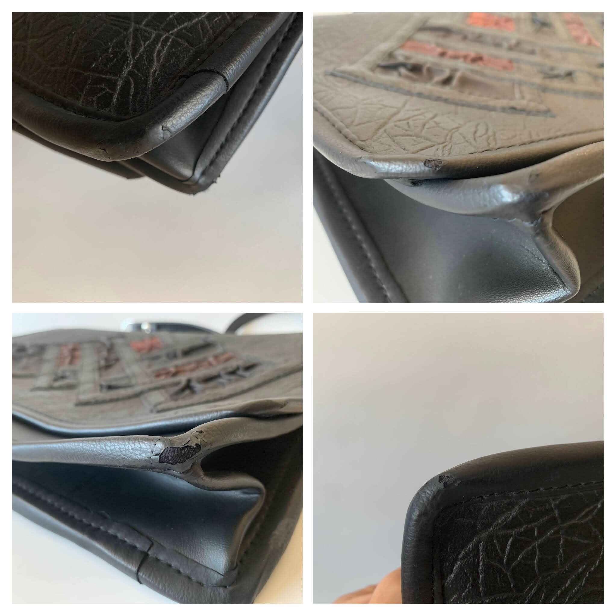 Condition: This black shoulder purse is beautifully preserved, however as it was pre-loved it shows some signs of wear around the edges, where the vegan leather has peeled off. I have captured the edges of this purse in the close up photo.