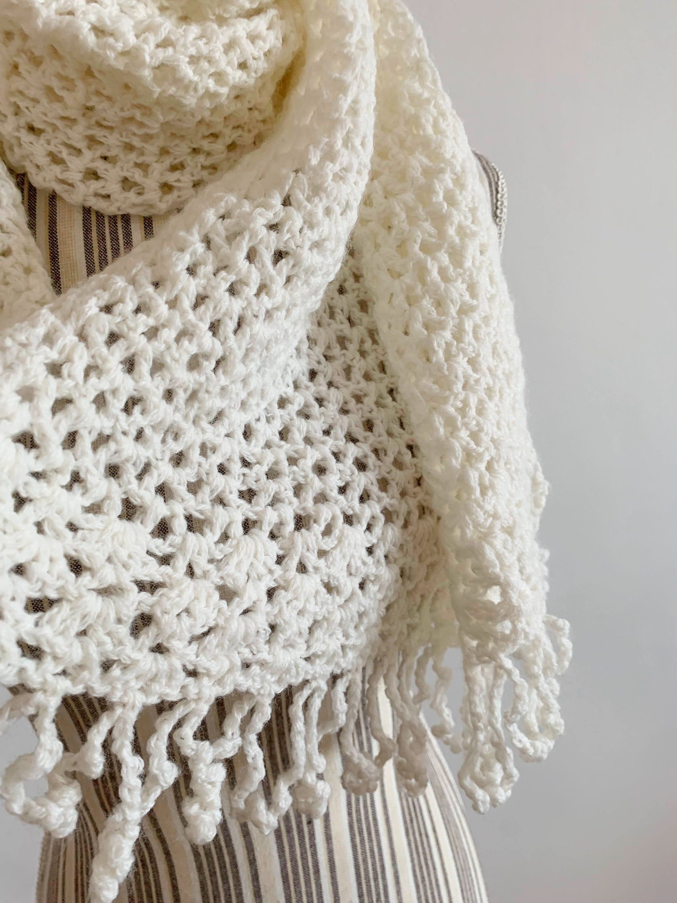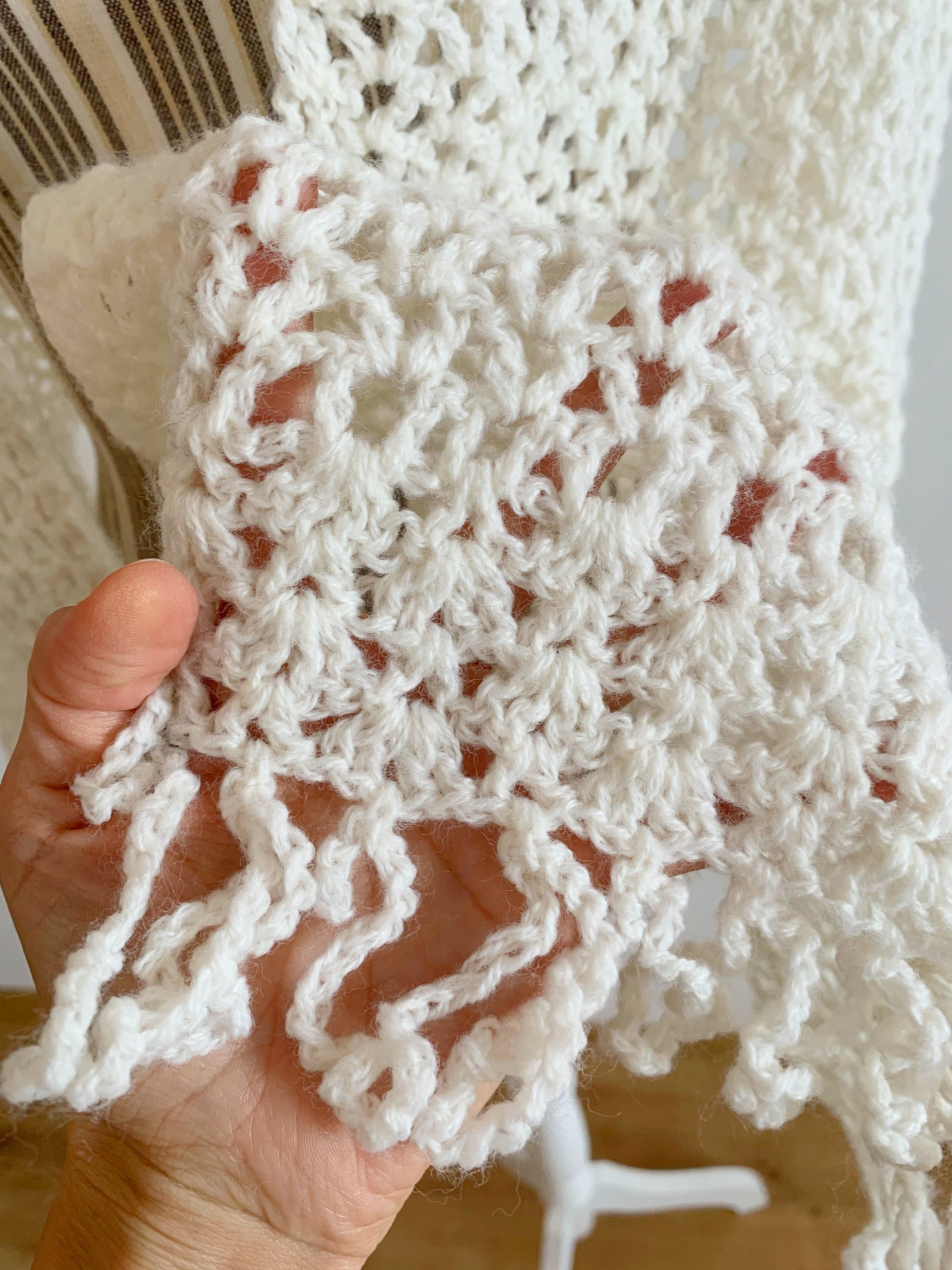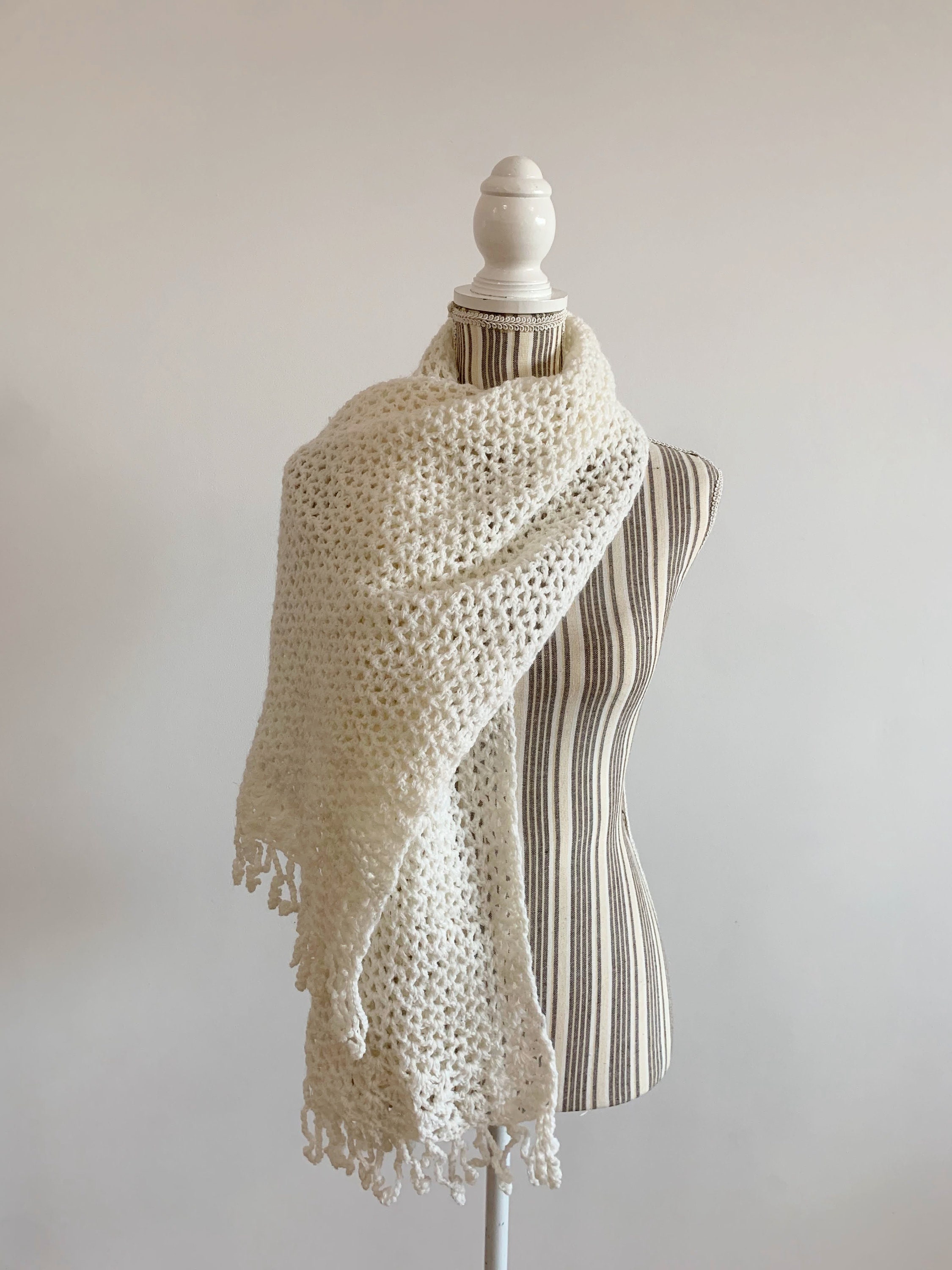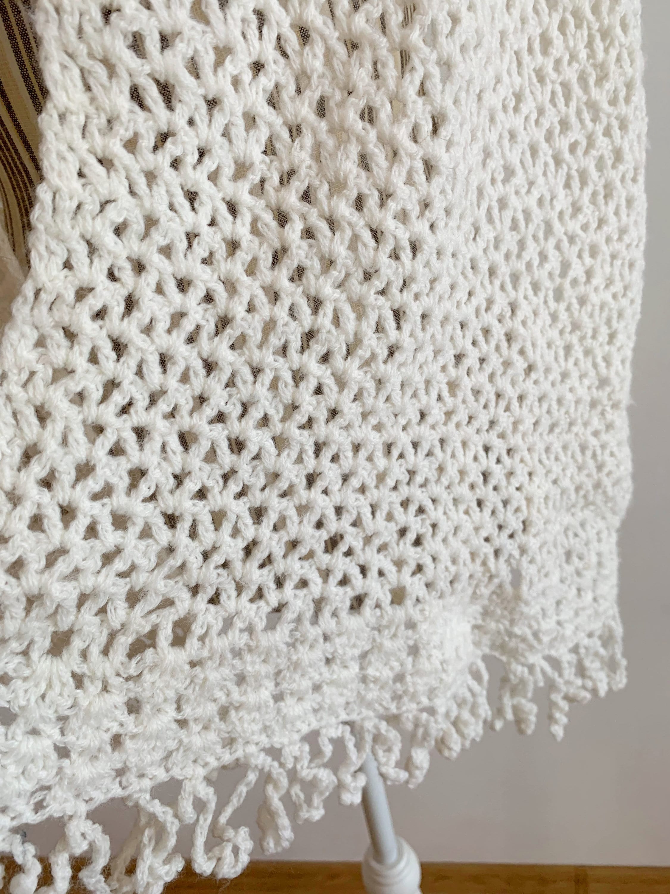 Beautiful vintage long chunky scarf with tassels in white color. This warm winter scarf is hand crochet. This handmade long winter scarf is made of soft acrylic wool yarn. It will keep you warm and cozy during the cold days. This bohemian oversized scarf will keep you warm and help you layer your outfit. Perfect gift for your sister or best friend.