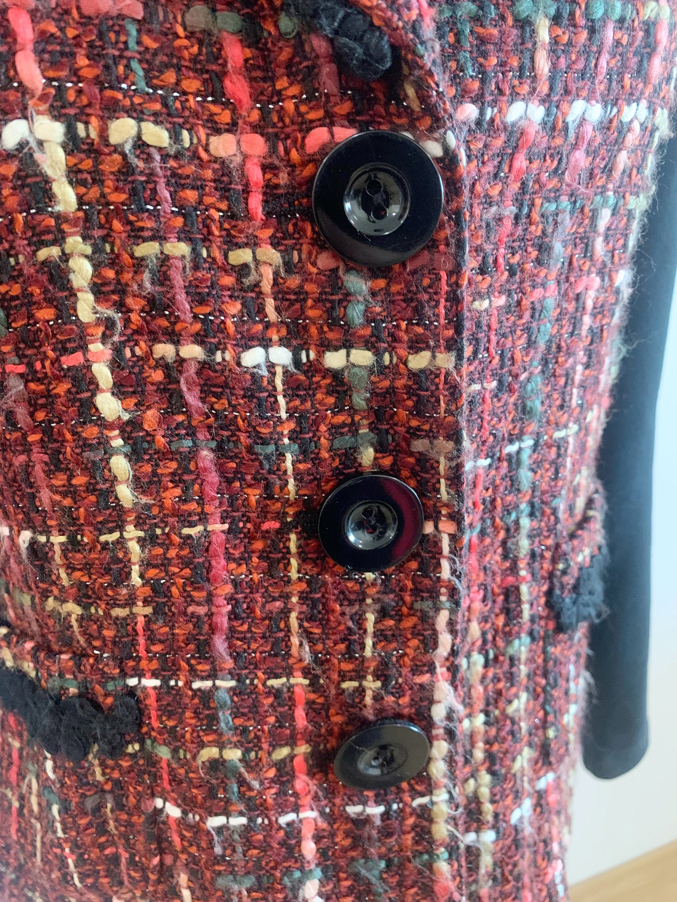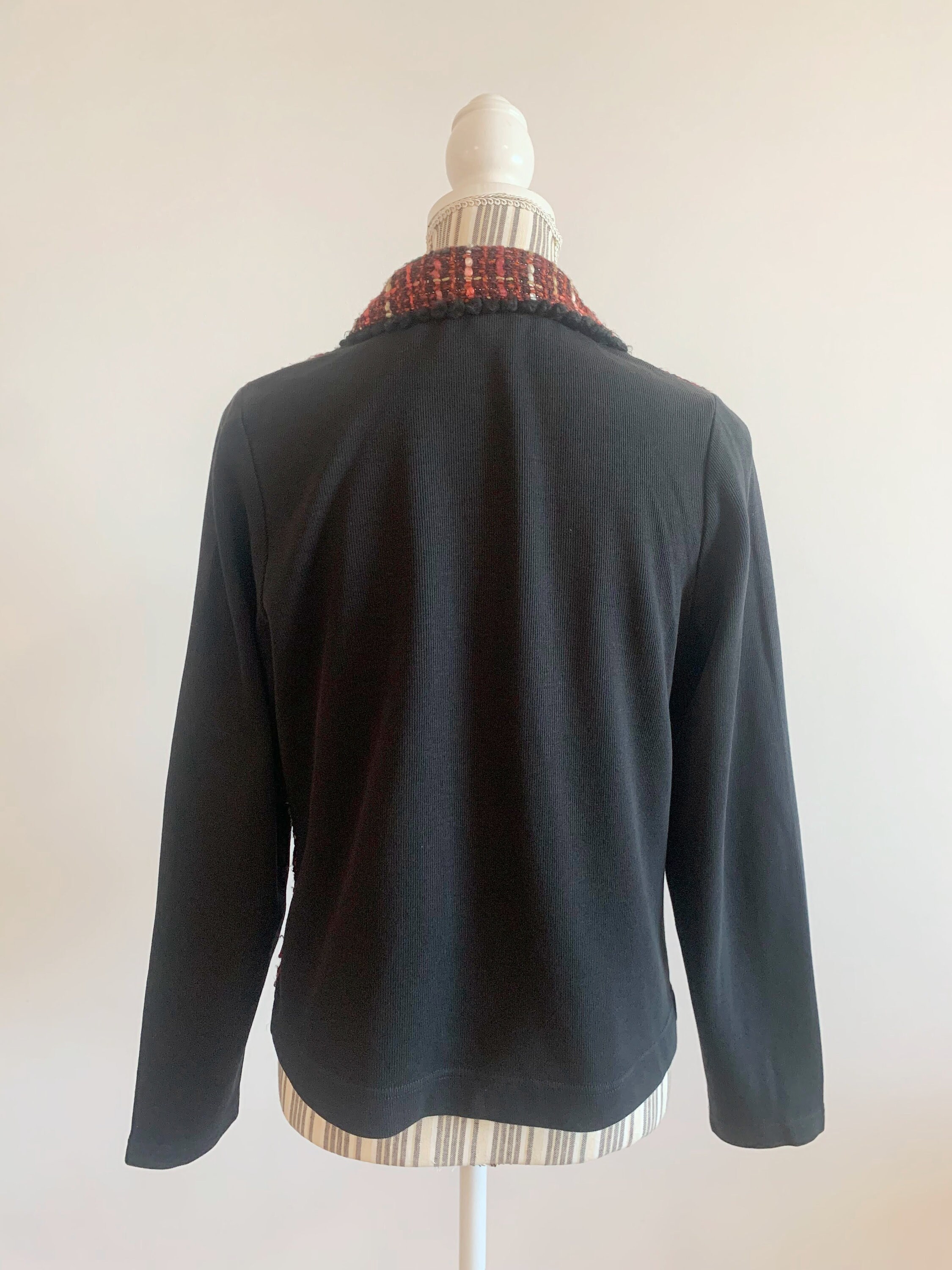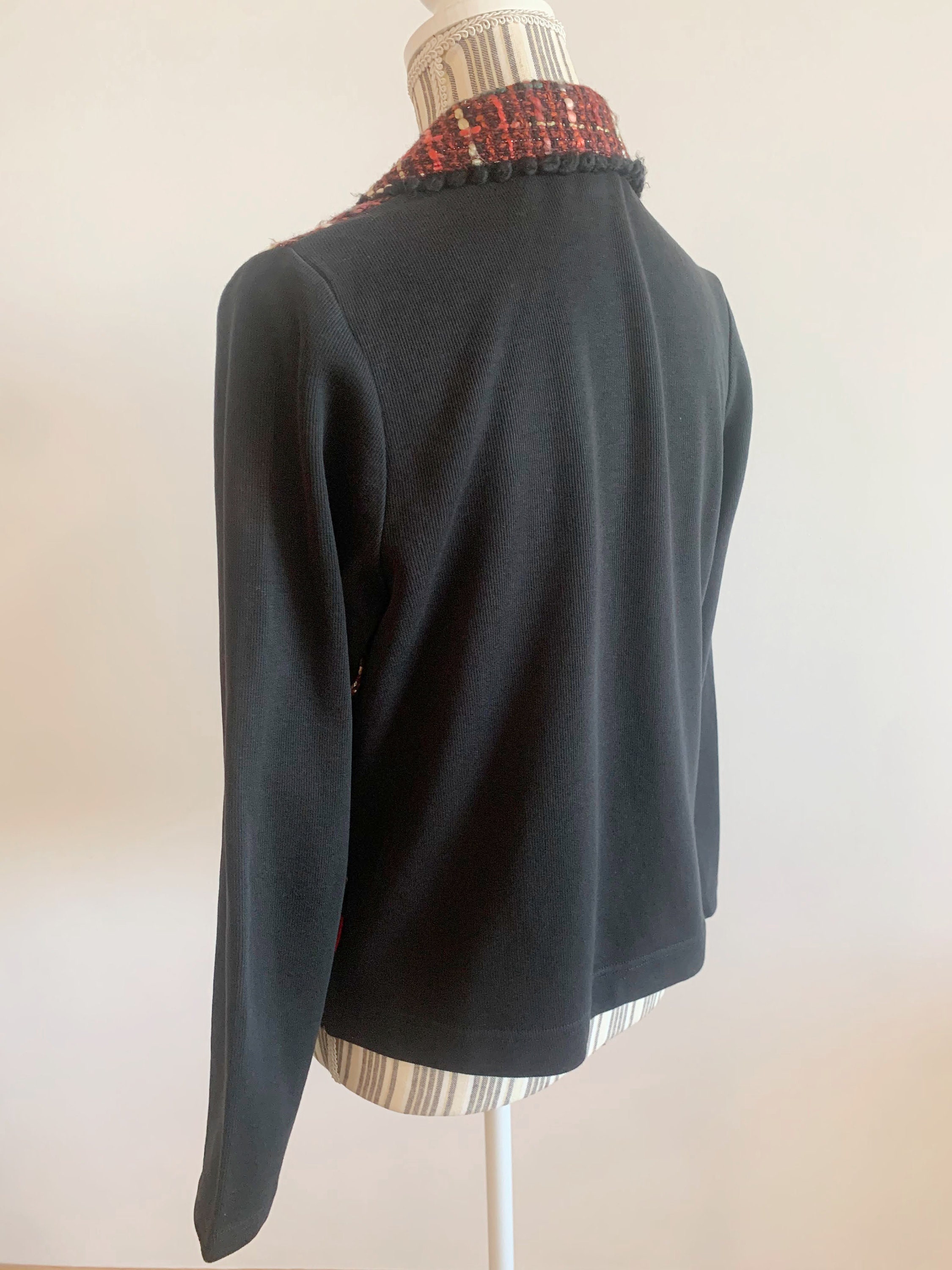 This is s beautiful vintage 90s relaxed fit plaid tweed blazer jacket for women size M. This boucle tweed blazer is made of two types of fabric - fluffy boucle tweed fabric at the front and black stretchy jersey fabric at the back and the sleeves. This cropped blazer jacket fits like size M