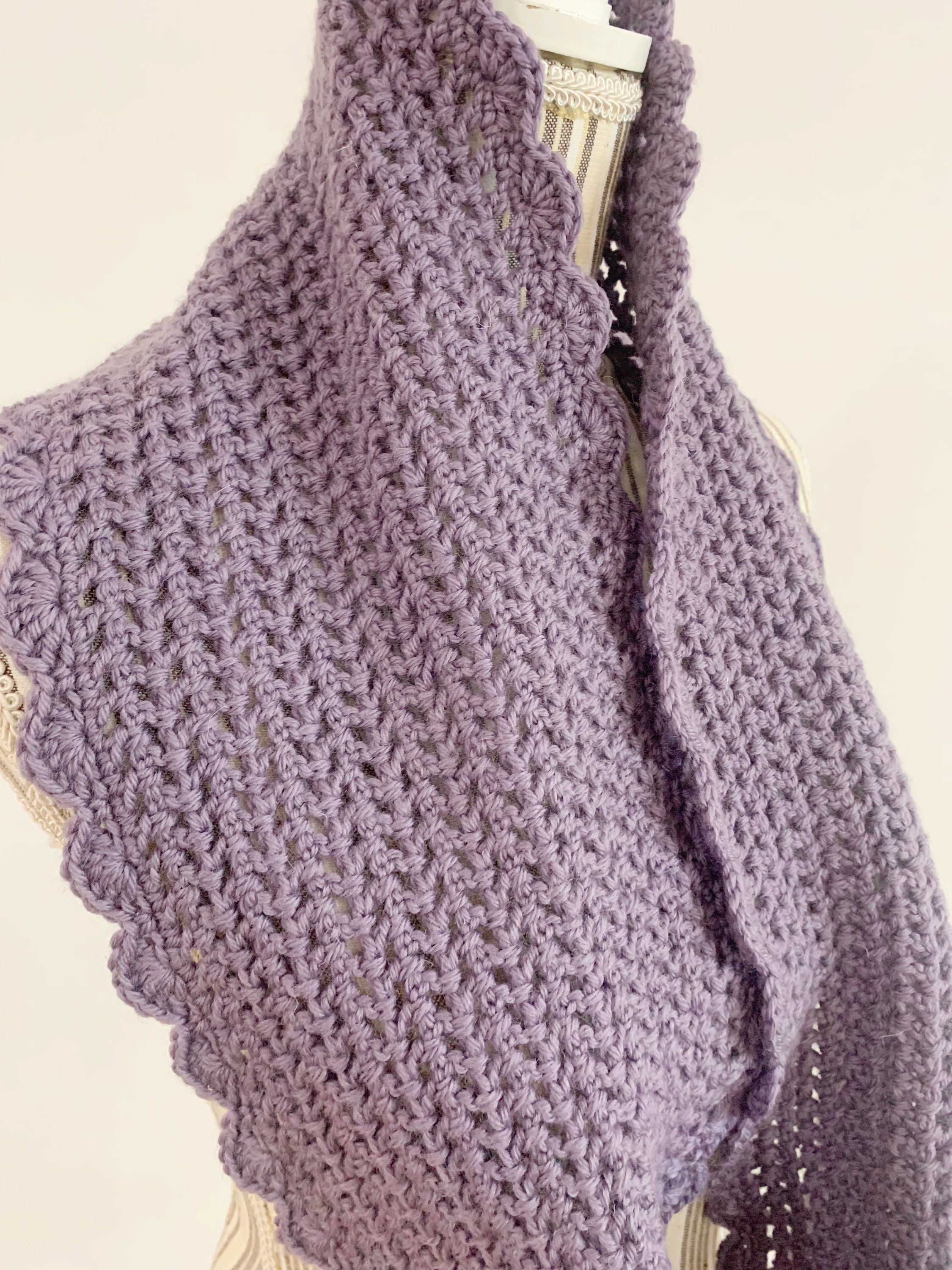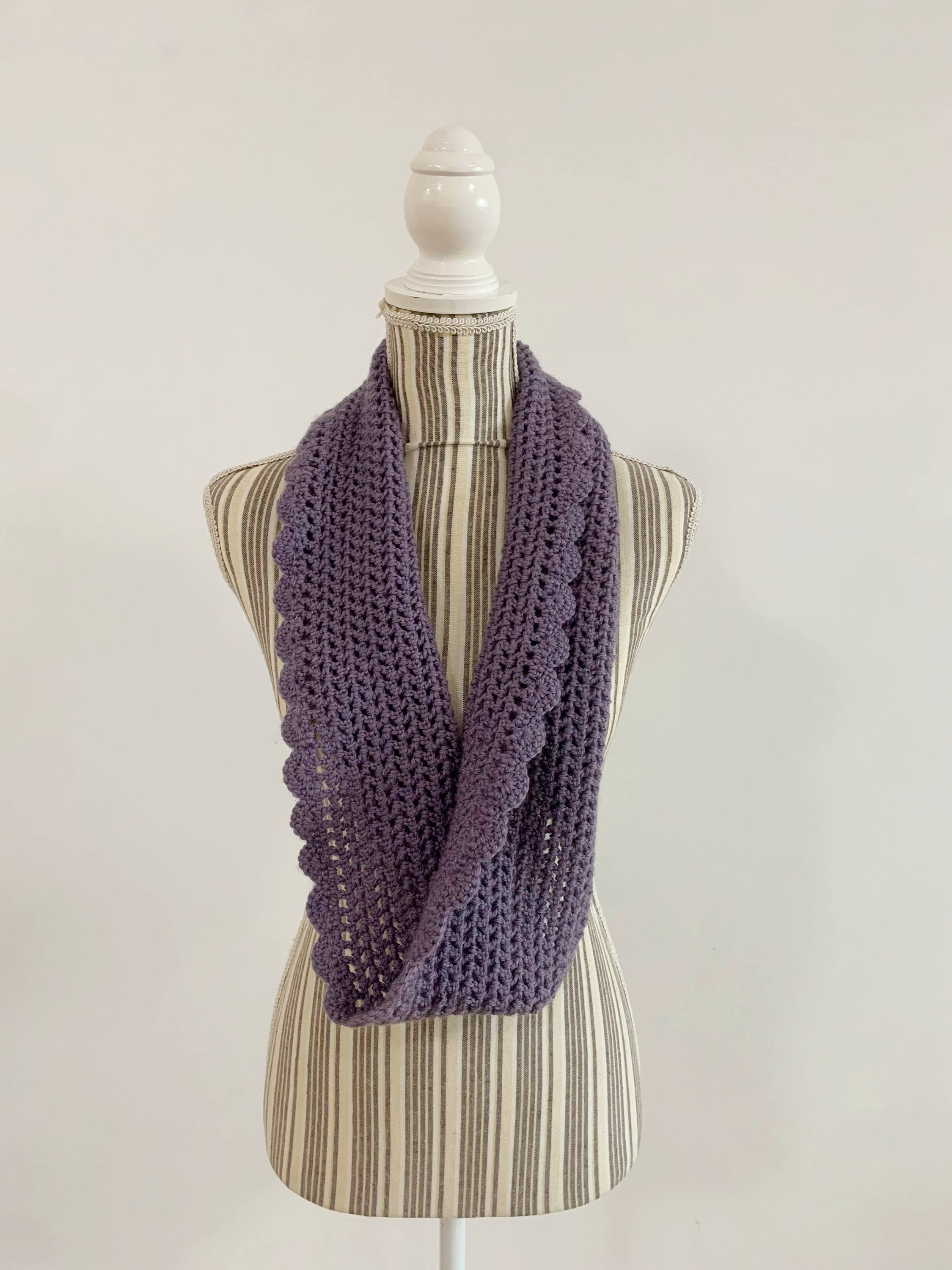 Beautiful vintage hand crochet infinity scarf in purple color. This warm winter scarf is hand crochet using acrylic wool yarn with scalloped edges. This big winter scarf is perfect for the cold season. It will keep you warm and cozy during the cold days. This knitted loop scarf will keep you warm and help you layer your outfit. Perfect gift for your girlfriend, wife or best friend. Amazing versatile accessory that you can enjoy and wear in a number of different ways.
