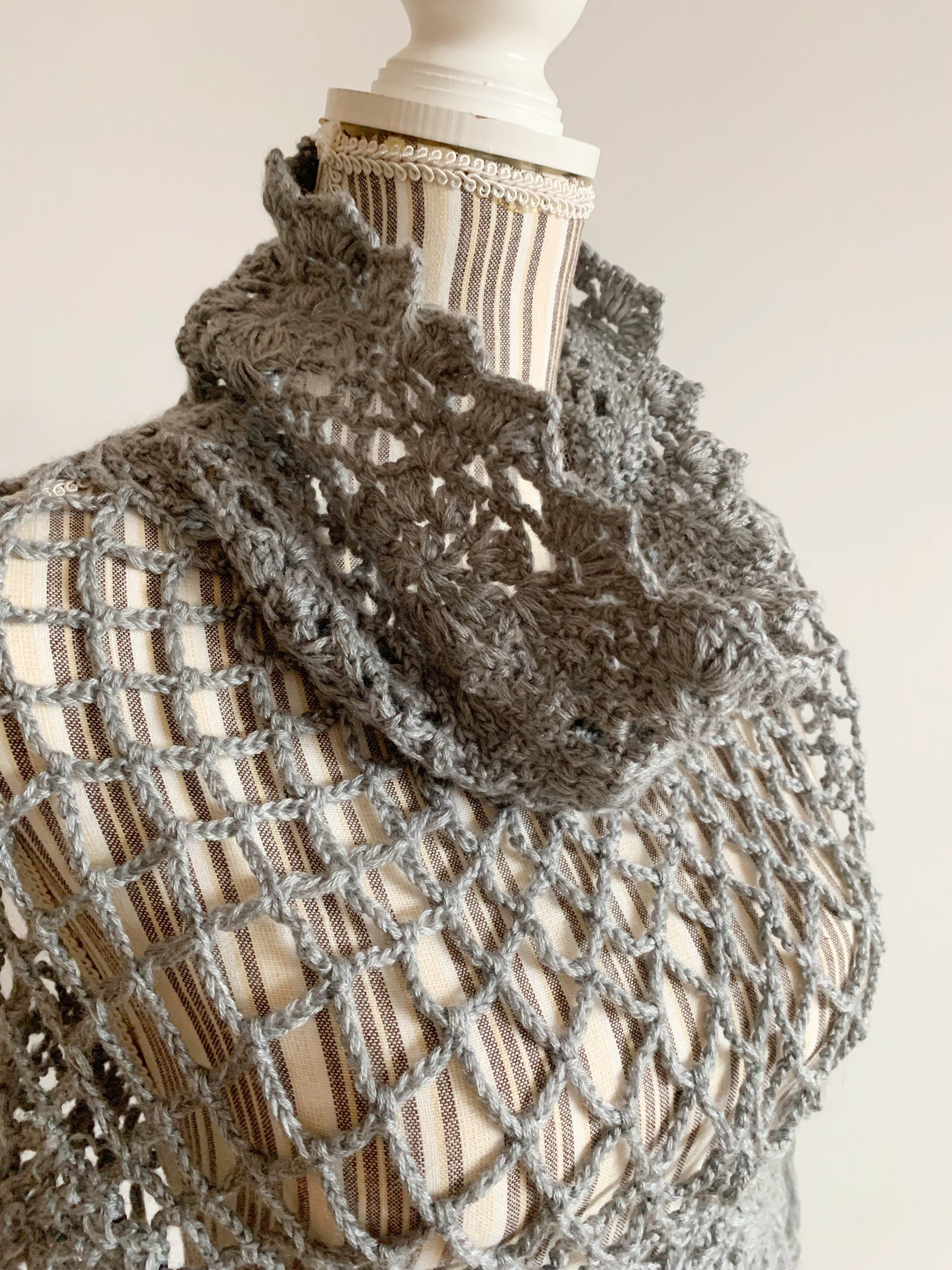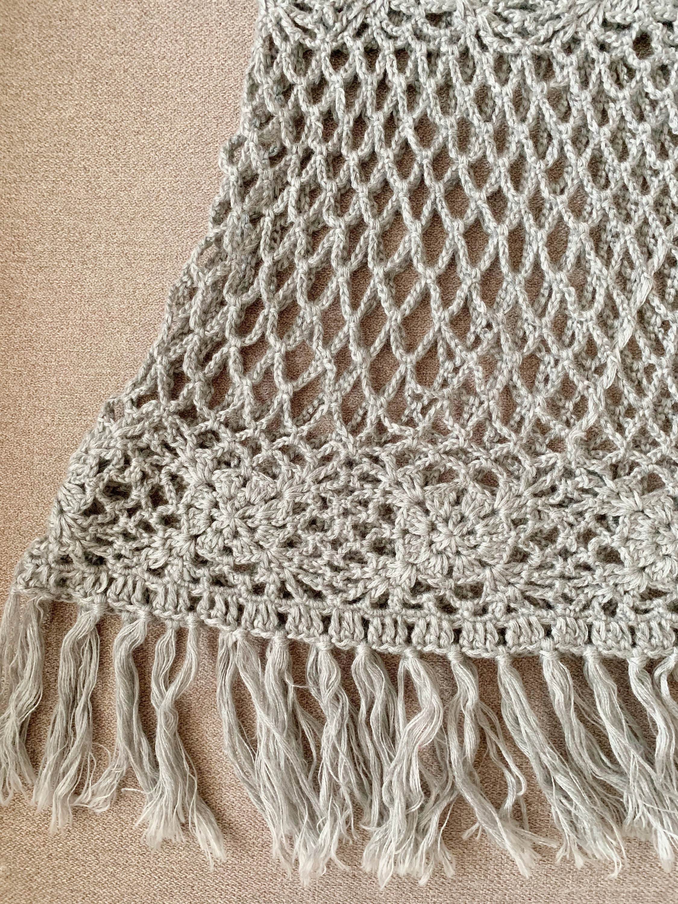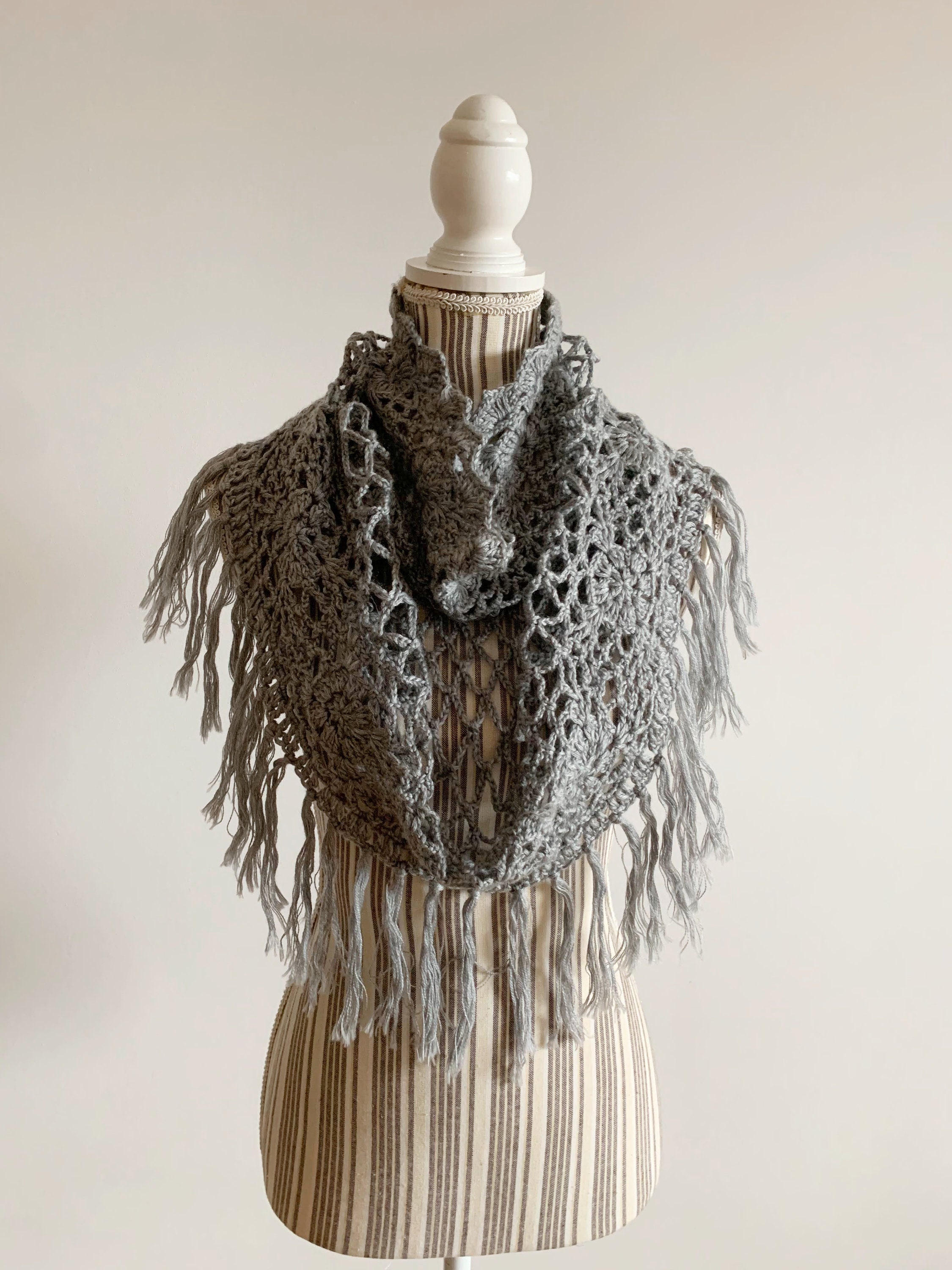 This is a beautiful vintage crochet neck collar in neutral grey color with lace detailing and fringe at the bottom. This adorable fluffy floral lace crochet turtleneck scarf is made of soft warm yarn which feels like acrylic wool blend. This pullover turtleneck scarf is perfect for the fall or winter season. It will keep you warm and stylish. This crochet cowl will add a pop of boho chic look to your outfits.