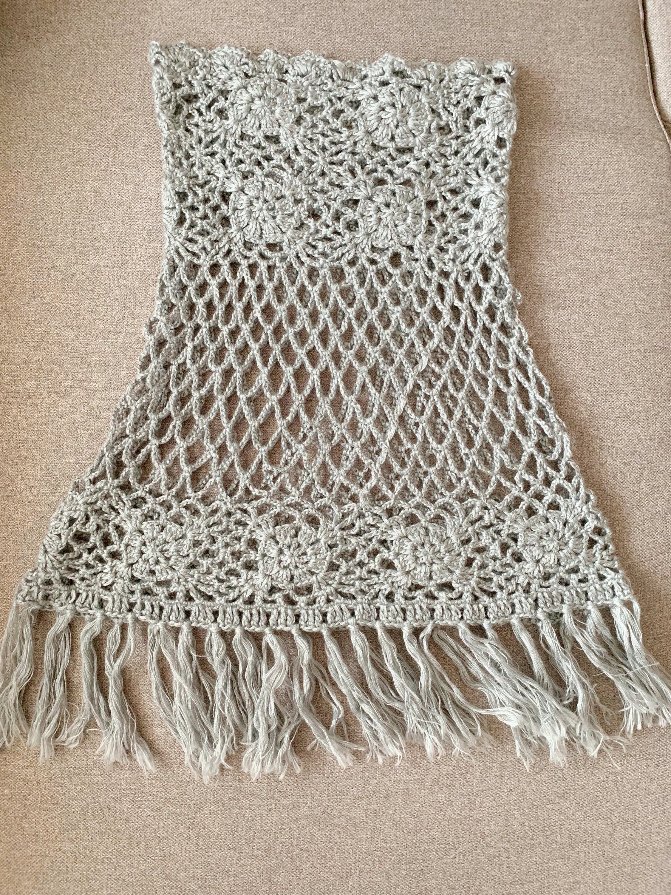 Condition: This crochet neck collar was pre-loved and the fringes have become more ruffled with the wear.