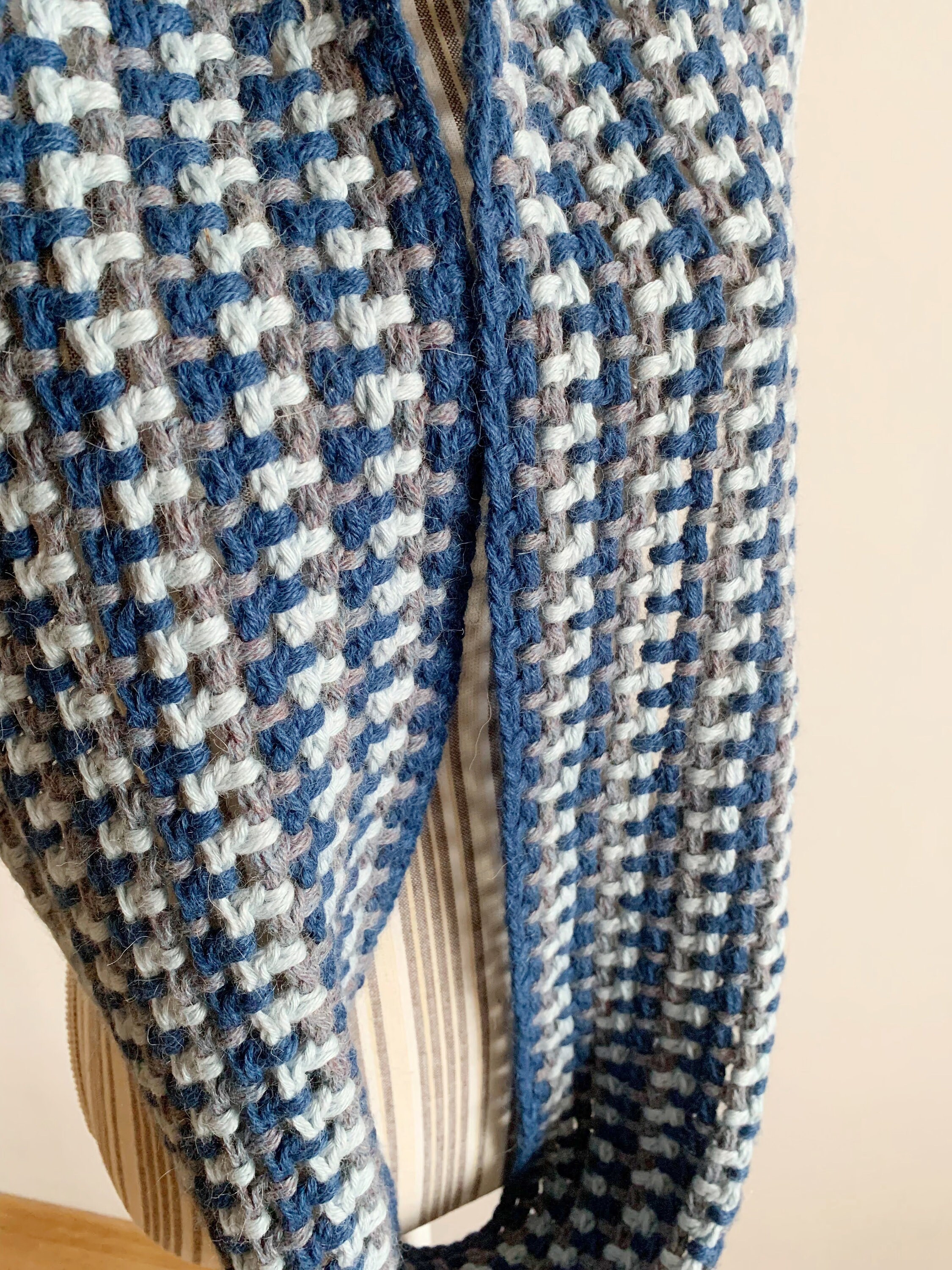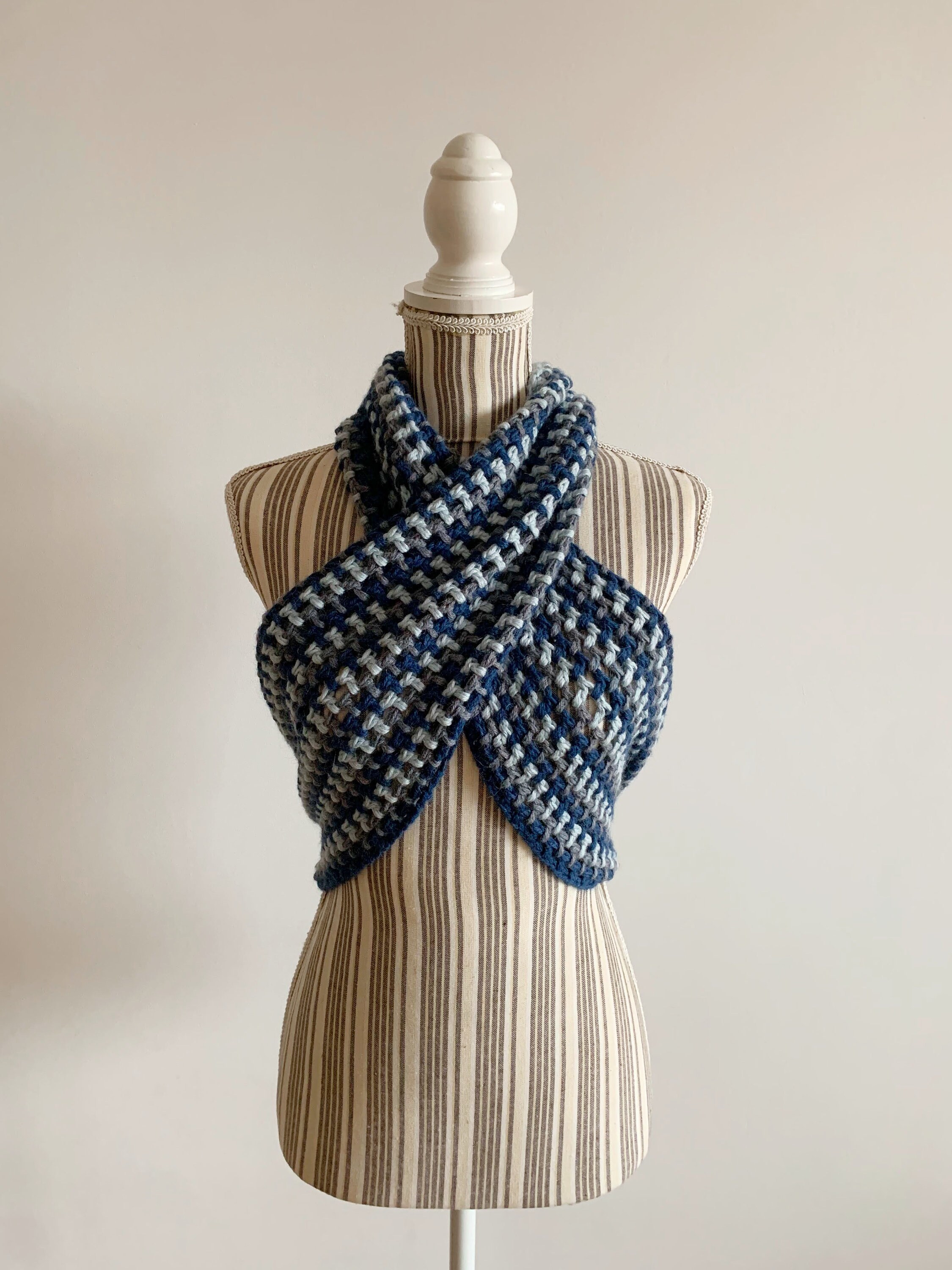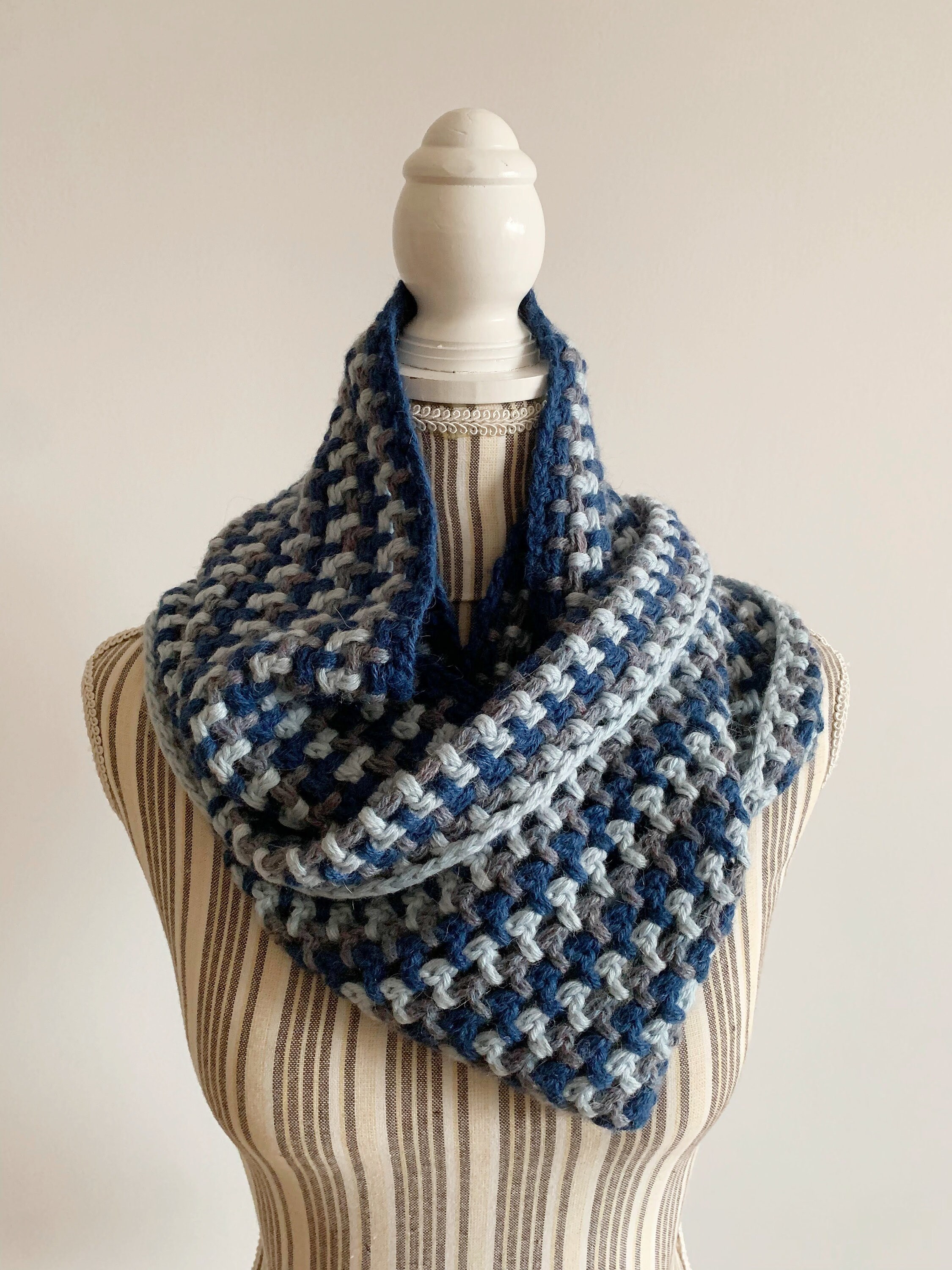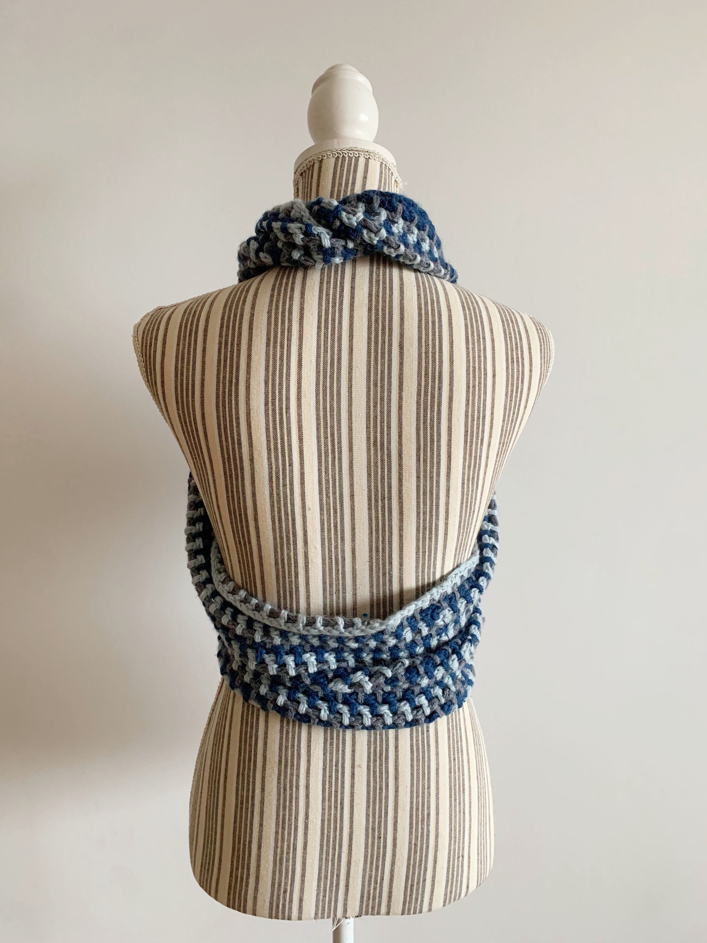 Beautiful vintage long chunky infinity scarf in shades of blue - light blue dark blue and grey. This warm winter scarf is hand crochet using bulky acrylic wool yarn. This chunky winter scarf is perfect for both men and women. It will keep you warm and cozy during the cold days. This large loop scarf will keep you warm and help you layer your outfit. Perfect gift for your husband, wife or best friend. Amazing versatile accessory that you can enjoy and wear in a number of different ways.
