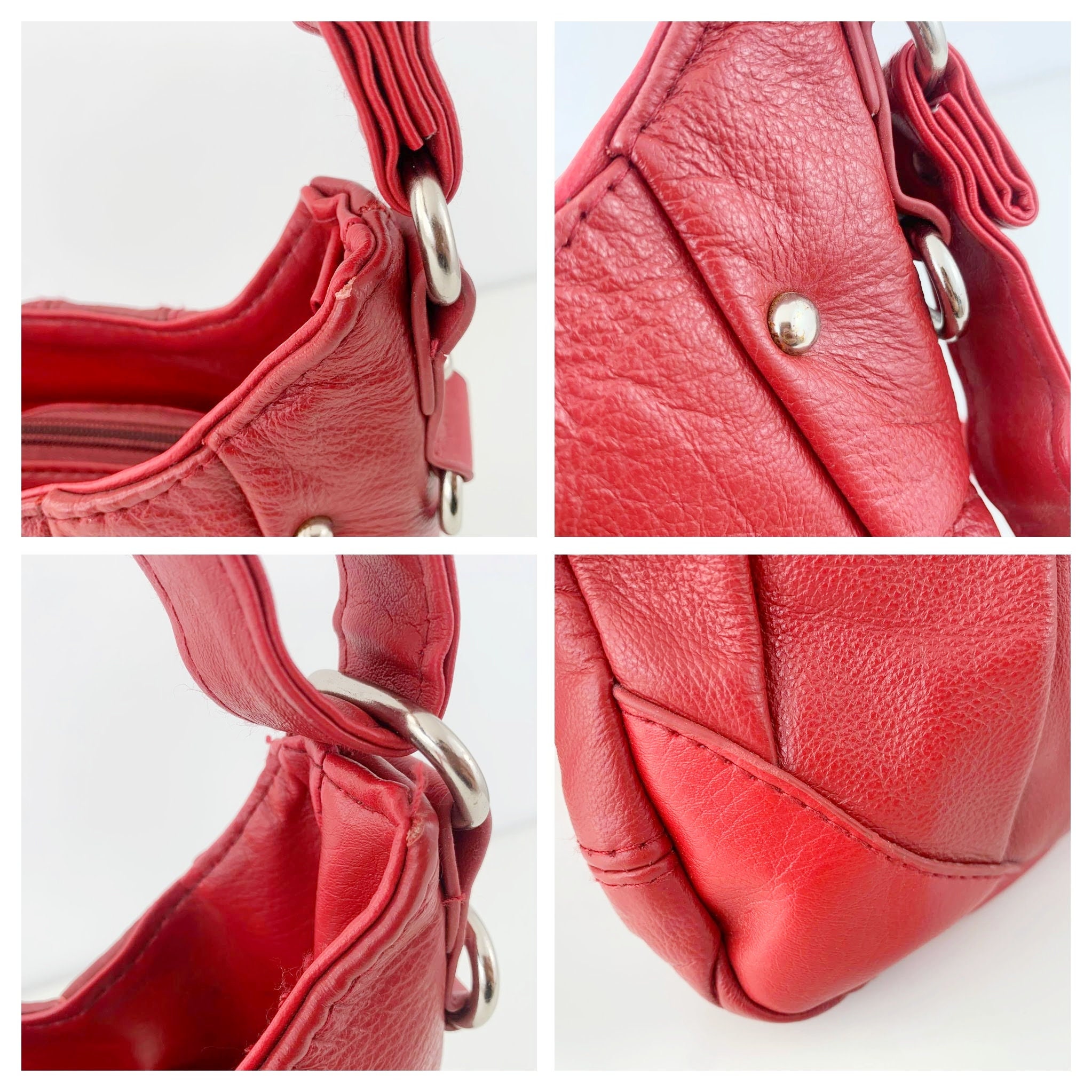 Condition: This red crossbody purse shows some minor signs of wear mainly around the edges which I have tried to capture in the close up photos.
