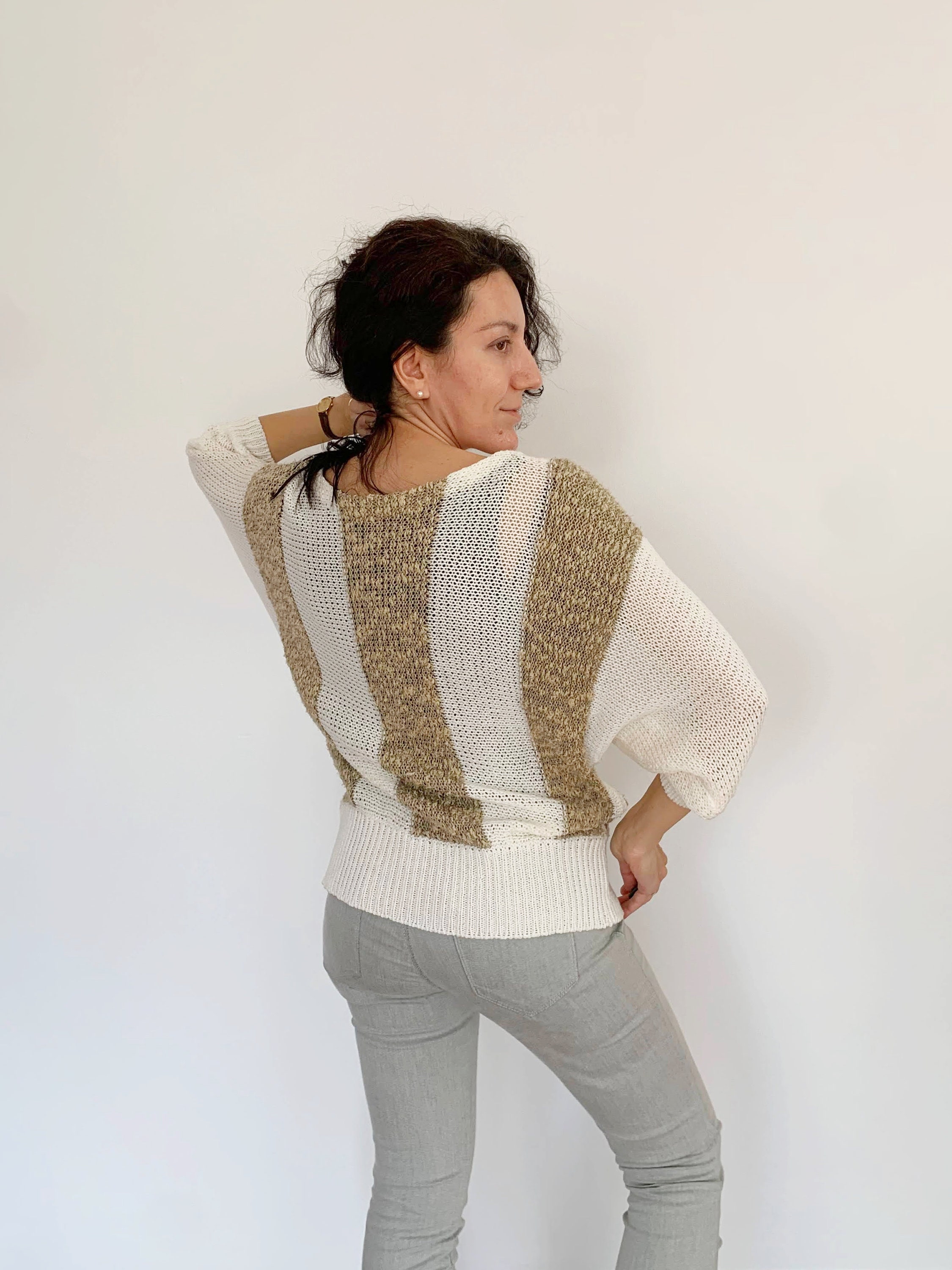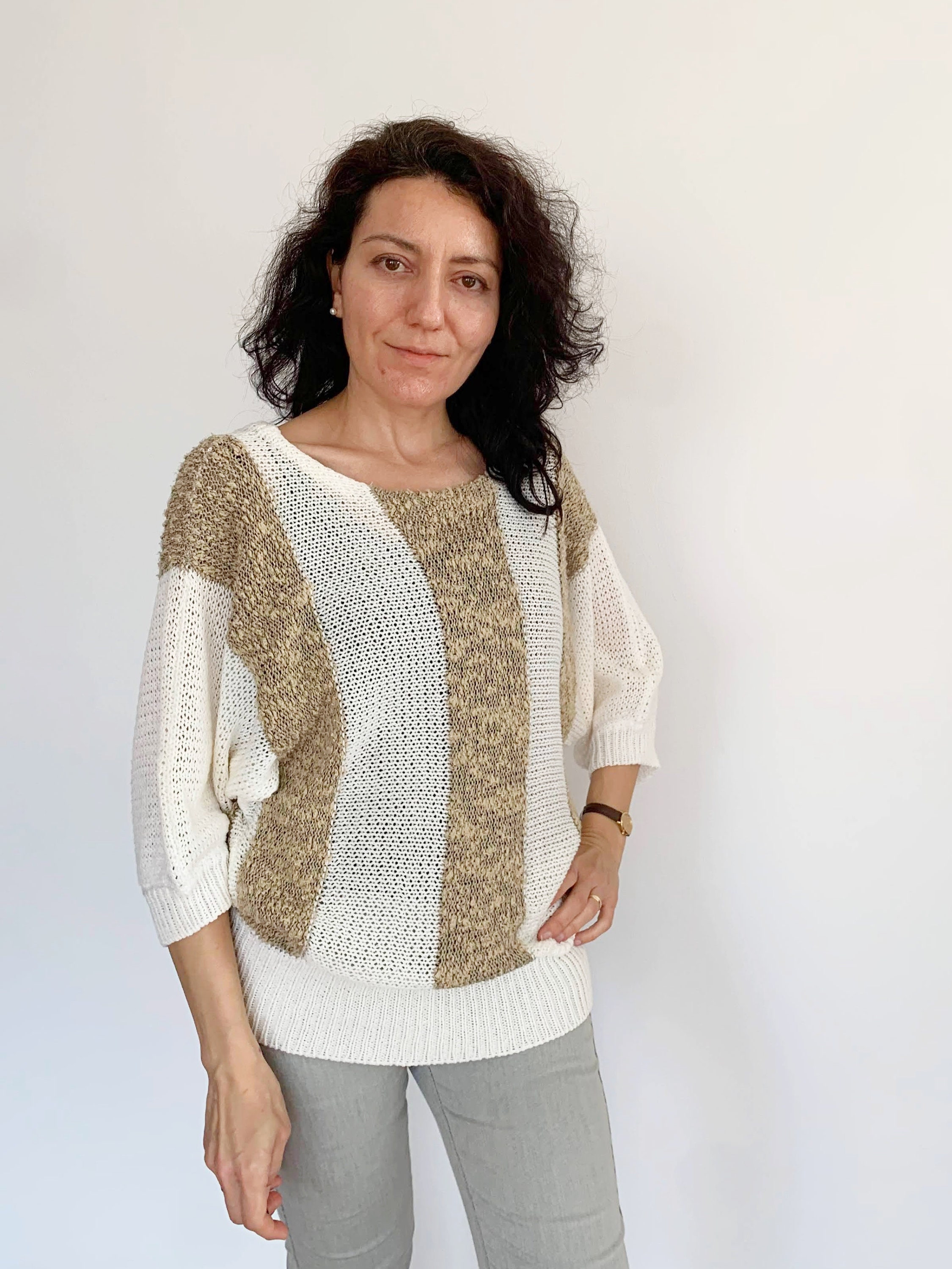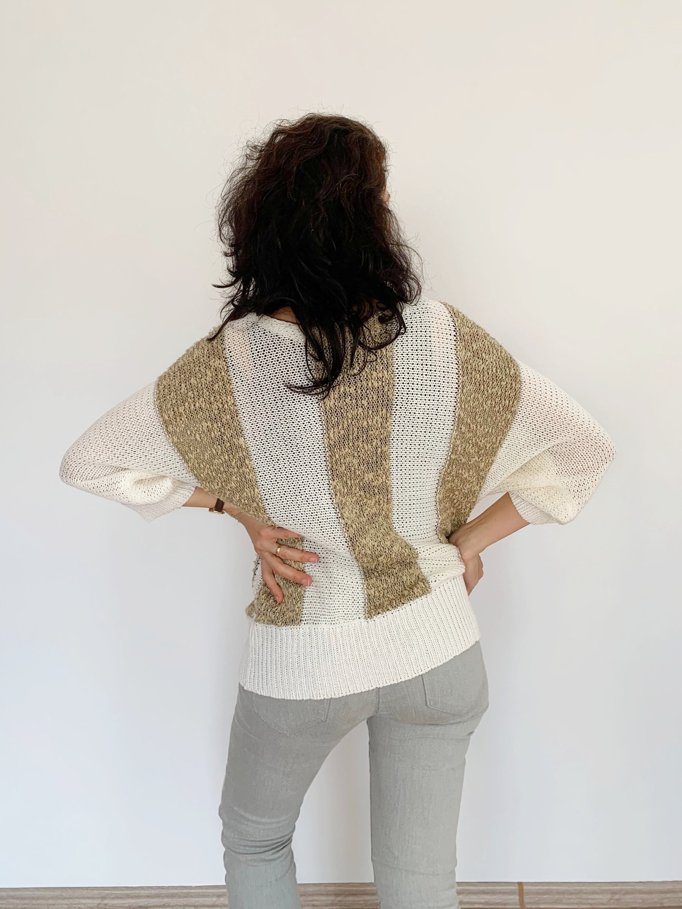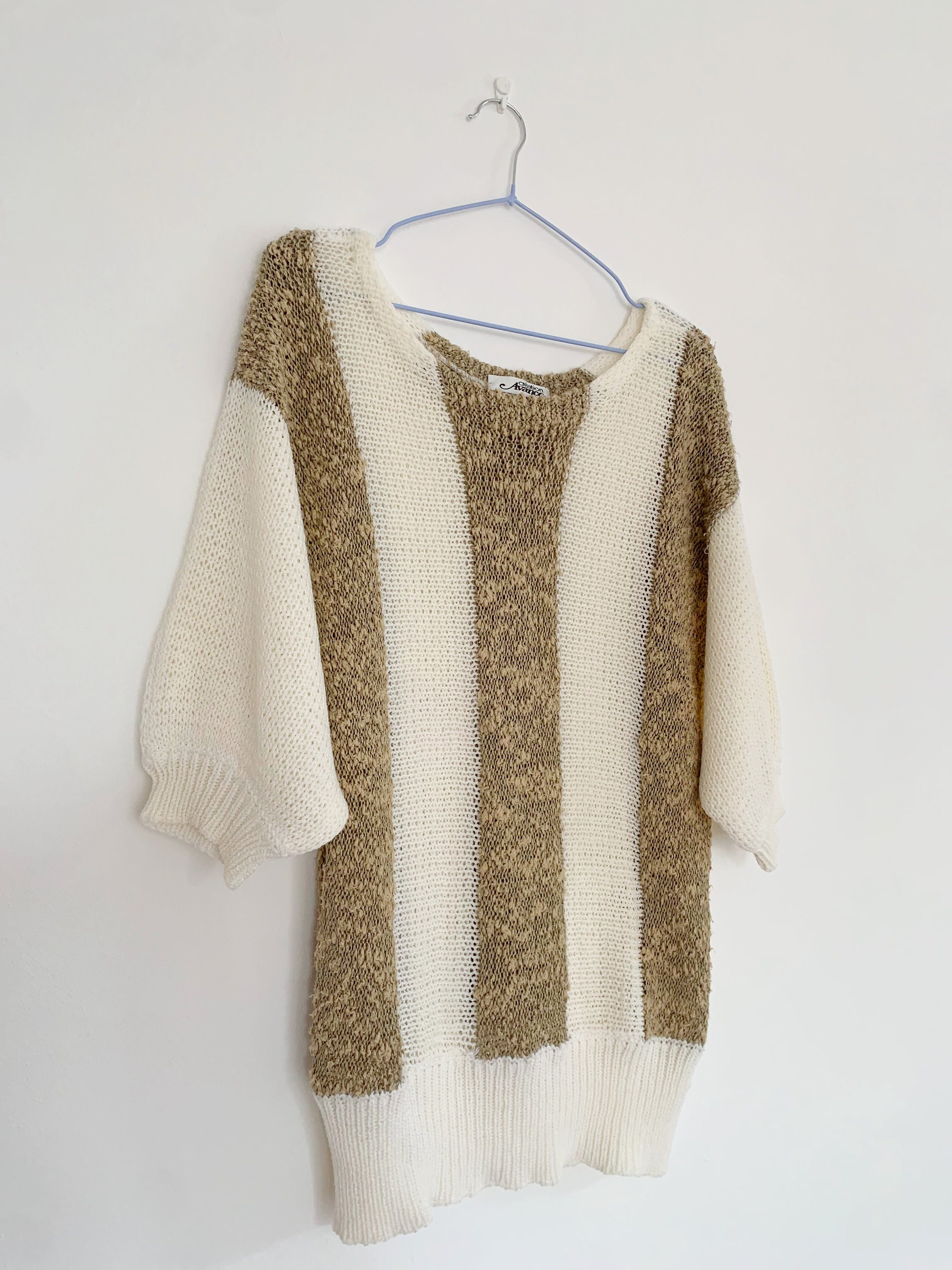 This is a beautiful vintage chunky knitted dolman sleeve knitted sweater for women in off white and cream beige color. This bulky oversized bat wing sleeve summer pullover is made of viscose thread. This nude knit jumper has half dolman sleeves and boat neck. This relaxed summer sweater has a loose fit silhouette. This boho knit jumper is size 44 and it fits like size S/M. Please check the measurements below.